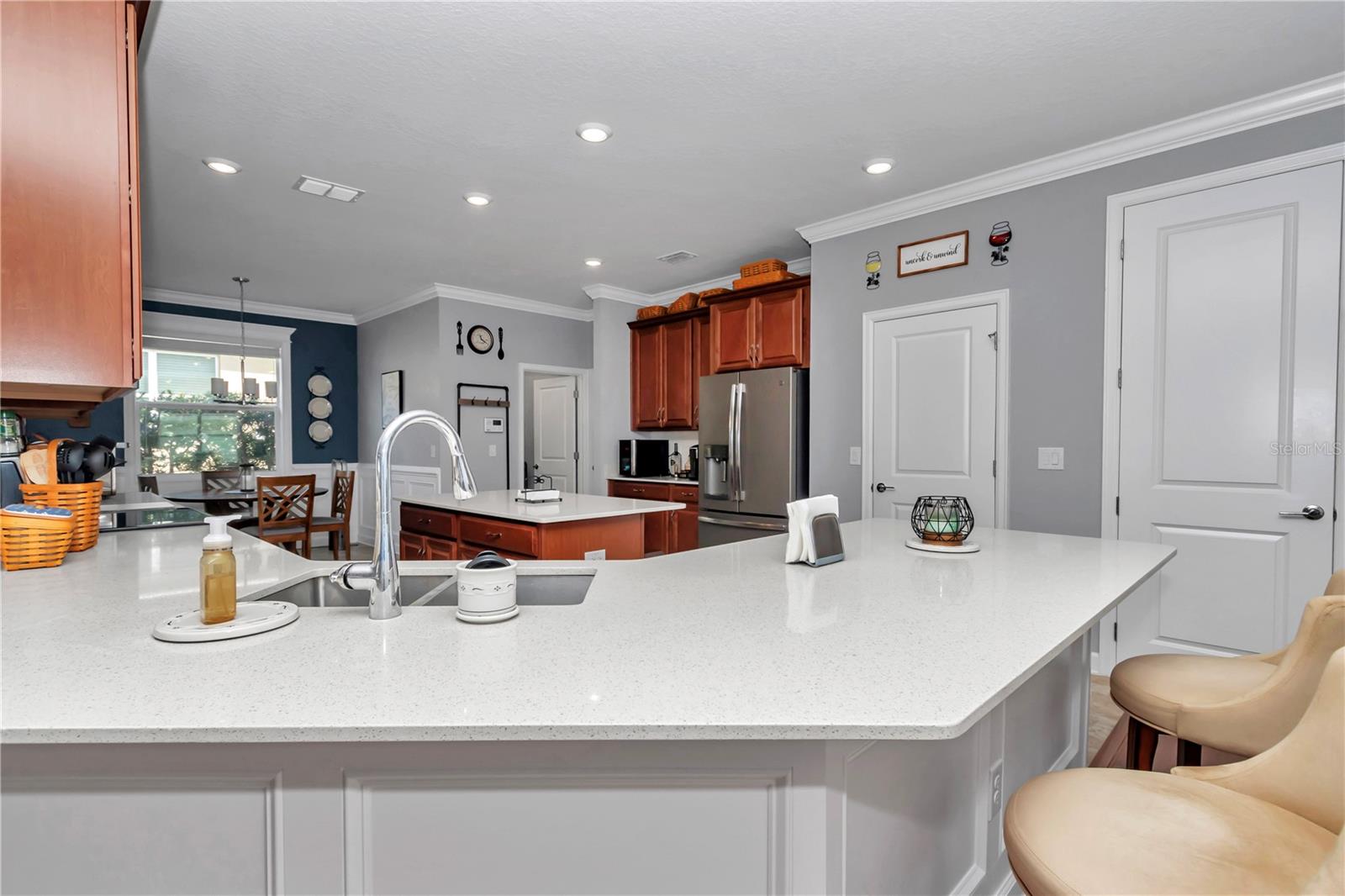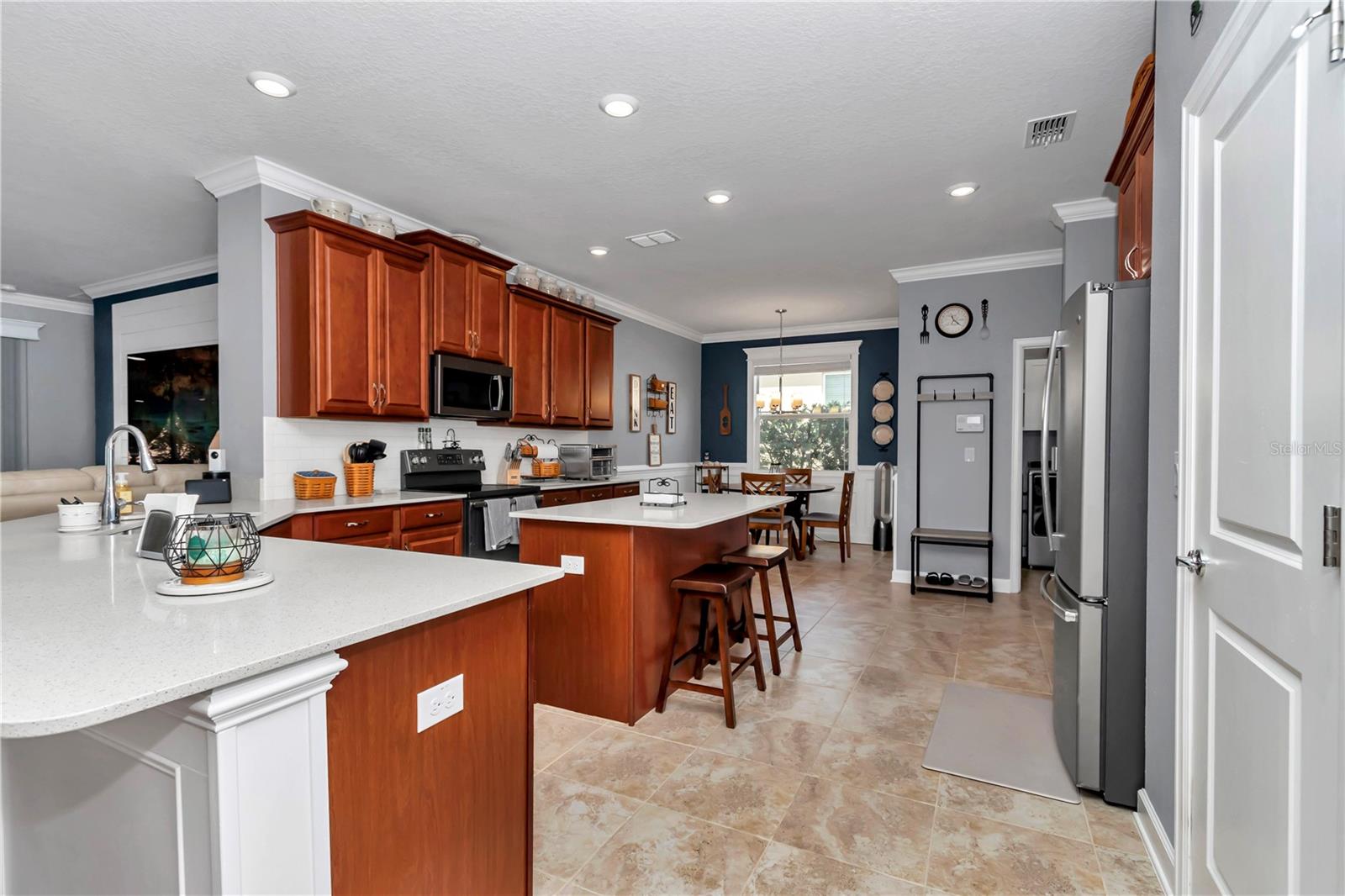 Verdadeiramente, único neste showstopper aqui em fechaduras e 55+ JB Ranch! Desde o momento em que você puxa para sua nova casa, é recebido com o melhor dos melhores! Desde a calçada personalizada e pintada de grandes dimensões, com a calçada correspondente da calçada, levando ao quintal ao paisagismo exuberante, incluindo camas de rocha curtidas para toda a moldura da coroa em casa. São os detalhes que tornam esse modelo Kennedy de Lennar tão especial! Apresentando garagem de três carros, piso plano aberto e 14 x 34 exibidos e oasis de Lanai. Ao entrar em casa, você é recebido com ladrilhos e engenharia pisos de madeira, lambris e uma cozinha enorme feita para entretenimento! À esquerda do hall de entrada, você tem o primeiro dos quartos com parede decorativa personalizada da caixa de sombra e seu próprio banheiro na suíte. Voltando à vida principal, há uma espaçosa sala de jantar com lambris. A cozinha espaçosa é a peça central desta casa, com duas ilhas, uma no centro da cozinha e uma península com vista para a sala de estar. Backsplash personalizado, aparelhos de metal e quartzo com muitos armários de 42 polegadas. Perfeitamente posicionado na cozinha é a área de café da manhã e lavanderia que leva à garagem de 3 carros com piso epóxi. Voltando para a cozinha para a sala de estar com pisos de madeira projetada e parede decorativa de madeira e ranhura perfeita para aqueles dias de jogo! À esquerda da sala ou o segundo e terceiro banheiros, compartilhando o segundo banho completo com vaidades duplas e chuveiro de combinação de banheira. Do outro lado da sala está o espaçoso quarto primário privado, com tetos de moldagem por coroa e organizador personalizado, entra no armário. O banheiro primário tem vaidades duplas, uma caminhada no chuveiro ambiente com vista para a banheira do jardim. Voltando a partir do primário para a esquerda, você é recebido com uma abertura do Slider Triple para o novo 2024 14 x 34, exibido em Lanai com concreto pintado personalizado para combinar com a entrada de automóveis e essa área é grande o suficiente para um segundo espaço ao ar livre vivo com refeições e uma ótima área para praticar sua colocação. Saia para a calçada personalizada correspondente, levando à frente da casa. Esta casa é completa com 12 painéis solares, um amaciador de água, chuva, calhas com bicos, armários personalizados e uma porta nova. As atualizações totais nesta casa excedem US $ 100.000. Baixo HOA de 215/mês em 3 bloqueio JB Ranch com comodidades de 2019, incluindo piscina, clube com sala de fitness, pickleball e cuidados/manutenção de gramado incluídos. Traga seu carrinho de golfe e faça deste o seu lar para sempre! Novo Publix do outro lado da rua, cafeteria e sorveteria.