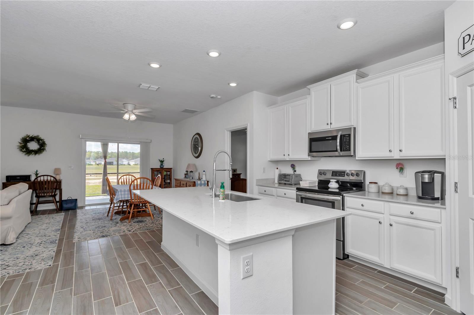 Esta linda casa exala estilo e conforto, perfeita para quem busca uma mistura de elegância e funcionalidade. Ao entrar, você é saudado por armários brancos de 42" com sancas, complementados por bancadas de quartzo e uma ilha, criando um espaço ideal para entreter os convidados. Faça uma transição perfeita através da parede rolante para a varanda coberta e com tela, oferecendo um retiro sereno. Esta casa térrea apresenta um design espaçoso e aberto que maximiza a área interna. A sala de reunião, a cozinha e o recanto fluem perfeitamente, levando a uma varanda coberta para vida interna e externa. O quarto de hóspedes está situado fora da rua. flua para cada hall de entrada, enquanto a suíte do proprietário está localizada na parte de trás para privacidade. O estudo oferece um local flexível para um escritório ou sala de artesanato/hobby. Convenientemente localizado perto de restaurantes e lojas, e a apenas quinze minutos do prestigiado World Equestrian Center e do Shalom Park. um ambiente comunitário vibrante SEU PRÓXIMO CAPÍTULO COMEÇA AQUI O 3º QUARTO É MOSTRADO COMO A OPÇÃO DE COZINHA SEM ARMÁRIO!