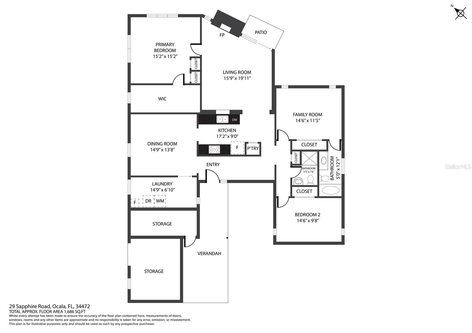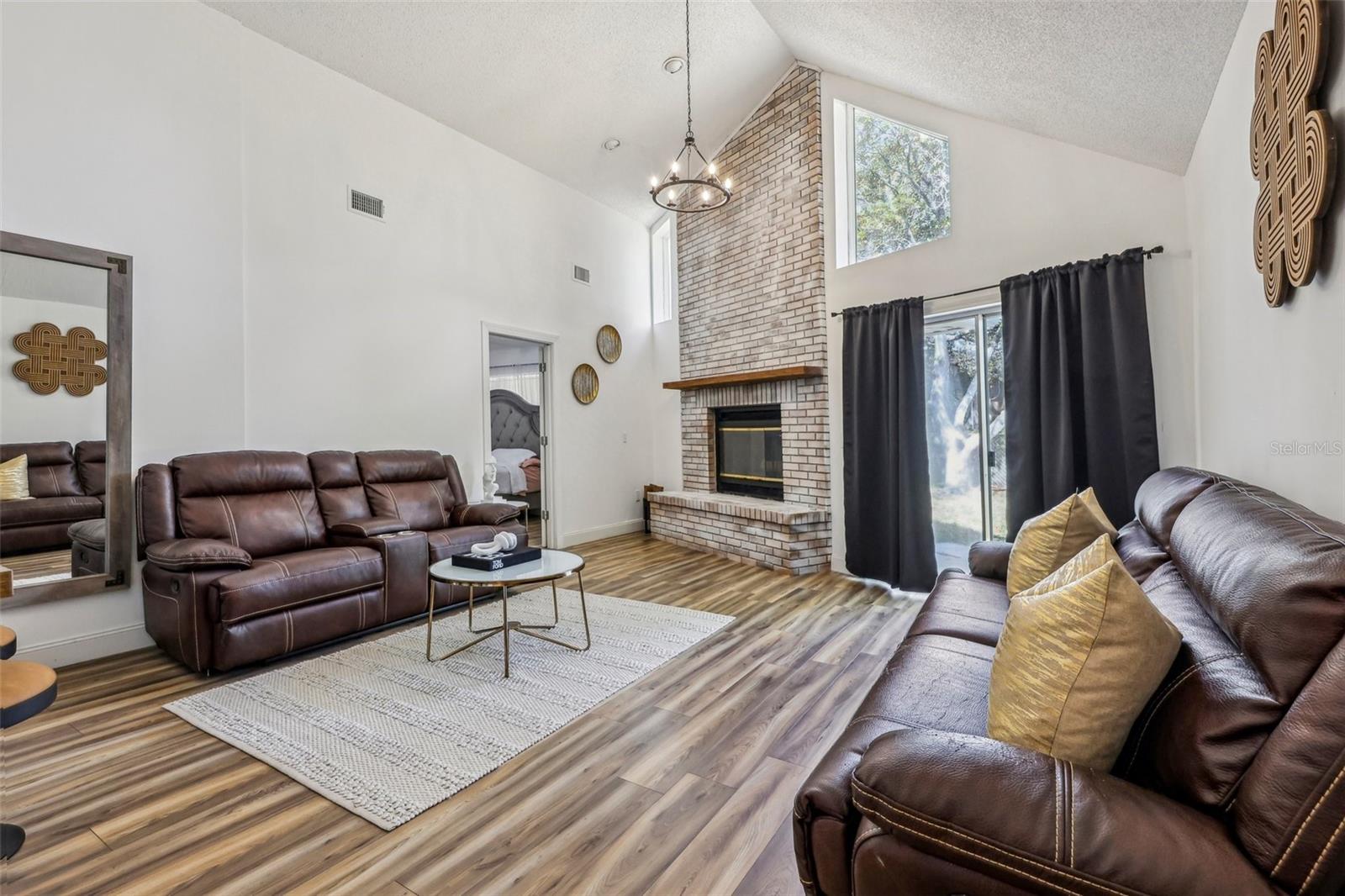 Bem-vindo a esta encantadora casa de 3 quartos e 2 banheiros, localizada em Beautiful Ocala, Flórida. Oferecendo 1.870 pés quadrados de espaço de estar, esta residência possui acabamentos modernos por toda parte. Ao entrar, você notará imediatamente o elegante piso laminado que flui perfeitamente pela casa. A espaçosa sala de estar apresenta tetos abobadados e uma impressionante lareira a lenha, criando uma atmosfera aconchegante e convidativa. Adjacente à sala de estar está a cozinha bem equipada, completa com utensílios de aço inoxidável, oferecendo estilo e funcionalidade para o chef doméstico. Uma sala familiar adicional oferece o espaço perfeito para relaxamento ou entretenimento. O quarto principal é um retiro pacífico, com um closet de grandes dimensões para amplo armazenamento. Situado em quase um quarto de hectare de terra, a propriedade oferece muita privacidade, tornando-o um local ideal para relaxar e apreciar o ar livre. Esta casa combina perfeitamente as comodidades modernas com conforto e conveniência - não perca a oportunidade de torná -la sua!