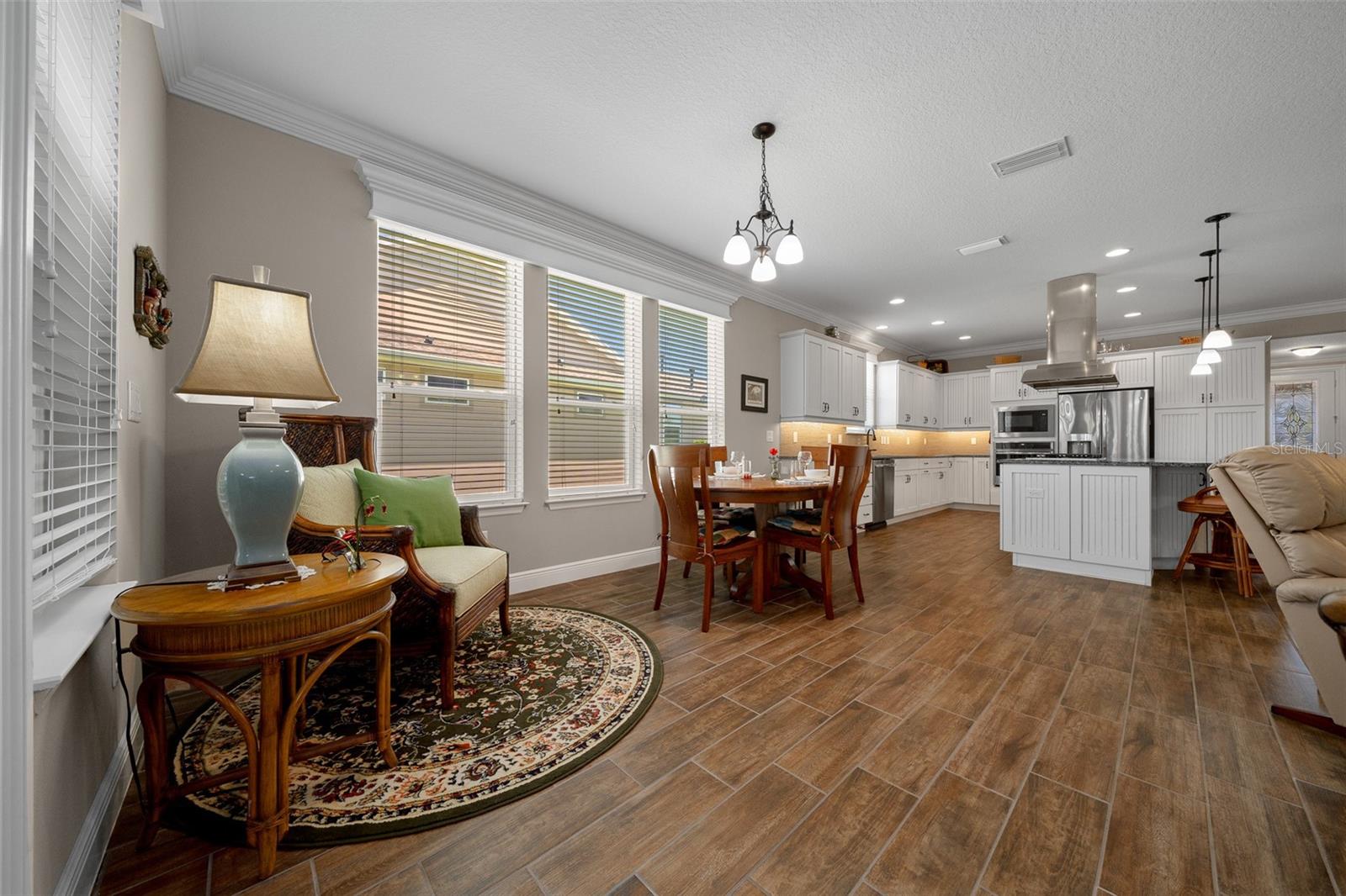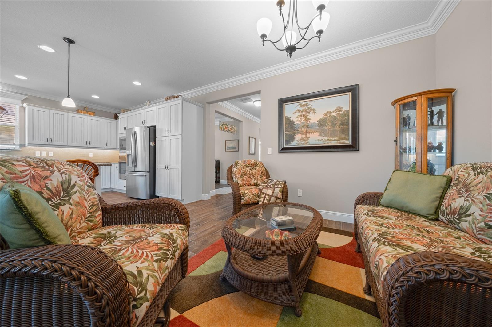 PREÇO MELHORADO – 0 financiamento inicial disponível! Casa lindamente conservada, localizada na área altamente procurada para todas as idades da comunidade de estilo resort de Ocala Preserve. Esta residência atualizada oferece a combinação perfeita de conforto, elegância e eficiência moderna. Uma das características de destaque é a enorme adição do Florida Room de 24,6' x 19,6', projetada para entretenimento e relaxamento. O espaço inclui um bar embutido com refrigerador de vinho, refrigerador de bebidas e garrafeira, além de buffet embutido e carrinho de rolamento - tudo incluído na casa. Um sistema de ar condicionado mini-split instalado em 2024 garante conforto durante todo o ano. A varanda protegida abrange toda a largura da casa e oferece vistas tranquilas do espaço verde aberto e da área de retenção seca. Uma conexão de gás natural está pronta para grelhar ao ar livre. No interior, a casa possui um novo sistema de ar condicionado com bomba de calor RUUD de 4 toneladas e 18 SEER (instalado em novembro de 2024) para aquecimento e resfriamento eficientes. O imóvel está equipado com gás natural para fogão, secadora e esquentador. Os acabamentos elegantes incluem sancas duplas, sanefas de madeira personalizadas, portas de painel em arco estilo Cheyenne, cantos arredondados e rodapés de 5¼". A área de estar aberta inclui uma saída de piso para colocação flexível de móveis. A cozinha do chef apresenta os armários atualizados de mais alto nível do construtor com esmalte, sancas e iluminação sob o armário, junto com uma pia composta de granito, armário de lixo extraível e gavetas fundas para panelas e frigideiras. A iluminação pendente acima da ilha adiciona um toque de estilo. Ambos os banheiros possuem chuveiros totalmente revestidos em azulejos, pias e vasos sanitários de altura confortável e gavetas adicionais para armazenamento. A suíte principal inclui uma charmosa área de estar ampla. O piso é de cerâmica nas principais áreas de estar e carpete em ambos os quartos. A lavanderia inclui pia e todos os eletrodomésticos (geladeira, lavadora e secadora) acompanham a venda. As características externas incluem paisagismo bem conservado com bordas de pedra decorativas, um sistema completo de calha e calha e um vínculo transferível de cupins com estações de isca para maior tranquilidade. Ocala Preserve oferece um verdadeiro estilo de vida de resort com serviços HOA que incluem cuidado de gramado, paisagismo, irrigação, fertilização, controle de pragas e internet de fibra de alta velocidade. As comodidades incluem um clube com restaurante no local e chef executivo, um spa de luxo, academia de ginástica de última geração com aulas, quadras de tênis, pickleball, bocha e ferradura, quilômetros de trilhas para caminhada e ciclismo e caiaques, canoas e acesso ao cais de pesca. Os entusiastas do golfe irão desfrutar do campo híbrido de 24 buracos, com a conveniência de pagar conforme joga e layouts em constante mudança. Localizada a poucos minutos do World Equestrian Center, de lojas, restaurantes e instalações de saúde, esta casa oferece o melhor do resort da Flórida Central, com luxo de baixa manutenção e comodidades excepcionais.