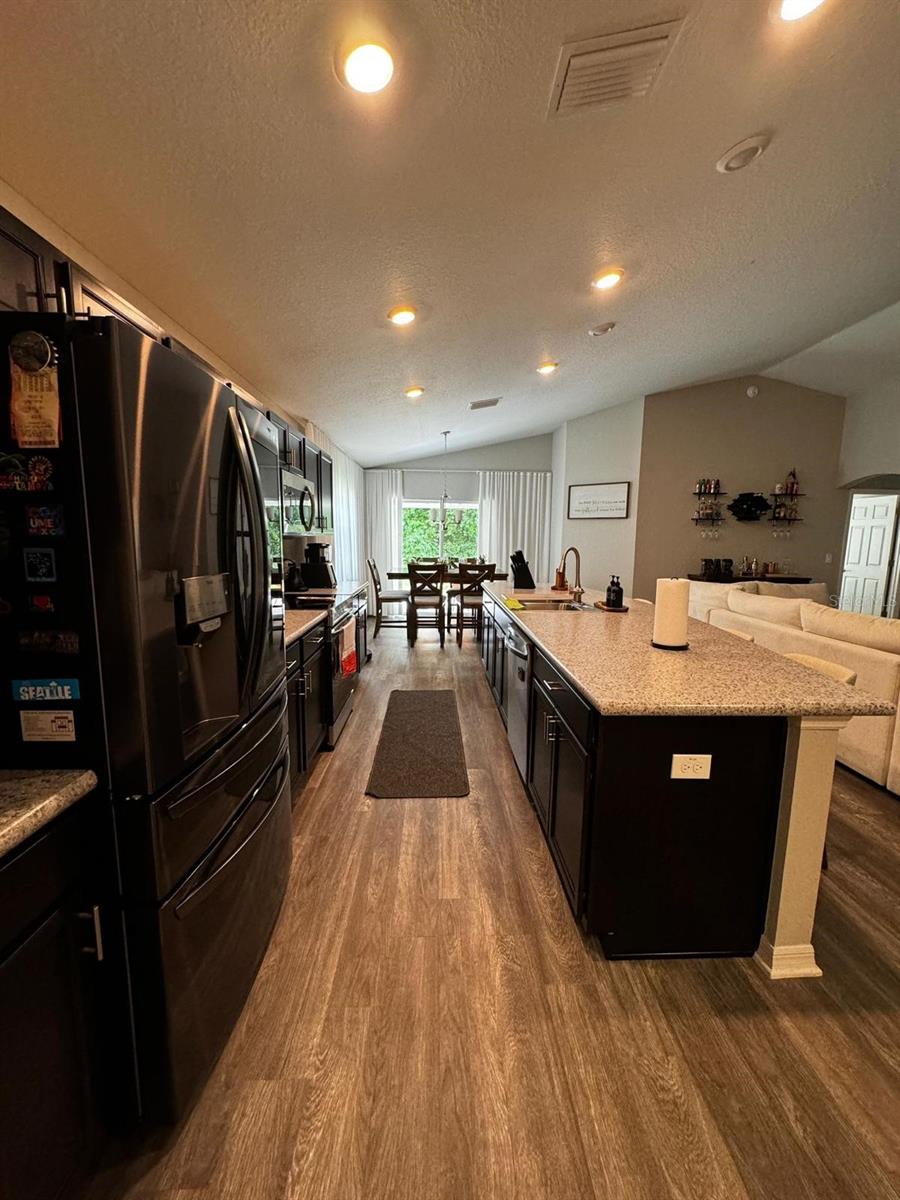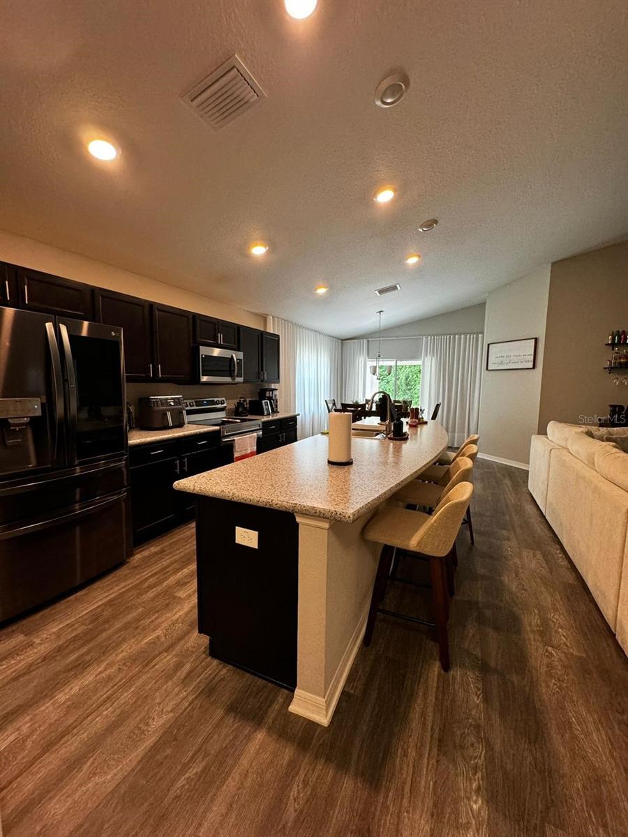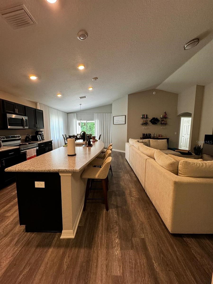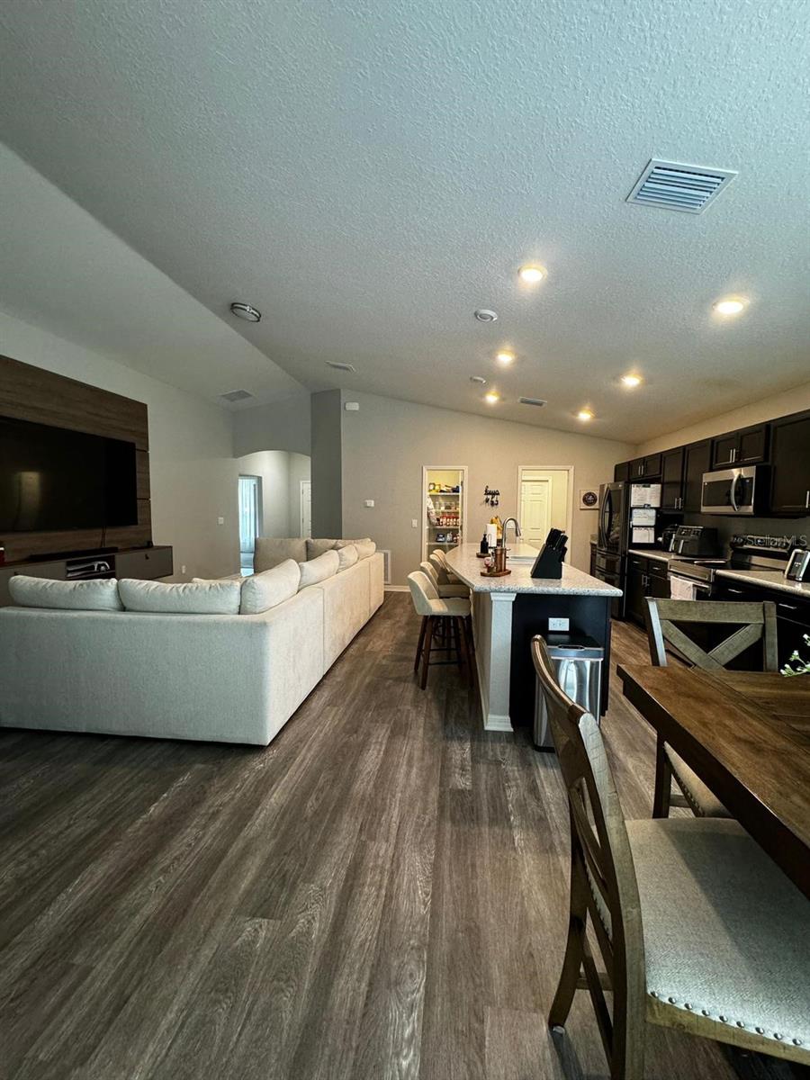 Aninhado em um bairro sereno, esta encantadora casa possui 4 quartos e 2 banheiros, oferecendo a mistura perfeita de conforto, privacidade e funcionalidade. Com apenas um vizinho adjacente, você terá um senso excepcional de reclusão e tranquilidade. A garagem espaçosa acomoda facilmente até 2 veículos, aumentando a conveniência da vida diária. No interior, o carpete de pelúcia aquece os quartos, enquanto o piso de vinil durável aumenta as áreas comuns, criando um ambiente prático, mas convidativo. A cozinha de conceito aberto flui perfeitamente para a sala de estar, acentuado por tetos abobadados que amplificam a sensação de espaço e luz. Equipado com aparelhos Samsung premium, a cozinha é elegante e funcional, pronta para inspirar sua criatividade culinária. A casa é aprimorada ainda mais pelos painéis solares, fornecendo eficiência energética e economia de longo prazo. Cortinas de alta qualidade são cuidadosamente instaladas, elevando a estética da casa e oferecendo conforto e privacidade imediatos. Um painel personalizado na sala simplifica a instalação da TV e facilita a atualização do layout sempre que a inspiração ocorrer. Experimente a vida moderna em uma casa que não está apenas pronta, mas cuidadosamente projetada para facilitar a facilidade e o prazer. Isso é mais do que apenas uma casa - é um retiro adaptado para elevar seu estilo de vida.