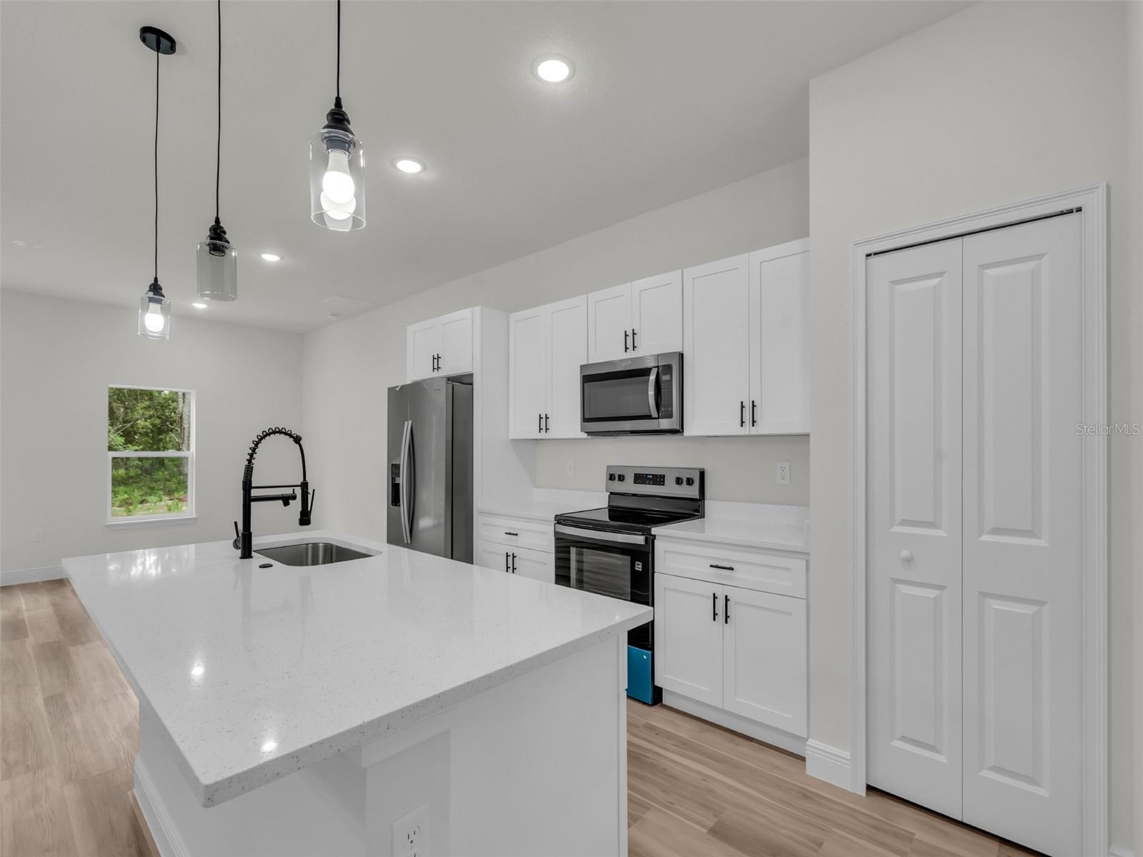 Crédito do vendedor de $ 5.000! Use-o para cobrir seus custos de fechamento ou para reduzir sua taxa de juros - disponível com uma oferta de preço integral. Uma ou mais fotos foram virtualmente encenadas. Esta impressionante nova construção oferece a combinação perfeita de qualidade, conforto e estilo – sem nenhum carpete à vista! Com 4 quartos espaçosos e 2 banheiros completos, esta casa cuidadosamente projetada possui uma planta aberta que flui facilmente pelas áreas de estar, jantar e cozinha. A cozinha gourmet é um verdadeiro destaque, completa com armários de madeira maciça com fechamento suave, porcelanato e eletrodomésticos de aço inoxidável de primeira linha - incluindo geladeira, fogão, micro-ondas, lava-louças, lavadora e secadora - tudo incluído! Aprecie a beleza e a durabilidade do piso vinílico com aparência de madeira, criando um espaço aconchegante e convidativo que também é fácil de manter. A suíte principal é um retiro privado, com pias duplas, acessórios elegantes, armários premium e um closet para ele e para ela. Vantagens adicionais incluem garagem para 2 carros com porta automática, sistemas de eficiência energética e garantias do construtor que proporcionam tranquilidade. Esteja você investindo ou plantando raízes, esta casa oferece um valor excepcional em uma comunidade em crescimento. Pronto para morar e construído para impressionar - não perca a oportunidade de tornar esta joia de Ocala sua!