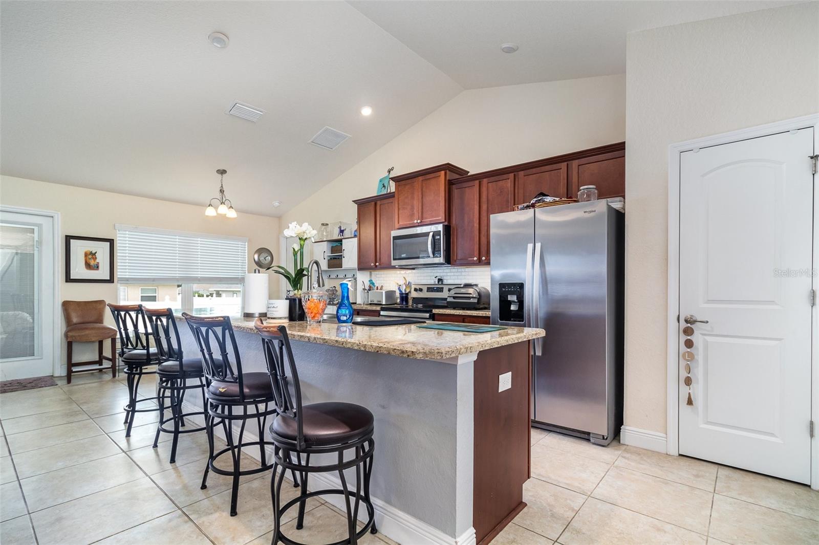 Bem-vindo a esta impressionante casa construída em 2019, aninhada na comunidade tranquila e fechada de St. James Park. Esta espaçosa residência de 4 quartos e 3 banheiros oferece uma planta de piso cuidadosamente projetada com uma garagem de 2 carros e transborda com charme e conforto modernos. Entre para encontrar um layout de conceito aberto, com tábuas de vinil de luxo e piso de azulejos de cerâmica, com uma grande sala leve e arejada destacada por tetos abobadados. A grande área de jantar flui perfeitamente para uma cozinha elegante, equipada com utensílios de aço inoxidável, uma despensa e uma ilha de grandes dimensões com bar de café da manhã, perfeita para refeições casuais ou divertidas. A suíte master privada é um verdadeiro refúgio com tetos de bandeja, um generoso closet, vaidades duplas, um armário de linho e um chuveiro. Destaques adicionais incluem uma lavanderia interior, um Lanai, ideal para relaxar e um quintal totalmente cercado com um galpão de armazenamento para maior conveniência. Situado a poucos minutos dos restaurantes, compras, no centro de Ocala e apenas 15 minutos até o centro equestre mundial. Esta casa oferece tranquilidade e uma localização privilegiada. Arruela e secadora transmitem !!! Não perca a oportunidade de fazer esta casa pronta para se mover a sua. Agende sua exibição hoje!