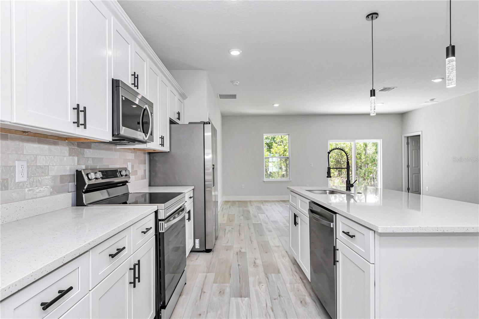 Linda casa recém -construída em Ocala O vendedor contribuirá para os custos de fechamento do comprador !! Apresentamos essa residência encantadora, que imediatamente encanta você com a varanda acolhedora e o jardim circundante. Com um design moderno e conceito aberto, a propriedade tem 4 quartos espaçosos e brilhantes, além de 2 banheiros, todos com acabamentos de ponta. A espaçosa sala de estar se conecta harmoniosamente ao quintal através de portas deslizantes, permitindo que a luz natural inundasse os espaços e proporcionando uma atmosfera brilhante e arejada. Os acabamentos refinados e o piso de vinil de alta qualidade melhoram o estilo contemporâneo e acolhedor da casa. Todos os quartos estão equipados com armários, oferecendo mais organização e praticidade na vida cotidiana. Os banheiros foram projetados para combinar funcionalidade e elegância, com pias modernas e armários personalizados. A cozinha é prática e elegante, com bancadas de quartzo e aparelhos essenciais, ideais para quem valoriza a funcionalidade sem sacrificar o bom gosto. A lavanderia está pronta para receber seu equipamento, tornando o espaço ainda mais funcional. Como uma característica especial, a casa oferece uma garantia de 1 ano do construtor, fornecendo segurança e tranqüilidade ao novo proprietário. A garagem de dois carros, com portão automático, adiciona conveniência e proteção à propriedade. Estrategicamente localizado, você estará perto de várias opções, lojas e serviços de lazer. Não perca esta oportunidade! Agende sua visita e descubra o lar ideal para viver com conforto, estilo e qualidade.