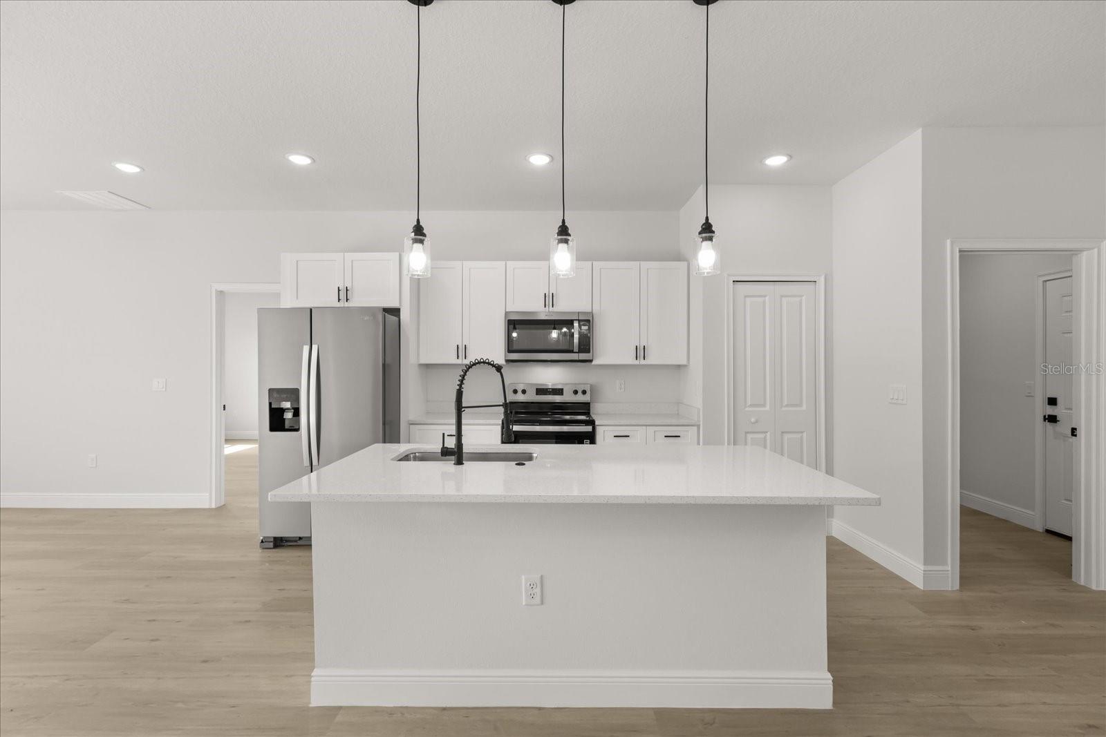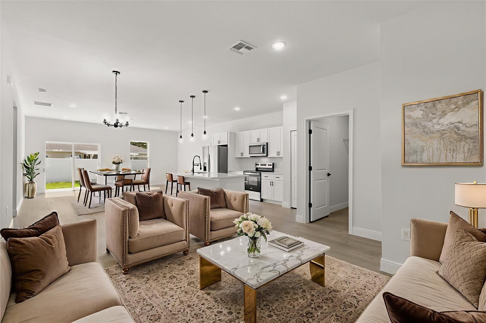 Uma ou mais fotos foram praticamente encenadas. Nova casa de quatro quartos e dois banheiros na desejável comunidade Marion Oaks! Esta bela propriedade apresenta um layout moderno de conceito aberto, bancadas em granito, utensílios de aço inoxidável, piso de vinil de luxo e um espaçoso quintal. A planta baixa oferece uma suíte de proprietário particular com closet e vaidade dupla. Convenientemente perto de escolas, compras e grandes rodovias para facilitar o deslocamento. Esta casa pronta para uso é uma oportunidade fantástica para compradores, famílias ou investidores iniciantes. Não perca a chance de possuir esta nova casa em uma das áreas de crescimento de Ocala.
