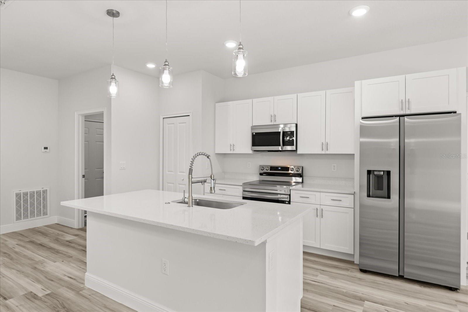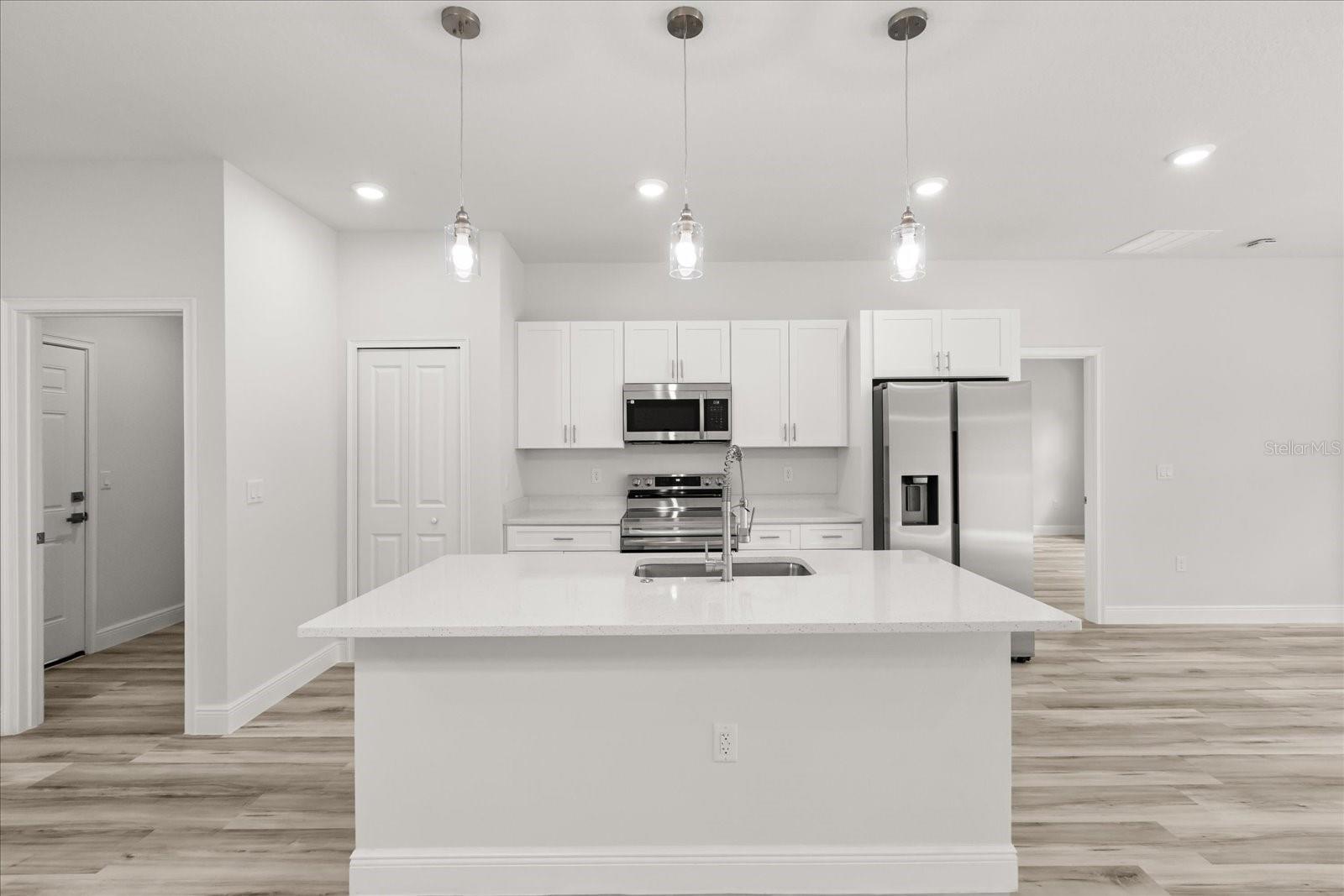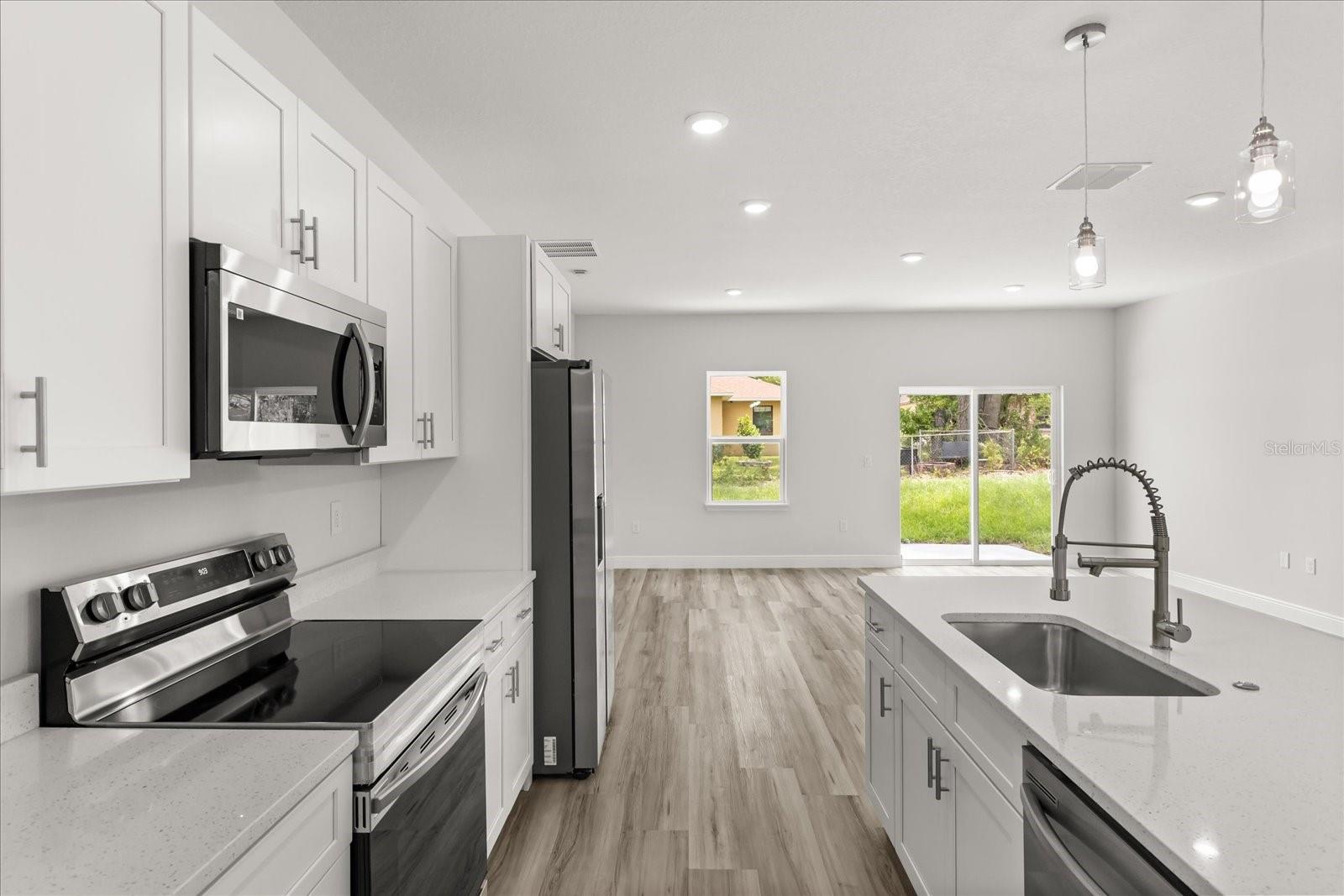Não perca esta oportunidade incrível! Bem-vindo a esta impressionante construção nova, oferecendo 1.865 pés quadrados de espaço de vida cuidadosamente projetado. Esta casa moderna de 4 quartos e 3 banheiros possui um layout de conceito aberto cheio de luz natural, piso de vinil de luxo por toda parte e acabamentos de ponta que elevam todos os cantos do interior. A cozinha contemporânea é um verdadeiro destaque, equipado com bancadas de quartzo, utensílios de aço inoxidável, armários brancos elegantes e iluminação pendente elegante acima da ilha expansiva - perfeita para a vida diária e o entretenimento. A espaçosa suíte primária oferece um retiro privado, completo com dois armários e um banheiro inspirado em spa, com uma banheira de imersão independente, um chuveiro de azulejos separados com acessórios pretos foscos e uma vaidade dupla com bancadas de quartzo. Os quartos adicionais são generosamente de tamanho, cada um com acesso a banheiros completos lindamente projetados, proporcionando conforto e privacidade para membros da família ou convidados. A lavanderia inclui conexões para uma pia de utilidade e oferece muito espaço para armazenamento e conveniência. Saia pelas portas de vidro deslizante até um grande quintal, oferecendo amplo espaço para personalizações divertidas, relaxantes ou futuras. Situado em uma rua tranquila, esta casa oferece privacidade, conforto e elegância moderna em um pacote completo. Sem restrições de HOA, uma garagem para dois carros e uma garagem longa, esta propriedade está pronta para você se mudar e desfrutar de todos os benefícios da nova construção em uma área de crescimento.