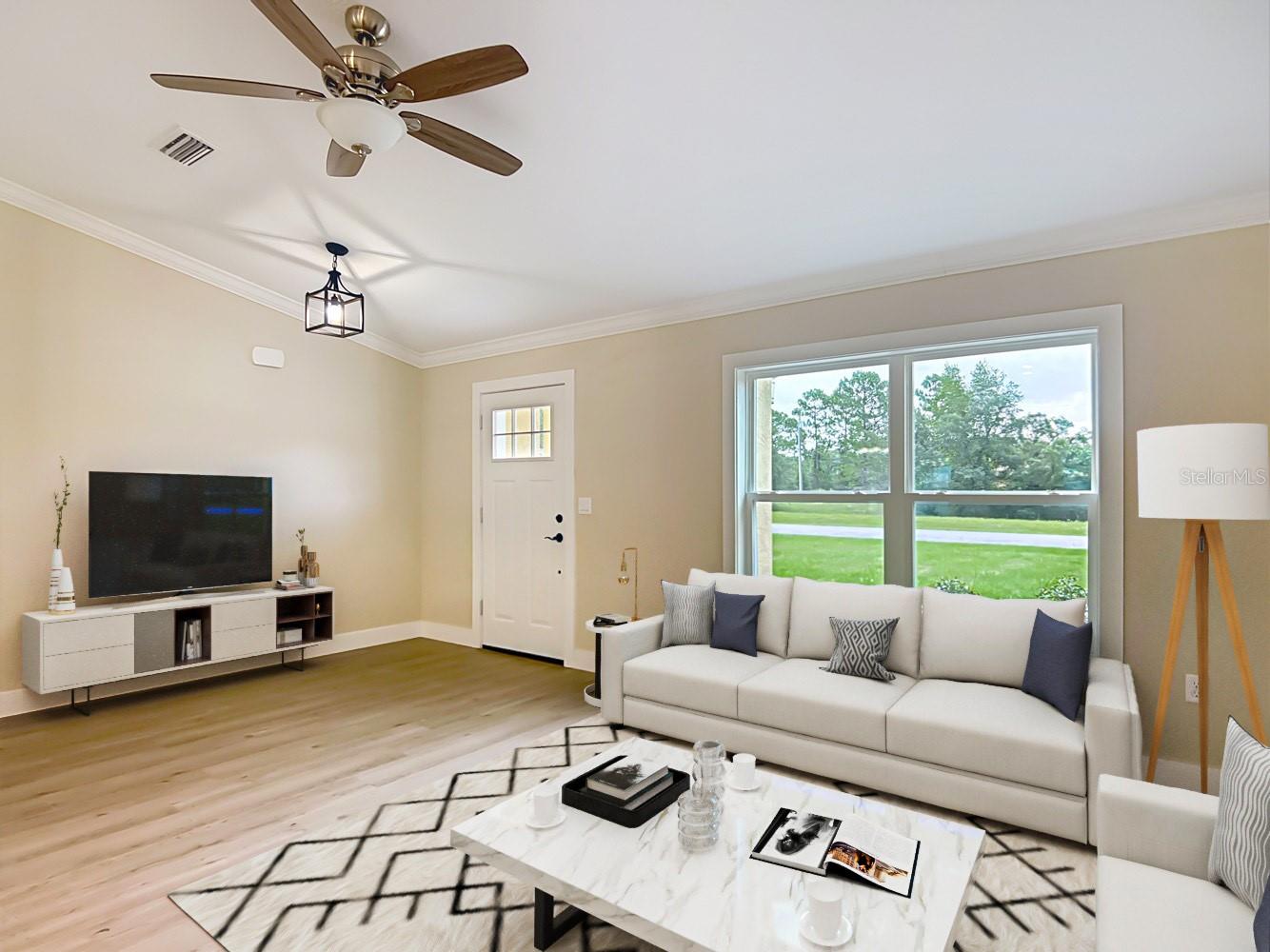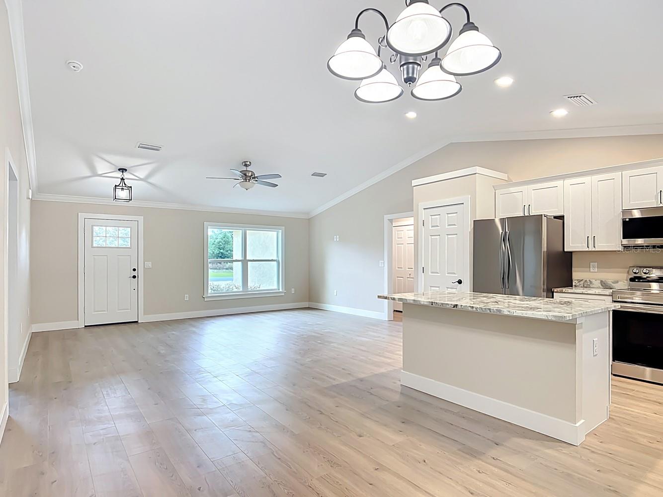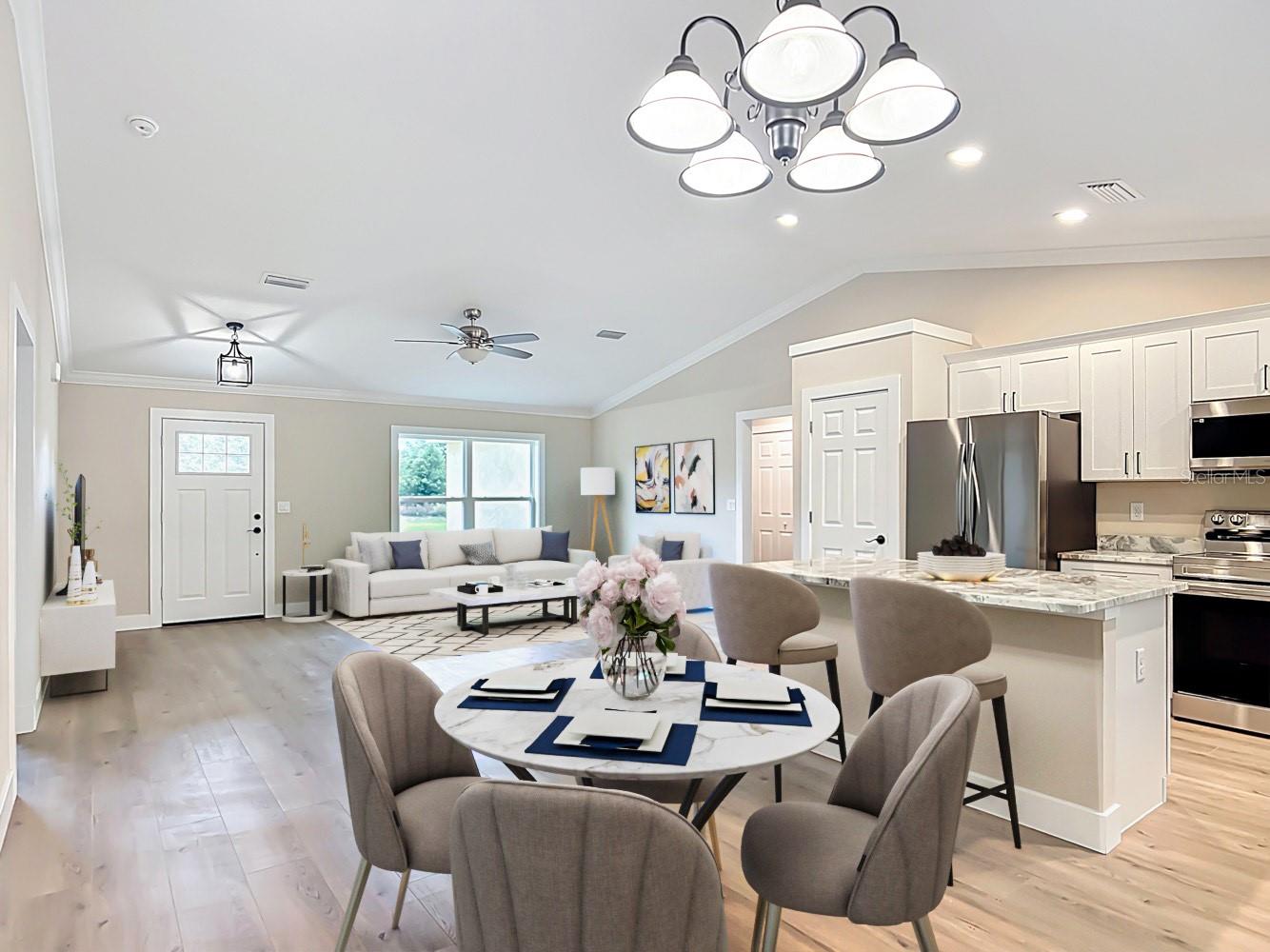 Uma ou mais fotos foram praticamente encenadas. Bem -vindo a esta nova casa de construção lindamente criada, localizada na Amazing Marion Oaks Unit 7 Community. Esta residência unifamiliar pronta para mudança oferece conforto moderno e ao longo de seu espaçoso layout. No interior, você encontrará três quartos espaçosos e dois banheiros completos projetados com funcionalidade e estilo em mente. A cozinha gourmet apresenta bancadas de quartzo, utensílios de aço inoxidável, armários modernos e uma barra de café da manhã perfeita para a vida e entretenimento diários. As áreas de estar e jantar de conceito aberto são brilhantes e convidativas, aprimoradas por tetos abobadados e piso de madeira engenhada de luxo. O traje primário é o verdadeiro retiro, completo com um closet, vaidade de pia dupla e chuveiro de ladrilhos. Fora da casa, possui um grande apelo ao meio-fio com paisagismo limpo, uma garagem para dois carros com piso epóxi e um pátio coberto ideal para relaxamento ao ar livre. Localizado a poucos minutos de compras, restaurantes, escolas e parques, com fácil acesso às principais rodovias para se deslocar. Esta casa fornece a mistura perfeita de conforto, conveniência e comunidade. Não perca a chance de possuir esta nova casa na área de Ocala.