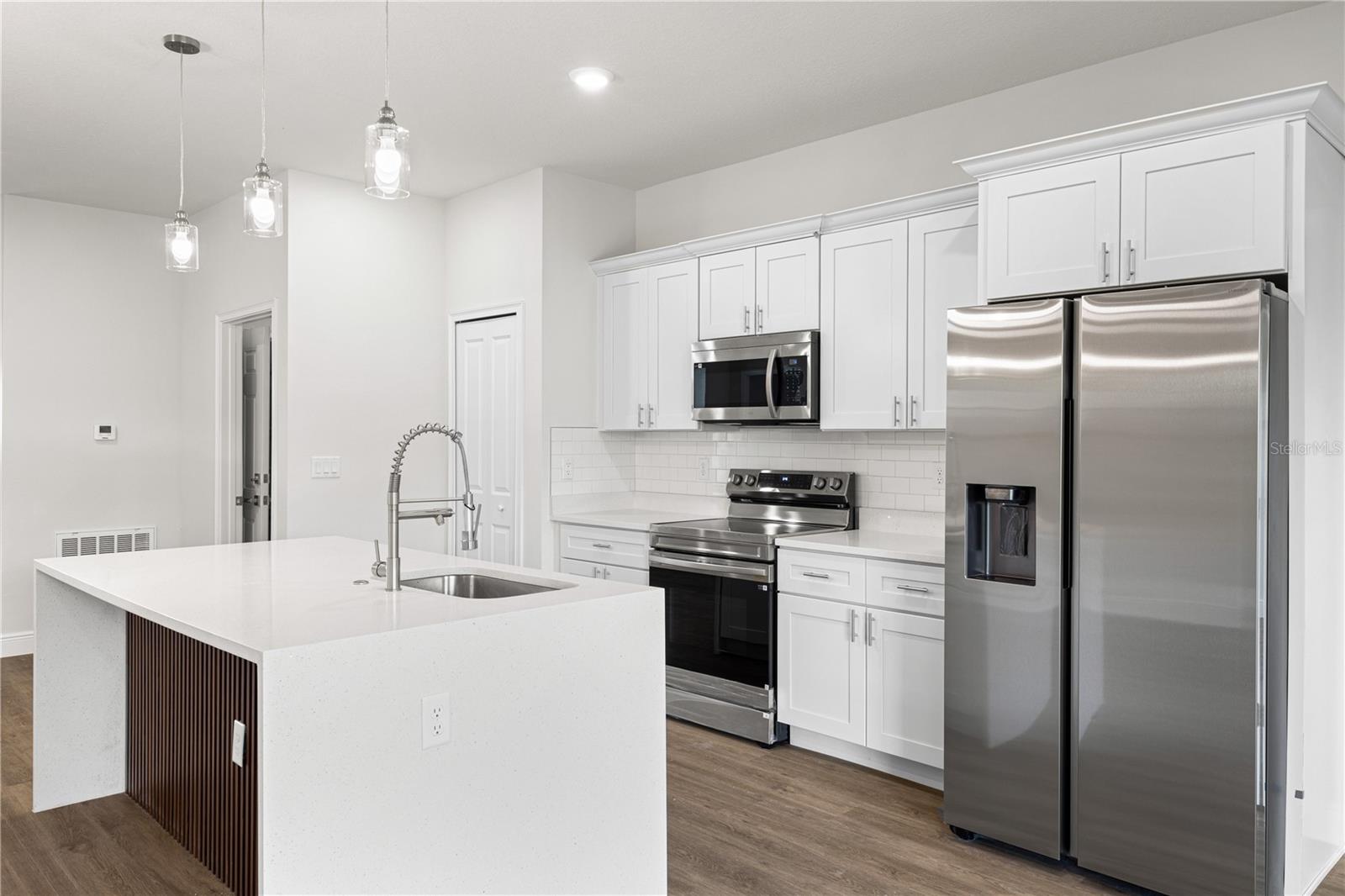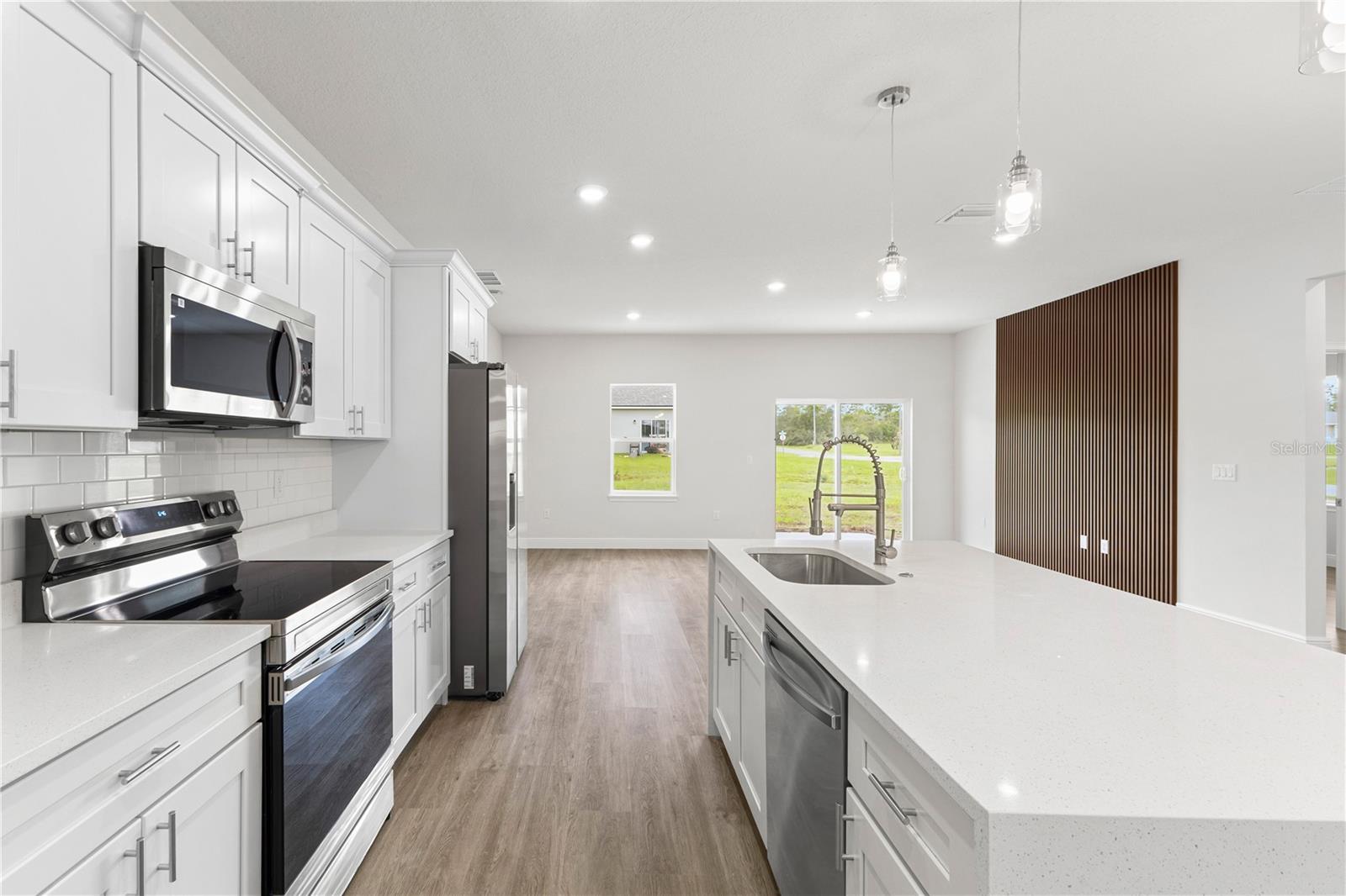 Esta casa nova está cheia de atualizações e oferece uma mistura perfeita de estilo, conforto e funcionalidade. Com 1865 pés quadrados de área de estar aquecida e situada em um grande lote de canto para maior privacidade e espaço ao ar livre, esta moderna residência unifamiliar inclui 4 quartos, 3 banheiros completos e uma garagem de 2 carros com um layout inteligente de conceito aberto. A área principal flui para uma cozinha de grife com uma ilha central com ripas de madeira personalizadas e bancadas de cachoeira de ambos os lados, um elegante backsplash e armários modernos elegantes. Os detalhes em ripas de madeira também elevam a estética na sala de estar, banheiro principal e entrada, adicionando um toque de design único e contemporâneo. A espaçosa suíte primária inclui dois armários separados e um banheiro privativo lindamente decorado. Todo canto desta casa foi cuidadosamente criado para combinar design e funcionalidade. Localizado na comunidade Marion Oaks de rápido crescimento, com fácil acesso a escolas, compras e estradas principais. Mudar-se pronto-agende sua exibição hoje!