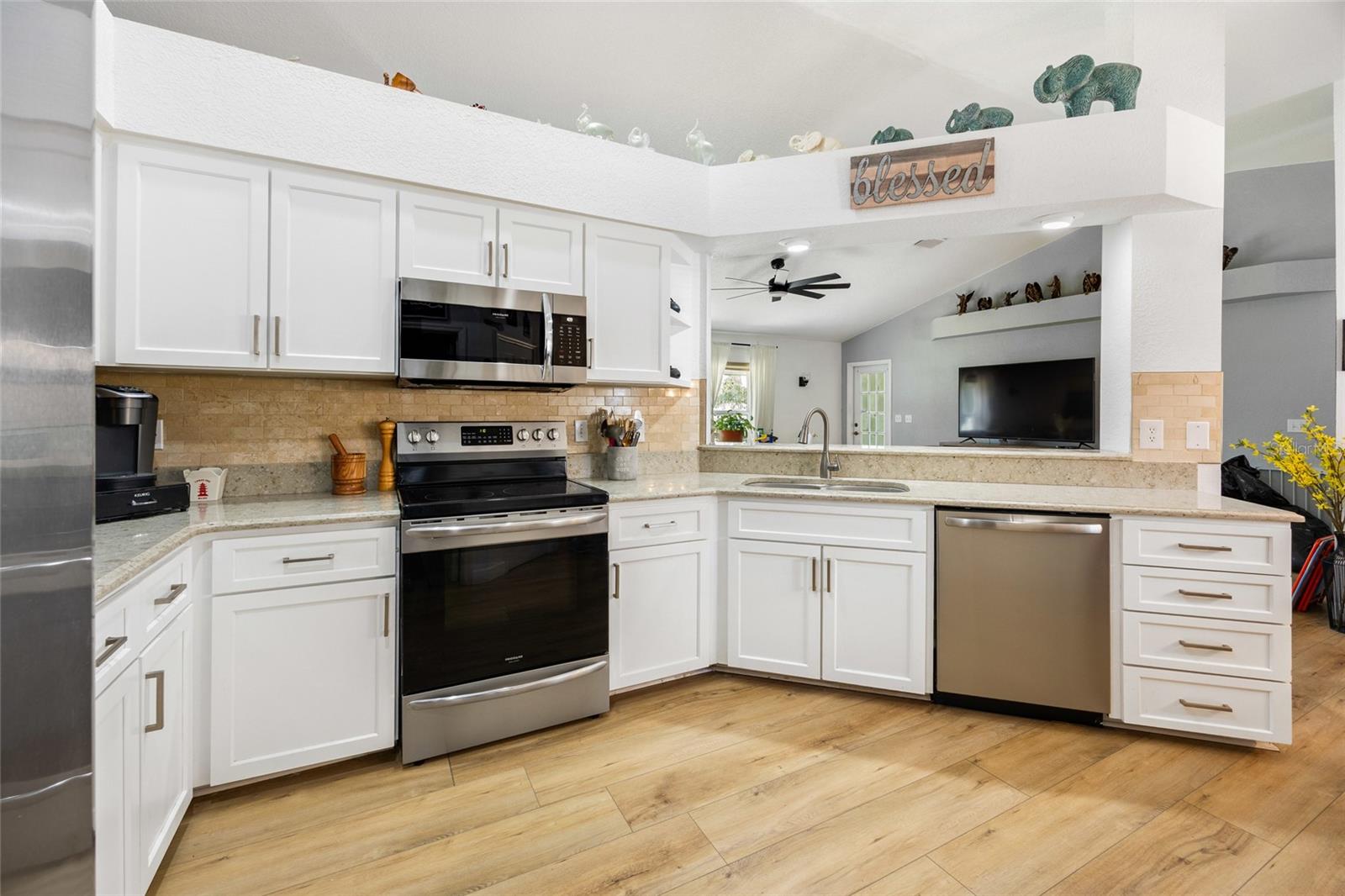 Localizada na comunidade de Lake Hidden estabelecida, esta casa bem cuidada fica em um lote de 34 acres e oferece uma planta baixa aberta e com quartos com 3 quartos e 2 banheiros. O layout foi projetado para uma vida divertida e cotidiana. Os tetos da catedral aumentam a sensação de espaço, enquanto a cozinha com bancadas em granito e utensílios de aço inoxidável flui facilmente para as áreas de estar. A marquise com ar-condicionado é um local ideal para reuniões, café da manhã ou noites tranquilas em casa. Do lado de fora, a garagem circular oferece muito estacionamento e acesso fácil, enquanto o quintal cercado, o sistema de aspersão, as persianas automatizadas de tempestades e as calhas de chuva proporcionam conveniência e função. As atualizações recentes incluem um novo telhado (2019) e o novo sistema HVAC (2022) para adicionar a paz de espírito. Esta casa combina atualizações práticas com um layout confortável em um local conveniente. Venha ver a facilidade com que se encaixa no seu estilo de vida - schedule sua exibição hoje!