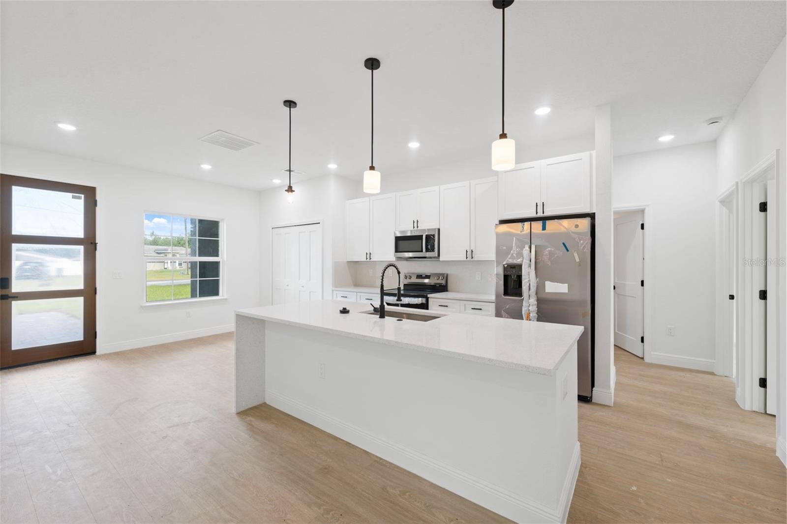 Linda casa nova de construção com 4 quartos em um terreno de grandes dimensões em localização privilegiada em Ocala Bem-vindo a esta nova casa lindamente projetada com 4 quartos e 2 banheiros, localizada em um dos bairros mais desejáveis de Ocala. Situada em um terreno de grandes dimensões, esta propriedade oferece espaço extra, privacidade e flexibilidade raramente encontradas no mercado atual. Com planta aberta, layout amplo e acabamentos elegantes, esta casa é perfeita para famílias, compradores de primeira viagem ou quem procura conforto e comodidade em uma localização fantástica. Entre em uma sala de estar e de jantar bem iluminada e arejada, ideal para entreter ou relaxar com seus entes queridos. O coração da casa é a linda cozinha, com armários de madeira maciça, bancadas de pedra e eletrodomésticos modernos, tudo incluído. Esteja você cozinhando para convidados ou desfrutando de uma refeição tranquila, este espaço combina funcionalidade com estilo. O quarto principal oferece um retiro tranquilo com um grande closet e muita luz natural. Os três quartos adicionais são de áreas generosas e contam com armários embutidos, proporcionando bastante arrumação e flexibilidade para a família, convidados ou até mesmo um home office. Aproveite o ar livre o ano todo com uma varanda coberta, perfeita para tomar o café da manhã, jantar ao ar livre ou simplesmente relaxar no final do dia. Com dois banheiros completos, garagem anexa para 2 carros e um design cuidadoso, esta casa realmente tem tudo. Localizado perto de escolas de primeira linha, lojas locais e principais rodovias, você desfrutará de fácil acesso a tudo o que Ocala tem a oferecer enquanto vive em uma comunidade tranquila e acolhedora. Não perca esta oportunidade de possuir uma casa de construção nova, pronta para morar, com charme atemporal, conveniência moderna e a vantagem adicional de um lote enorme. Agende sua exibição privada hoje mesmo!