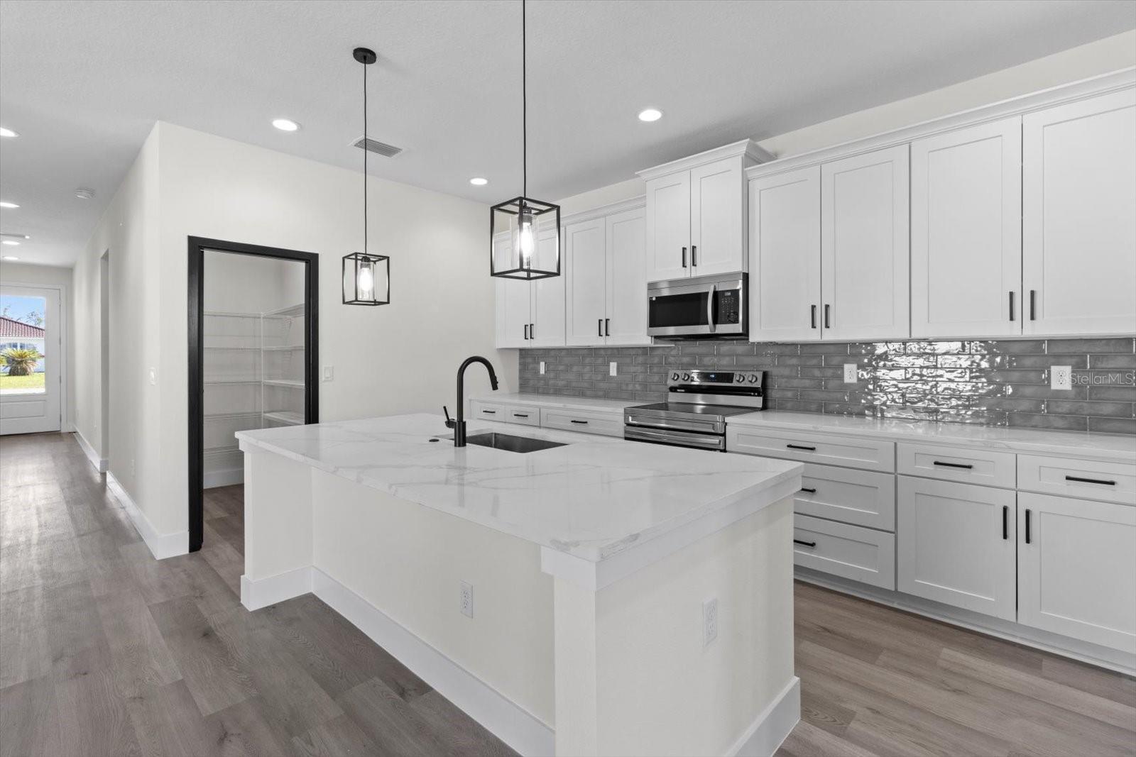 Esta é a casa que você estava esperando, um design impecável de 4 quartos e 3 banheiros, situado em um terreno privado, sem vizinhos traseiros, em uma localização central na comunidade Marion Oaks. A partir do momento em que você chegar, você notará a diferença com o artesanato moderno de última geração e atualizações impressionantes do Builder, como piso LVP à prova d'água (SEM TAPETE), portas pretas de fábrica SOLID CORE personalizadas, luminárias elegantes em preto fosco e holofotes de segurança externos. A cozinha com design deslumbrante apresenta armários superiores de 42 '', ilha de entretenimento de peça marcante, bancadas de quartzo branco Calacatta, conjunto de eletrodomésticos de aço inoxidável Samsung, backsplash de vidro e uma despensa ampla. A sala principal tem muita luz natural e o conceito aberto é perfeito para receber familiares e amigos. A Suíte do Proprietário apresenta pia dupla, chuveiro elegante com box de vidro e closet. Os quartos de hóspedes são espaçosos, com banheiros de hóspedes com azulejos de design do chão ao teto e combinação de banheira/chuveiro. A lavanderia interna tem muito espaço de armazenamento e a lavadora e secadora Samsung também estão incluídas. As portas francesas abrem para a varanda totalmente coberta, que é a extensão perfeita do espaço da casa para desfrutar do belo sol da Flórida. INCENTIVOS PARA CONSTRUTOR disponíveis, incluindo assistência no CUSTO DE FECHAMENTO e taxa de juros BuyDown! Consulte nossos programas disponíveis. Agende hoje mesmo sua exibição privada e descubra por que esta casa se diferencia de todas as outras!