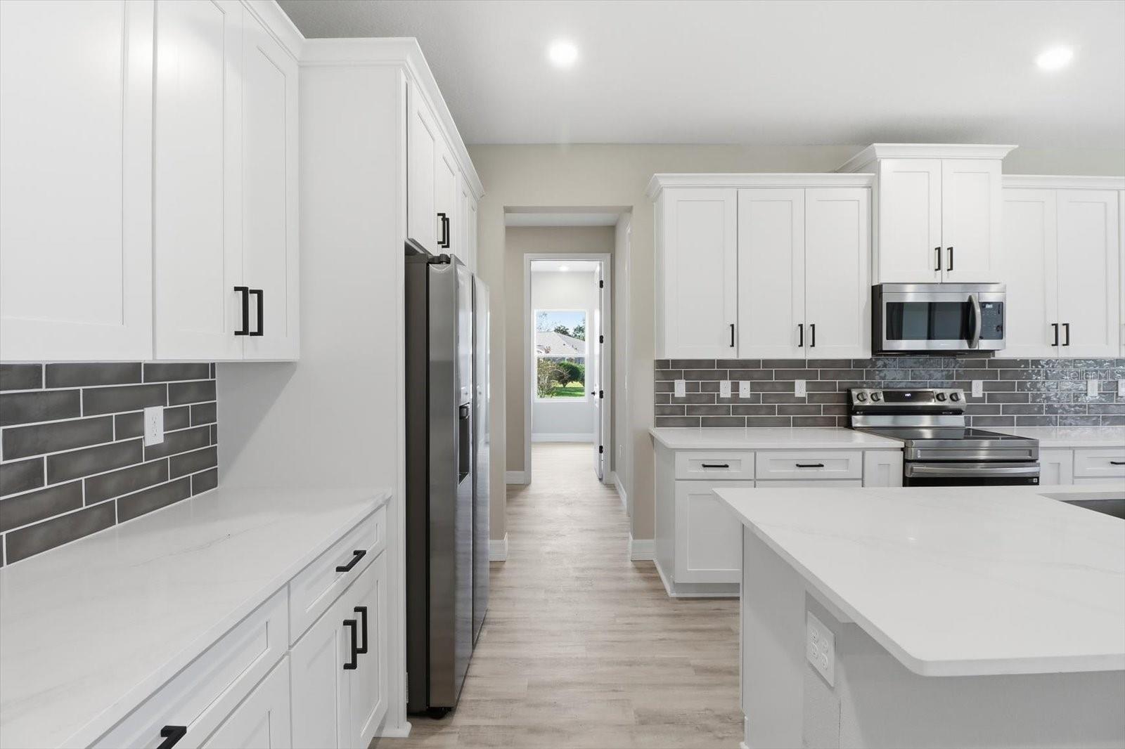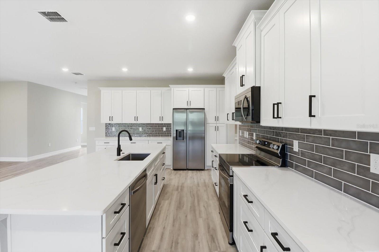 Nova construção absolutamente deslumbrante com 5 quartos, 4 banheiros e garagem para 3 carros situada na procurada comunidade Waterway Estates! As características de destaque incluem lindas bancadas de quartzo branco Calacatta, azulejos de design ATUALIZADOS do chão ao teto em todos os banheiros, conjunto de eletrodomésticos de cozinha em aço inoxidável Samsung, incluindo lavadora e secadora, tetos de 9'4'', portas de 8' em toda a casa, piso 100% impermeável Mohawk Ballard LVP em toda a casa (SEM TAPETE) e muito mais. A partir do momento em que você chegar, você notará a entrada de grandes dimensões, com amplo estacionamento e detalhes em tijolos de bom gosto. Uma vez lá dentro, você é recebido pelo hall de entrada que se abre para o amplo espaço de estar, com a sala de estar, a sala de jantar e a cozinha, todas fluindo juntas em perfeita harmonia. A cozinha possui armários superiores de 42 '', despensa e ilha de bancada que com certeza será o centro do entretenimento. A suíte Master apresenta teto falso, pia dupla, closet grande e chuveiro de design totalmente revestido com vidro. Também localizados no primeiro andar estão 3 quartos de hóspedes, todos muito bem dimensionados, com dois quartos compartilhando um banheiro jack and jill com pia dupla e combinação de banheira/chuveiro. No andar de cima, um grande loft com sala bônus oferece espaço flexível para uma sala de mídia, sala de jogos ou escritório e o quinto quarto com banheiro completo adicional. Este espaço é ideal para hóspedes ou suítes de sogros multigeracionais. A despensa interna com muita luz natural fará da lavanderia sua tarefa favorita. A varanda coberta é a extensão perfeita da casa para aproveitar o clima da Flórida e relaxar com a família e amigos. Não se esqueça do ENORME quintal com muito espaço para piscina. Tranquilidade extra sabendo que a casa é apoiada pelo programa de garantia residencial Builder. Não se esqueça de nossos incentivos para construtores e programas de credores preferenciais, incluindo assistência para custos de fechamento e redução de taxas de juros. Não espere ligar hoje para sua exibição privada!