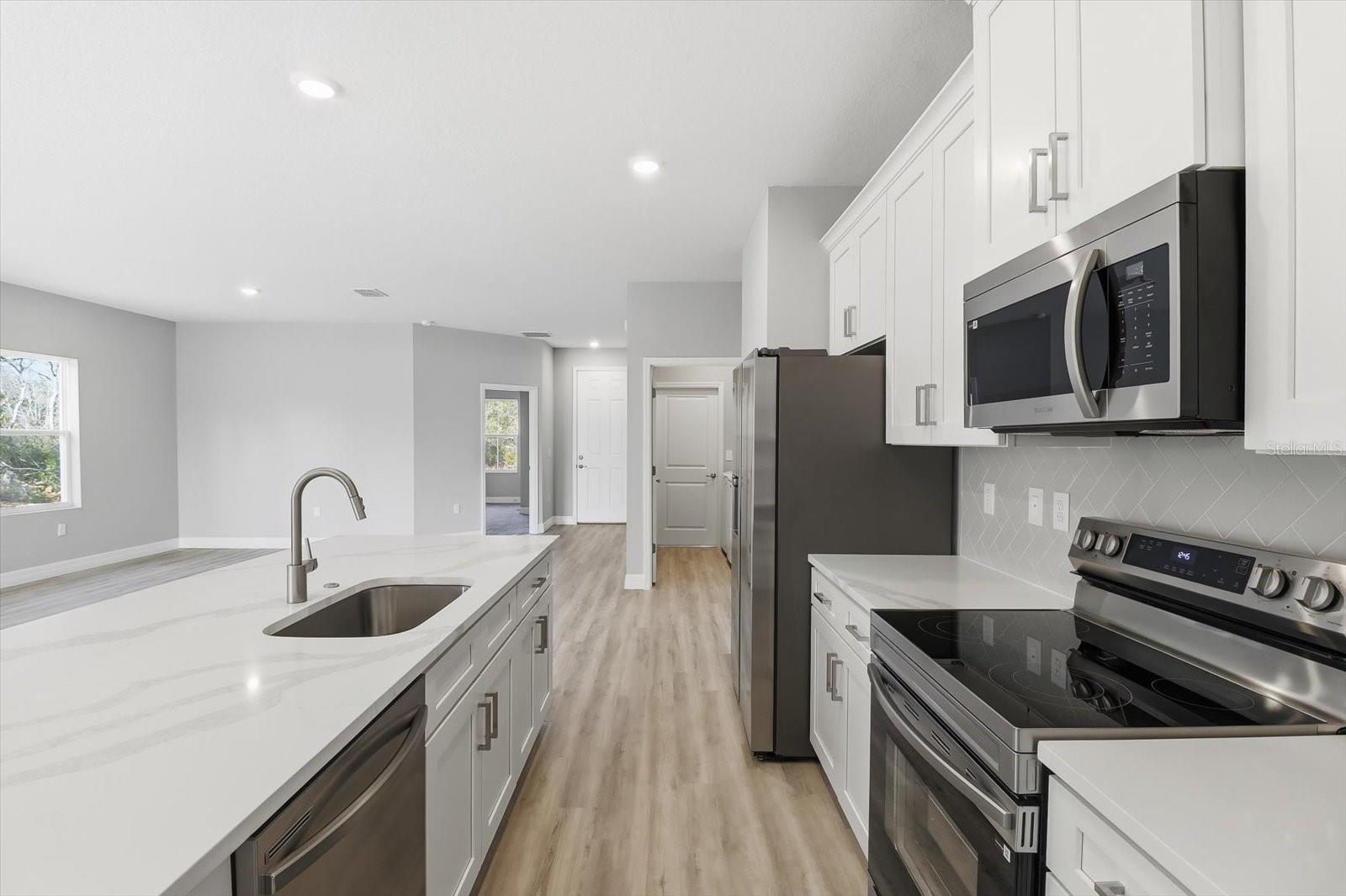 Pergunte sobre nossos incentivos para construtores disponíveis! Dê uma olhada nesta deslumbrante casa de construção NOVA em folha com 4 quartos e 3 banheiros em uma excelente localização perto de tudo em Ocala e Marion Oaks. A partir do momento em que você chegar, você notará a diferença com esta moderna planta aberta que é centrada em torno da cozinha do chef, com armários superiores de 42 "com sancas, lindas bancadas Dolce White Quartz, despensa e grande ilha de entretenimento. A ampla sala grande com a combinação de sala de estar e sala de jantar garante que todos estejam incluídos na ação. A suíte do proprietário apresenta tetos de bandeja, closets para ele/ela, pia dupla e chuveiro com aparência de pedra totalmente revestida com gabinete de vidro. Ambos os banheiros secundários também possuem azulejos do chão ao teto com combinação de chuveiro/banheira. Outros recursos de destaque incluem tetos de 9'4 '', pacote de eletrodomésticos de aço inoxidável Samsung atualizado com lavadora e secadora, piso de prancha de vinil de luxo à prova d'água e resistente a arranhões nas áreas comuns e grandes dimensões. Lote de 0,28 acres. Tranquilidade extra sabendo que a casa é apoiada pelo programa de garantia residencial do Construtor. Não se esqueça de nossos incentivos ao construtor e programas de credores preferenciais, incluindo assistência de custo de fechamento e redução de taxa de juros.