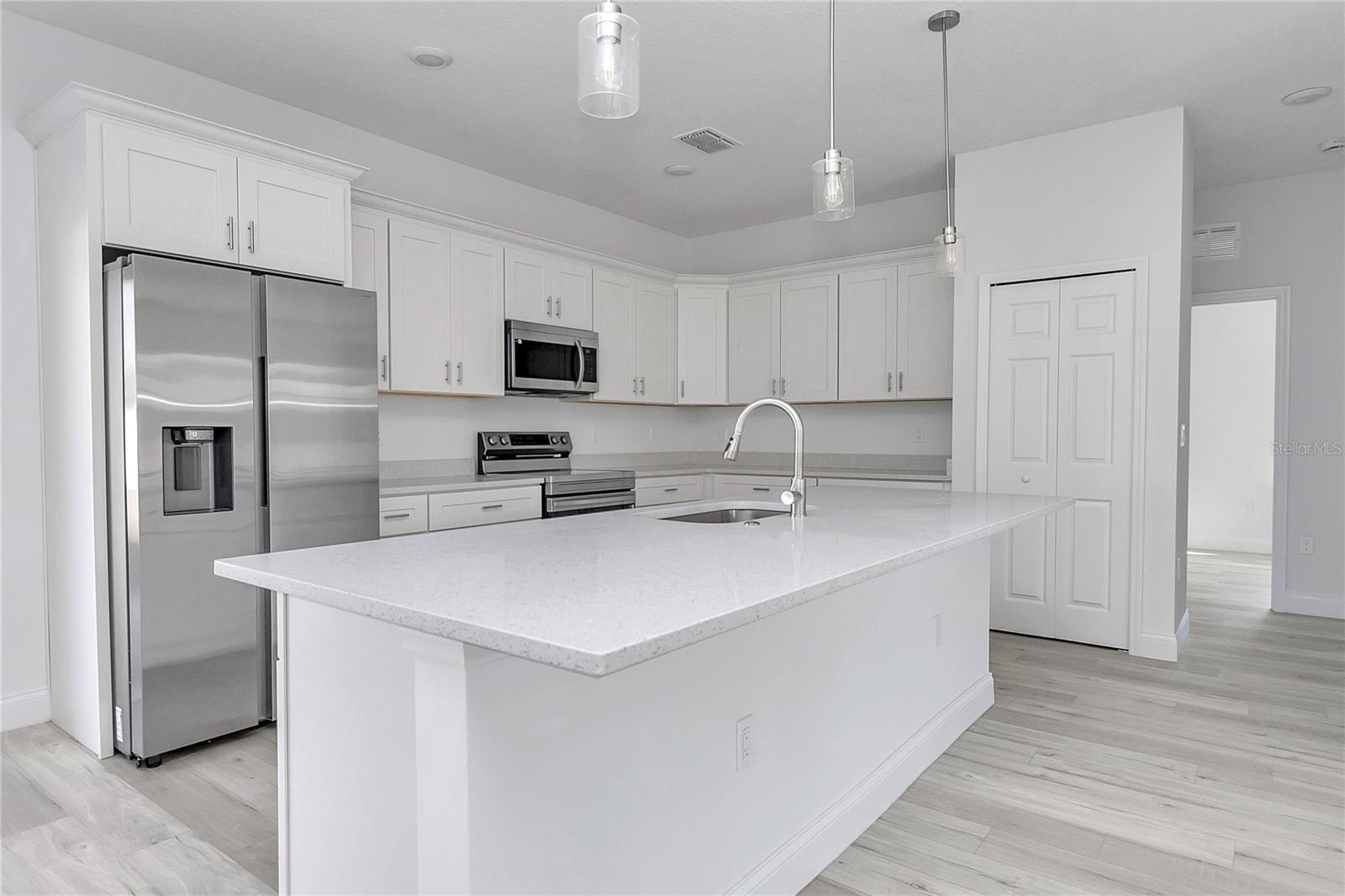 Impressionante casa de construção nova em localização privilegiada em Ocala Bem-vindo a esta nova casa de construção lindamente projetada no coração de Ocala, onde o conforto moderno encontra o estilo atemporal. Com 4 quartos espaçosos, esta casa foi cuidadosamente pensada para oferecer funcionalidade e elegância ao estilo de vida atual. A suíte principal é um verdadeiro retiro, oferecendo um amplo closet e banheiro privativo completo com banheira relaxante, perfeita para relaxar após um longo dia. Os três quartos adicionais incluem armários embutidos, proporcionando armazenamento inteligente e uma sensação de limpeza e organização em toda a casa. No total, o imóvel oferece 2 casas de banho completas e 1 lavabo, todas com acabamentos modernos e materiais de qualidade. Entre em uma convidativa planta aberta que conecta perfeitamente a espaçosa sala de estar e a área de jantar, criando um espaço ideal para entretenimento ou para a vida cotidiana. A bela cozinha se destaca pelos armários de madeira maciça, bancada de pedra e eletrodomésticos inclusos, proporcionando estilo e funcionalidade. As características adicionais incluem uma garagem anexa para 2 carros e um layout que permite excelente fluxo e luz natural. Situada numa localização altamente desejável perto de uma estrada principal, esta casa oferece acesso conveniente a lojas, restaurantes e necessidades diárias, ao mesmo tempo que está perto de escolas de topo, tornando-se uma excelente opção para famílias. Esta nova construção pronta para morar combina artesanato de qualidade, design moderno e uma excelente localização - uma oportunidade excepcional para compradores que procuram uma nova casa em Ocala. Agende sua exibição privada hoje.