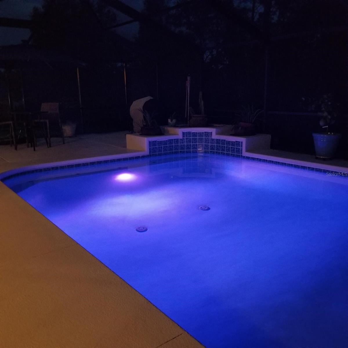 Deck, iluminação de fibra óptica, gunite, no solo, iluminação, gabinete de tela