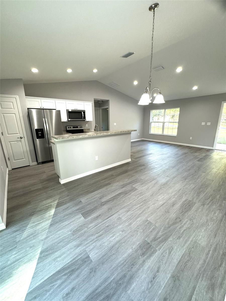 Nova Construção - CONCLUÍDA! 02/03/1 1.082 pés quadrados. Área de estar / 1.503 pés quadrados. Total sob o telhado, possui LR, DR, Cozinha, Despensa, Fogão, Geladeira, Máquina de Lavar Louça e Microondas, Teto Catedral na área de estar, Planta de Quarto Split, Master Suite, closet, garagem, lavandaria, entrada coberta. Piso LVP por toda parte. Inclui garantia de construtor de 1 ano e garantia estrutural de 10 anos!