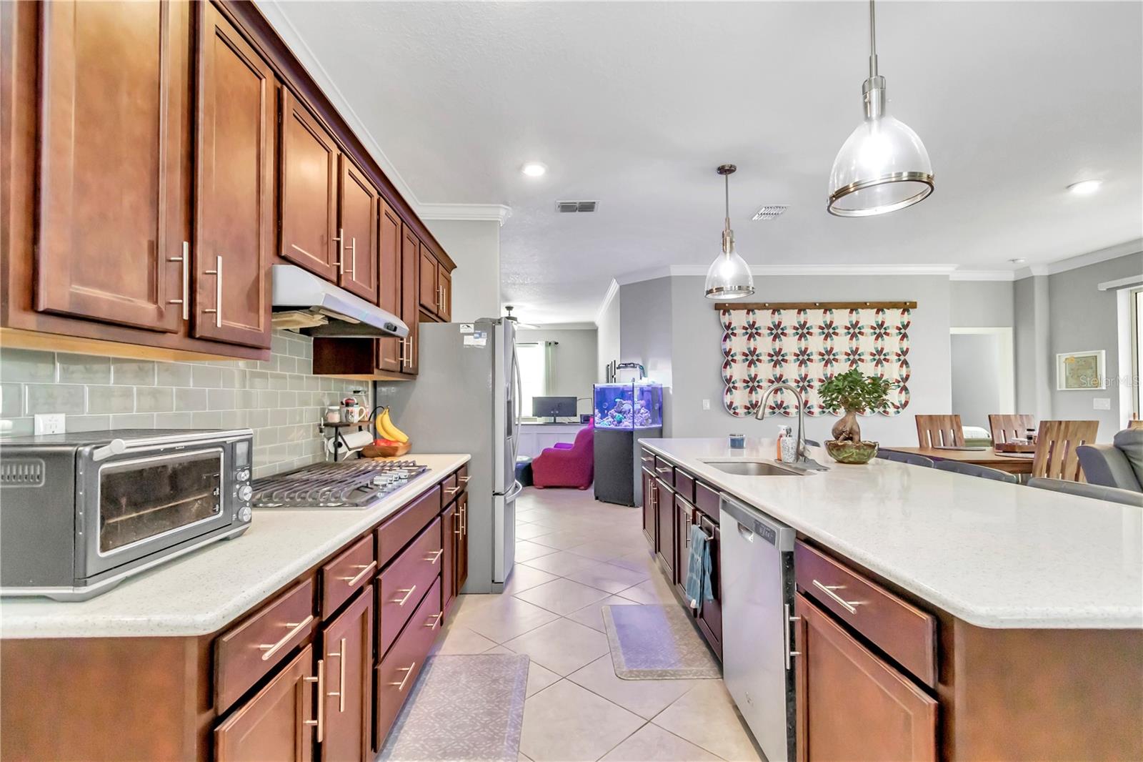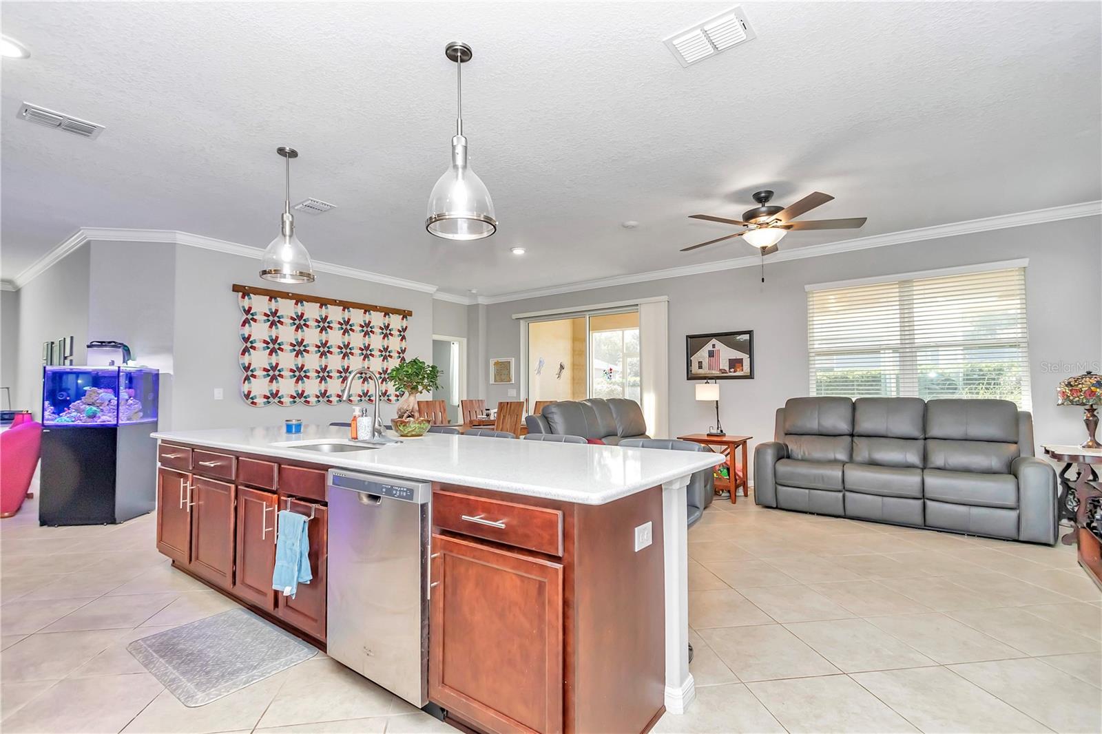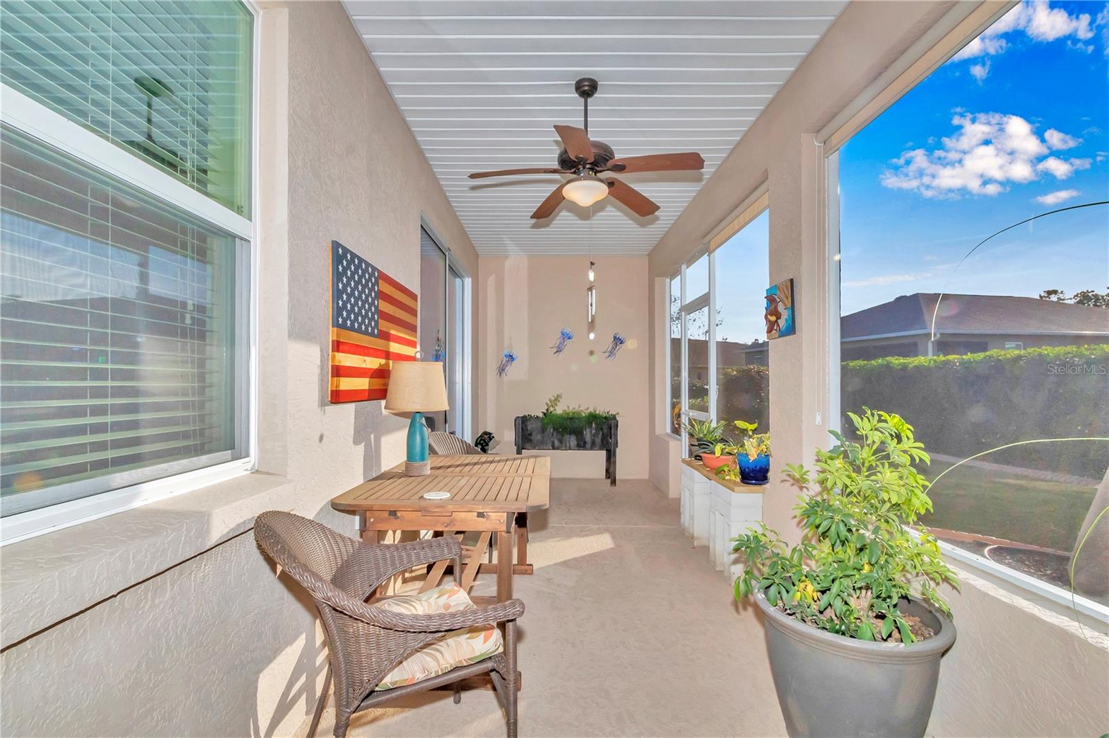 Bem-vindo a este modelo Ginger imaculado no coração do bairro On Top of the World Indigo East. Esta casa possui 2 quartos, 2 banheiros, uma sala flexível, garantia de casa transferível e toneladas de atualizações. Para começar, a cozinha totalmente atualizada apresenta lindos balcões de pedra projetada, armário/forno e micro-ondas montados na parede, fogão a gás de design e muito espaço no balcão. Ambos os banheiros apresentam balcões de pedra atualizados, enquanto o banheiro da suíte dos proprietários também possui um luxuoso box amplo com banco. As atualizações continuam com pisos de cerâmica dispostos diagonalmente que se espalham por toda a casa. A porta de vidro deslizante também possui uma inserção personalizada para maior privacidade. Todo o amaciante de água da casa também é uma vantagem adicional! Do lado de fora, você encontrará atualizações adicionais com o paisagismo em camadas recentemente aprimorado, que eleva toda a sensação da casa antes mesmo de você entrar pela porta da frente. Os tetos altos da garagem possuem armazenamento suspenso convenientemente instalado, juntamente com uma tela elétrica para refrescar a garagem nos dias quentes de verão. Na parte de trás da casa você encontrará uma cerca forrada perfeita para a diversão de seus amigos peludos. Se isso não bastasse, você tem as comodidades de classe mundial de uma das mais de 55 comunidades mais bem avaliadas do país. A fiança também foi paga nesta casa! O acesso a supermercados, lojas, restaurantes e muito mais é fácil, com tantas opções a uma curta viagem de carrinho de golfe. Não perca a chance de tornar este seu feliz para sempre no Indigo East no On Top of the World. Agende uma visita hoje com seu agente imobiliário local de confiança.