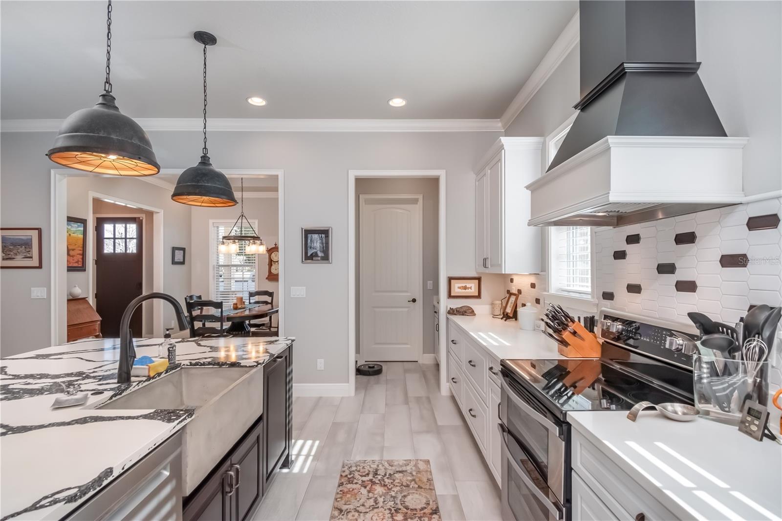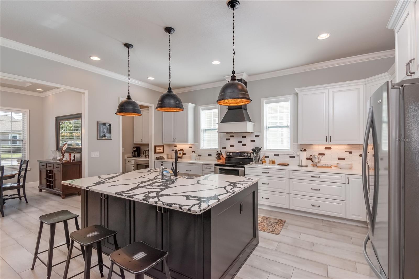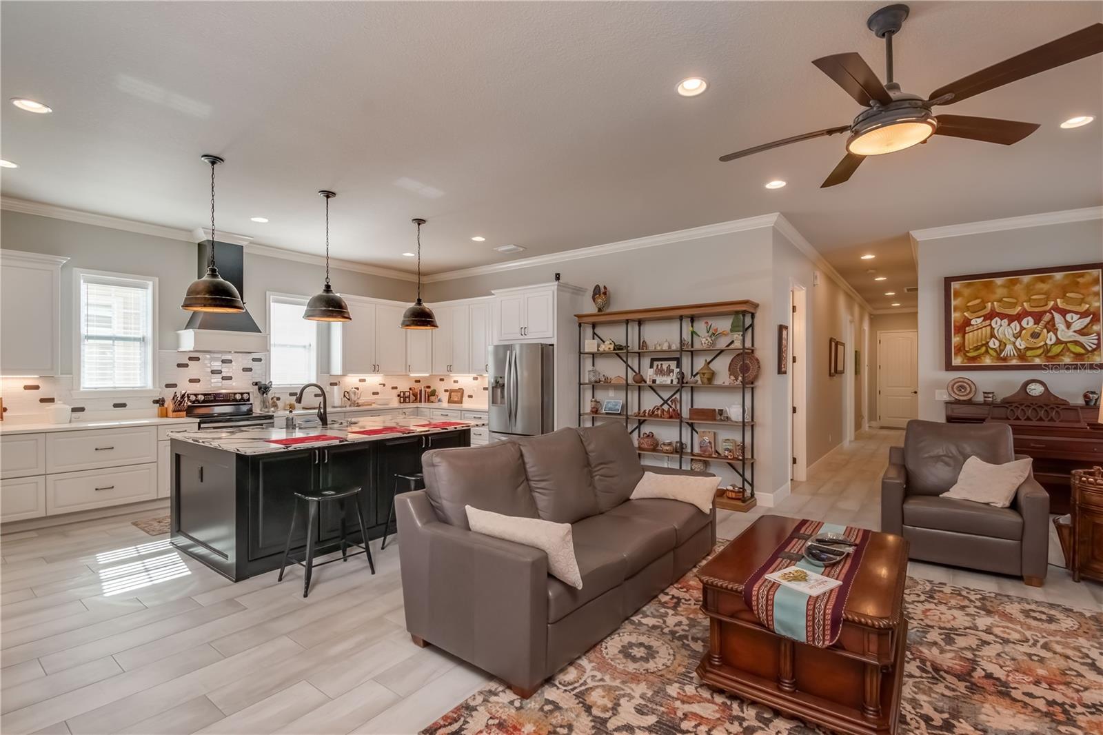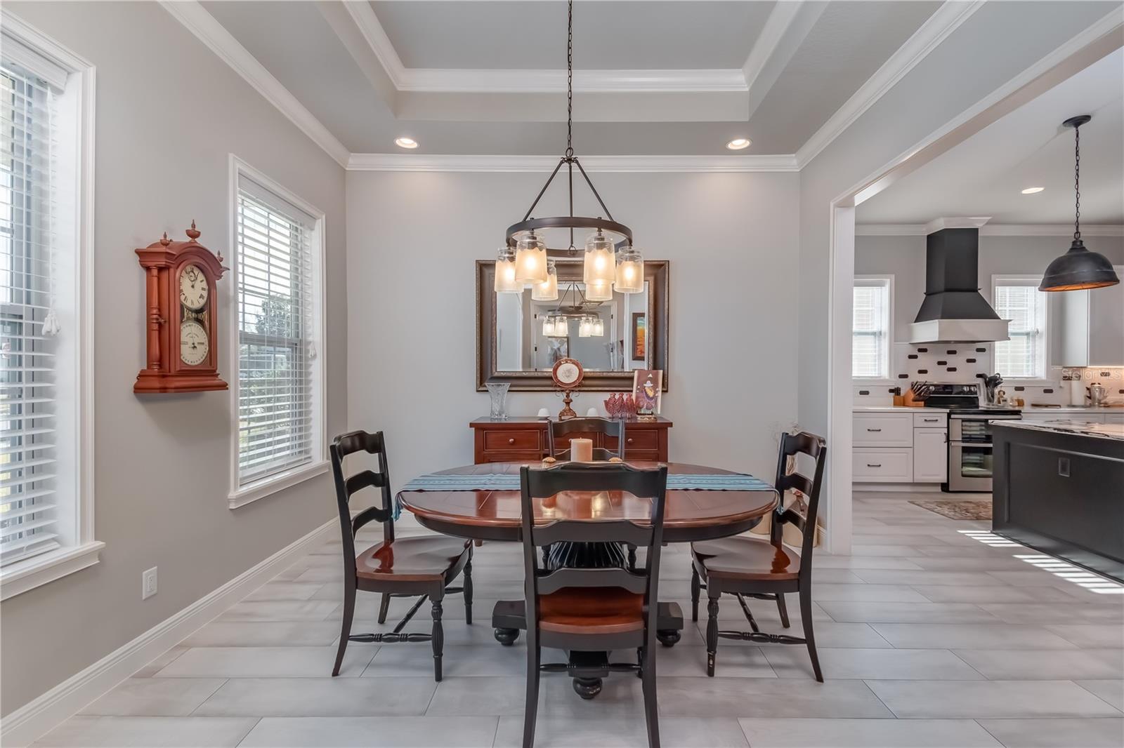 Originalmente construído para o desfile de casas de 2018, este modelo de bétula da Fabian Construction é uma opção atraente cheia de atualizações e acabamentos atenciosos. Situado no bairro tranquilo de Woodfield Crossing, a casa apresenta um apelo abundante de meio-fio graças ao paisagismo profissional, uma aparência moderna e uma convidativa varanda coberta de estilo country com novas pavimentadoras de tijolos. Oferecendo um total de 3 quartos e 2-Full e 1 meia de banho, a casa é leve e brilhante, com pouco mais de 2.400 pés quadrados de espaço. Tetos altos. Moldagem da coroa e luminárias modernas correm por toda a casa, com pisos de ladrilhos presentes na maioria dos espaços, com exceção dos quartos. Um escritório privado fora da entrada oferece muitas oportunidades para quem trabalha em casa ou em potencial de uso como covil, sala de jogos ou qualquer coisa intermediária. A cozinha é um espaço excepcional para quem gosta de gastar tempo cozinhando - totalmente equipado, possui utensílios de aço inoxidável, um exaustor personalizado, armazenamento abundante de gabinete com iluminação de gabinete, bancadas de quartzo, backsplash de azulejos e uma grande ilha central com café . Adjacente à cozinha está uma despensa separada, que inclui um microondas embutido, café e armazenamento adicional. Um teto de bandeja oferece um bom acabamento na sala de jantar formal, enquanto a área de estar oferece muito espaço e acesso direto ao pátio lateral através de um conjunto de portas francesas. Caloroso e convidativo, todos os quartos são atenciosamente espaçosos, embora a suíte primária seja a verdadeira se destacar com um layout maior, closet com sistema de prateleiras e um enorme banheira de suíte com um chuveiro com chuveiros duplos, uma grande banheira de jardim e vanidades duplas. Um local perfeito para desfrutar do sol do centro da Flórida durante todo o ano, o pátio lateral é totalmente coberto e inclui um ventilador de teto, com muito espaço para assentos, uma cozinha de verão embutida e muita privacidade, graças à esgrima de privacidade de vinil. Na parte de trás da casa, está a garagem de 2 carros anexada, que inclui um sistema de armazenamento embutido e é acessível por meio de um beco de uma via de mão única. Convenientemente localizado a poucos minutos do centro de Ocala e do corredor de compras da Rota Estadual 200, esta propriedade fica a menos de 5 km de Publix, vários parques, e é dividida em South Ocala Elementary, Osceola Middle School e Forest High School. A mistura perfeita de vida tranquila e conveniente, essa propriedade tem muito para ver que realmente deve ser experimentada!