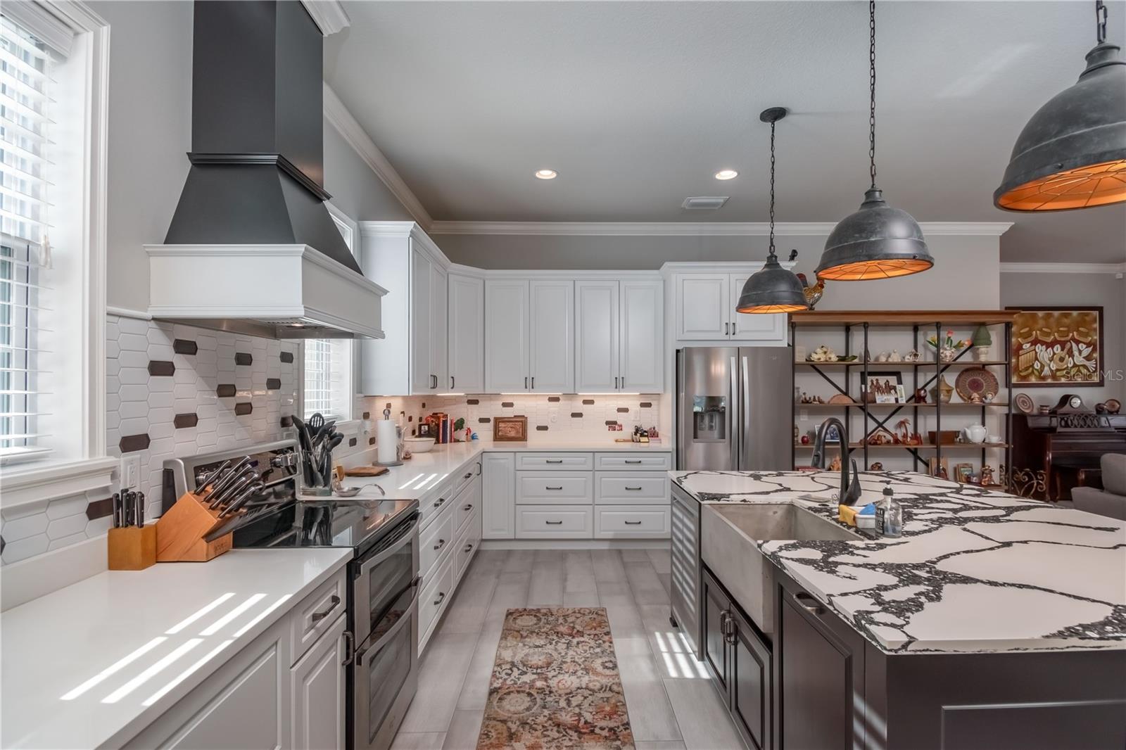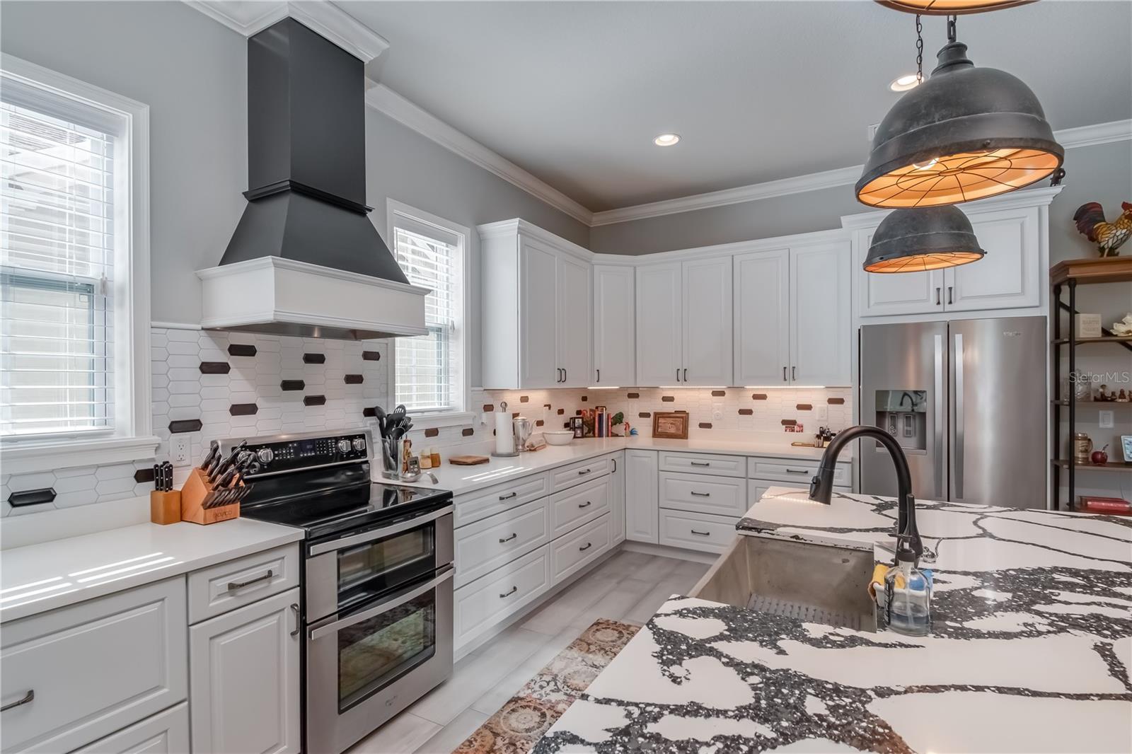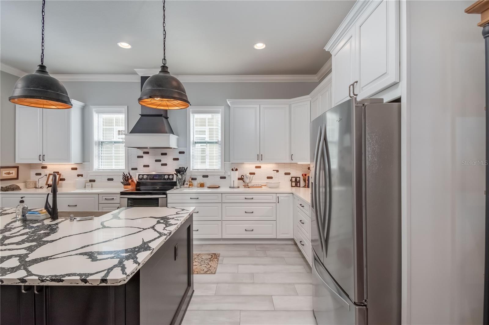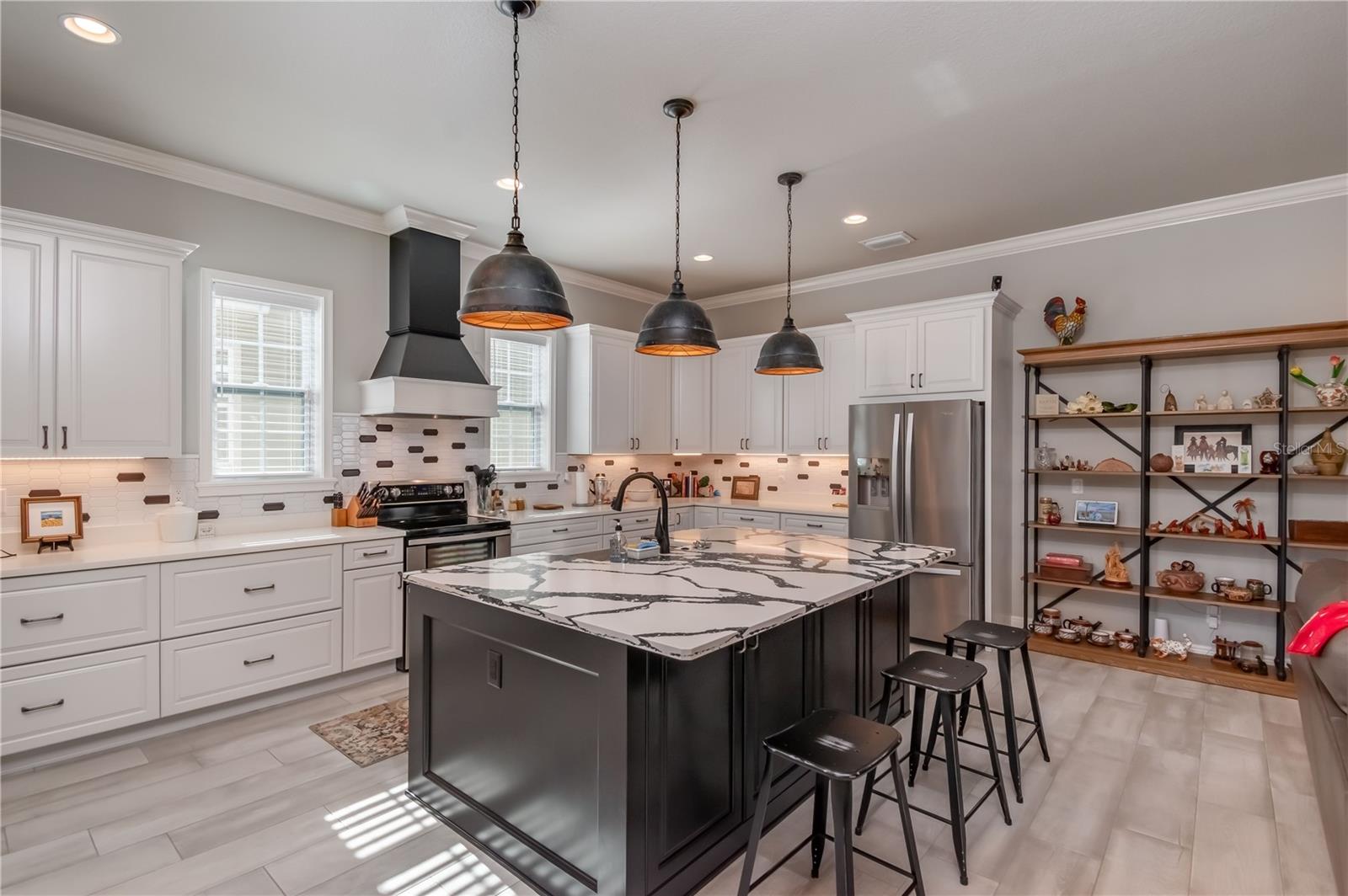 Originalmente construído para o desfile de casas de 2018, este modelo de bétula da Fabian Construction é uma opção atraente cheia de atualizações e acabamentos atenciosos. Situado no bairro tranquilo de Woodfield Crossing, a casa apresenta um apelo abundante de meio-fio graças ao paisagismo profissional, uma aparência moderna e uma convidativa varanda coberta de estilo country com novas pavimentadoras de tijolos. Oferecendo um total de 3 quartos e 2-Full e 1 meia de banho, a casa é leve e brilhante, com pouco mais de 2.400 pés quadrados de espaço. Tetos altos. Moldagem da coroa e luminárias modernas correm por toda a casa, com pisos de ladrilhos presentes na maioria dos espaços, com exceção dos quartos. Um escritório privado fora da entrada oferece muitas oportunidades para quem trabalha em casa ou em potencial de uso como covil, sala de jogos ou qualquer coisa intermediária. A cozinha é um espaço excepcional para quem gosta de gastar tempo cozinhando - totalmente equipado, possui utensílios de aço inoxidável, um exaustor personalizado, armazenamento abundante de gabinete com iluminação de gabinete, bancadas de quartzo, backsplash de azulejos e uma grande ilha central com café . Adjacente à cozinha está uma despensa separada, que inclui um microondas embutido, café e armazenamento adicional. Um teto de bandeja oferece um bom acabamento na sala de jantar formal, enquanto a área de estar oferece muito espaço e acesso direto ao pátio lateral através de um conjunto de portas francesas. Caloroso e convidativo, todos os quartos são atenciosamente espaçosos, embora a suíte primária seja a verdadeira se destacar com um layout maior, closet com sistema de prateleiras e um enorme banheira de suíte com um chuveiro com chuveiros duplos, uma grande banheira de jardim e vanidades duplas. Um local perfeito para desfrutar do sol do centro da Flórida durante todo o ano, o pátio lateral é totalmente coberto e inclui um ventilador de teto, com muito espaço para assentos, uma cozinha de verão embutida e muita privacidade, graças à esgrima de privacidade de vinil. Na parte de trás da casa, está a garagem de 2 carros anexada, que inclui um sistema de armazenamento embutido e é acessível por meio de um beco de uma via de mão única. Convenientemente localizado a poucos minutos do centro de Ocala e do corredor de compras da Rota Estadual 200, esta propriedade fica a menos de 5 km de Publix, vários parques, e é dividida em South Ocala Elementary, Osceola Middle School e Forest High School. A mistura perfeita de vida tranquila e conveniente, essa propriedade tem muito para ver que realmente deve ser experimentada!