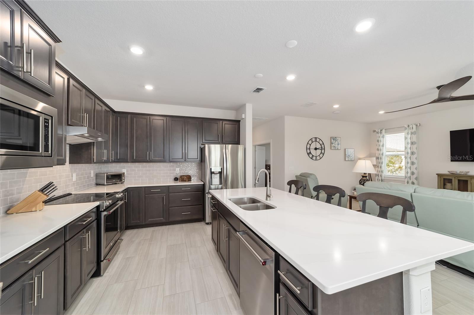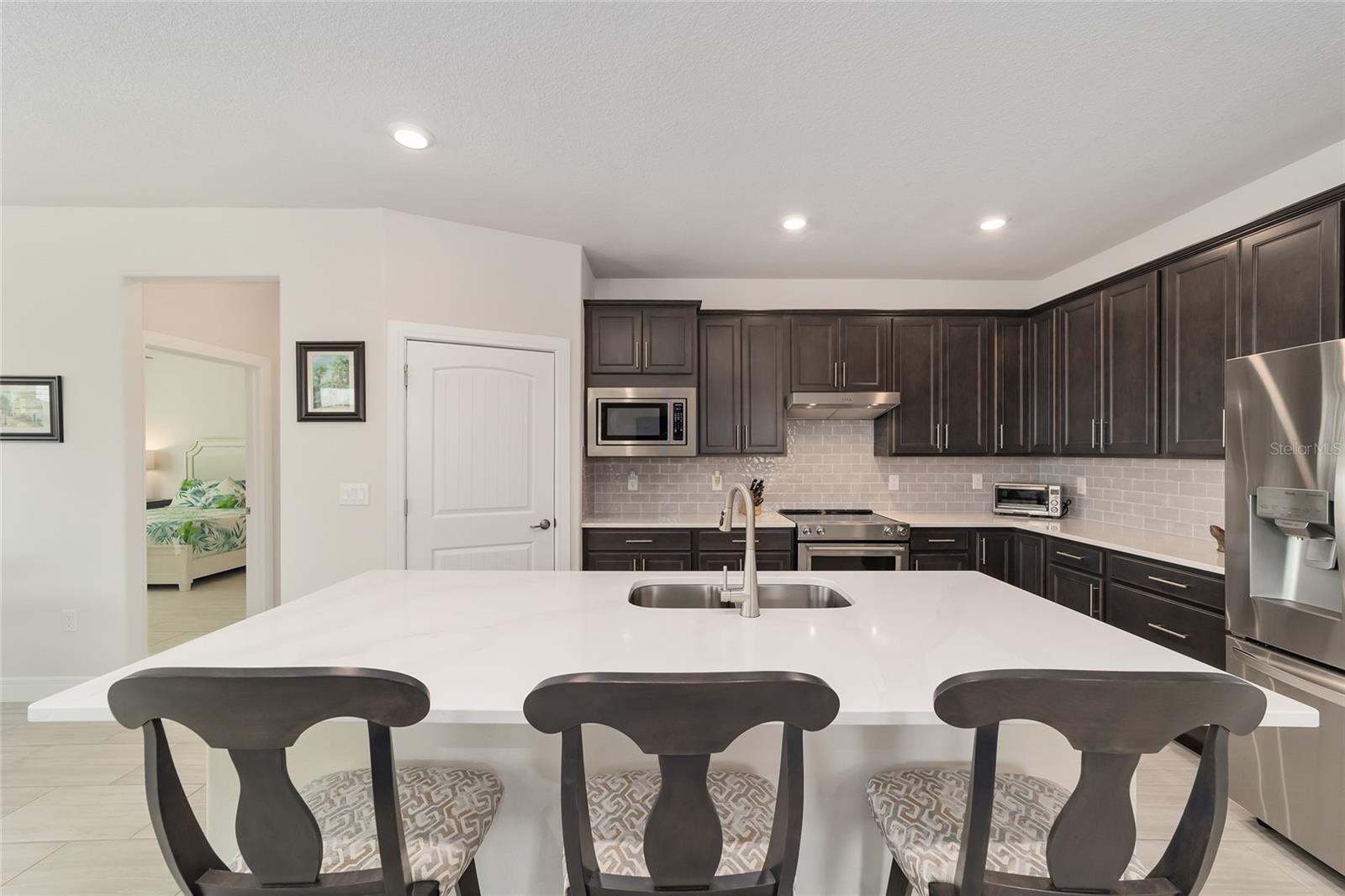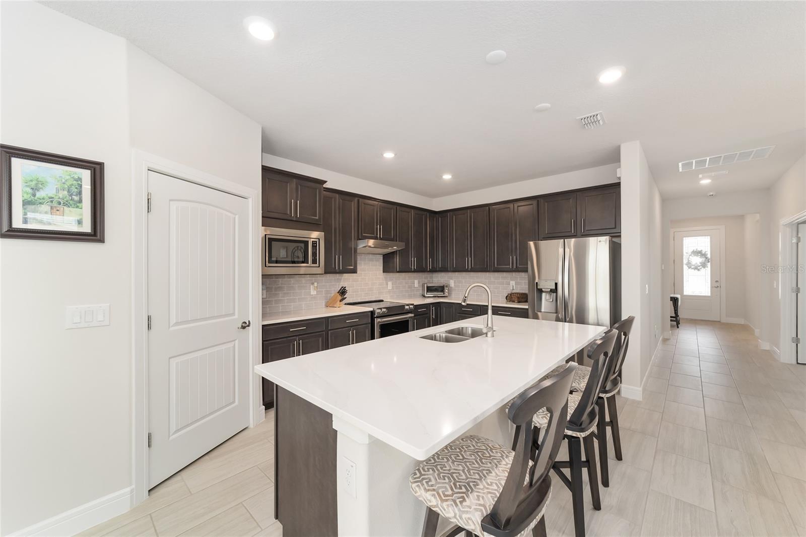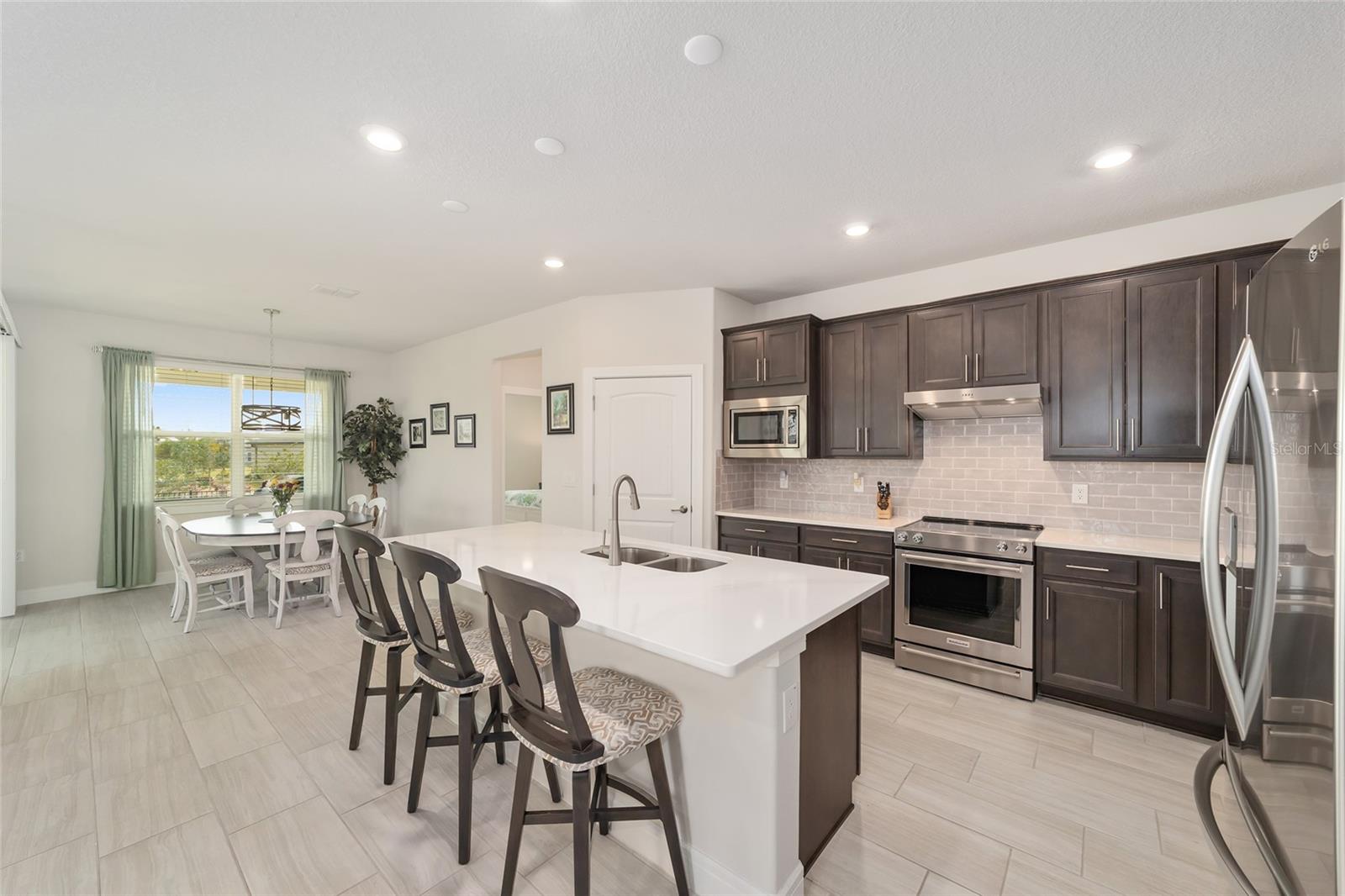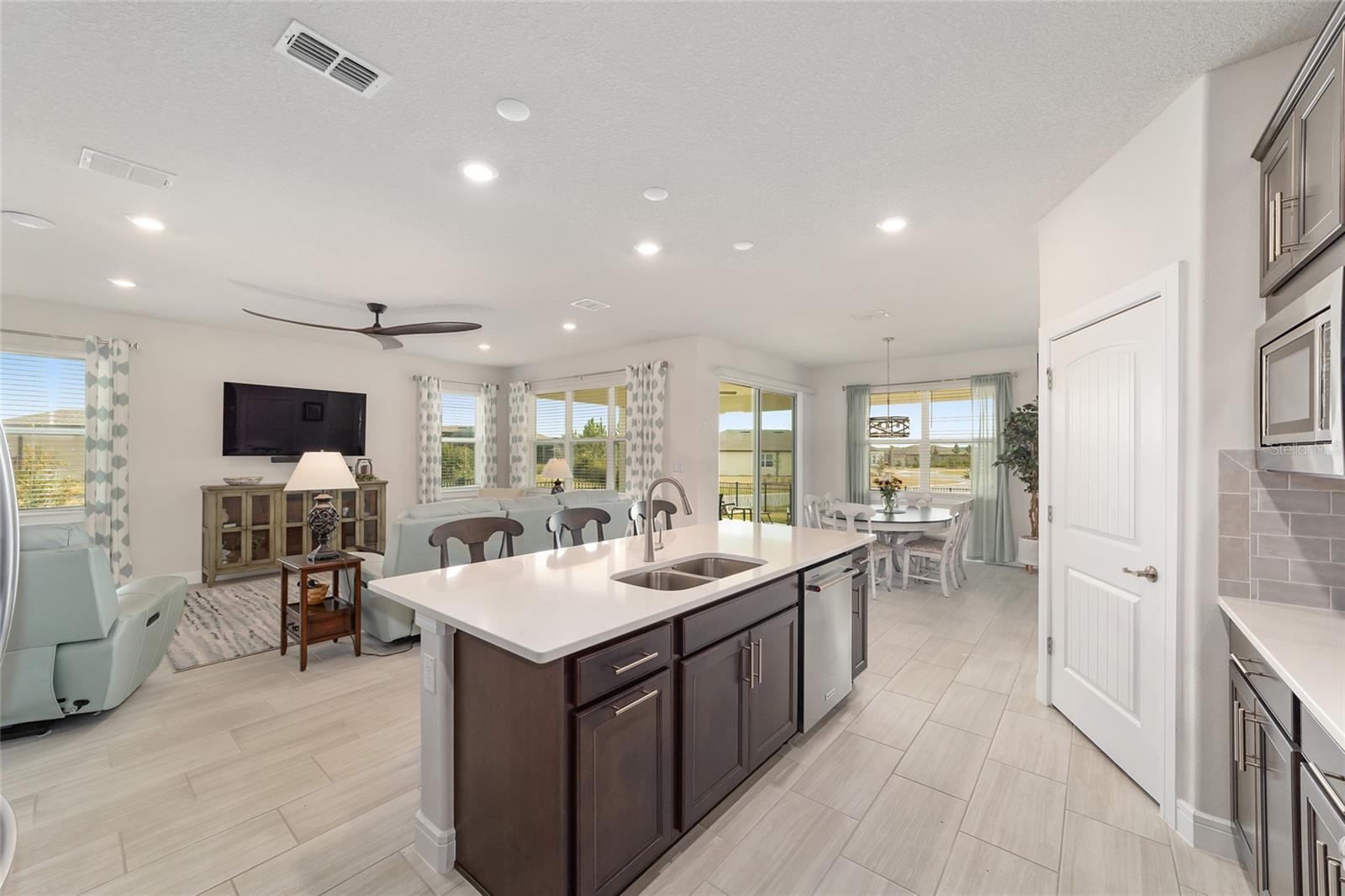 Lindo, como novo, modelo Mystique localizado em um terreno de esquina no condomínio fechado do campo de golfe de Stone Creek, por Del Webb. Esta linda casa possui uma planta aberta, 2 quartos, 2 banheiros, um escritório / sala flexível com portas francesas, garagem estendida, cantos arredondados de drywall, piso de cerâmica retangular atualizado, rodapés de 5 "e persianas de madeira falsa sem fio em toda a casa. A cozinha possui eletrodomésticos KitchenAid de aço inoxidável atualizados, bancadas de quartzo, backsplash de azulejos, armários atualizados com fechamento suave, extensões de dois níveis e armário de canto com base giratória. O banheiro principal tem um chuveiro de azulejos até o teto com azulejos embutidos prateleira e banco. Ambos os banheiros têm vasos sanitários de altura confortável, torneiras e armários atualizados com pia e armários atualizados com janela saliente, porta frontal de vidro, varanda coberta estendida, ferragens e acessórios de níquel escovado, calhas para toda a casa e preparação elétrica de TV de tela plana para varanda, sala de reunião e quarto principal.