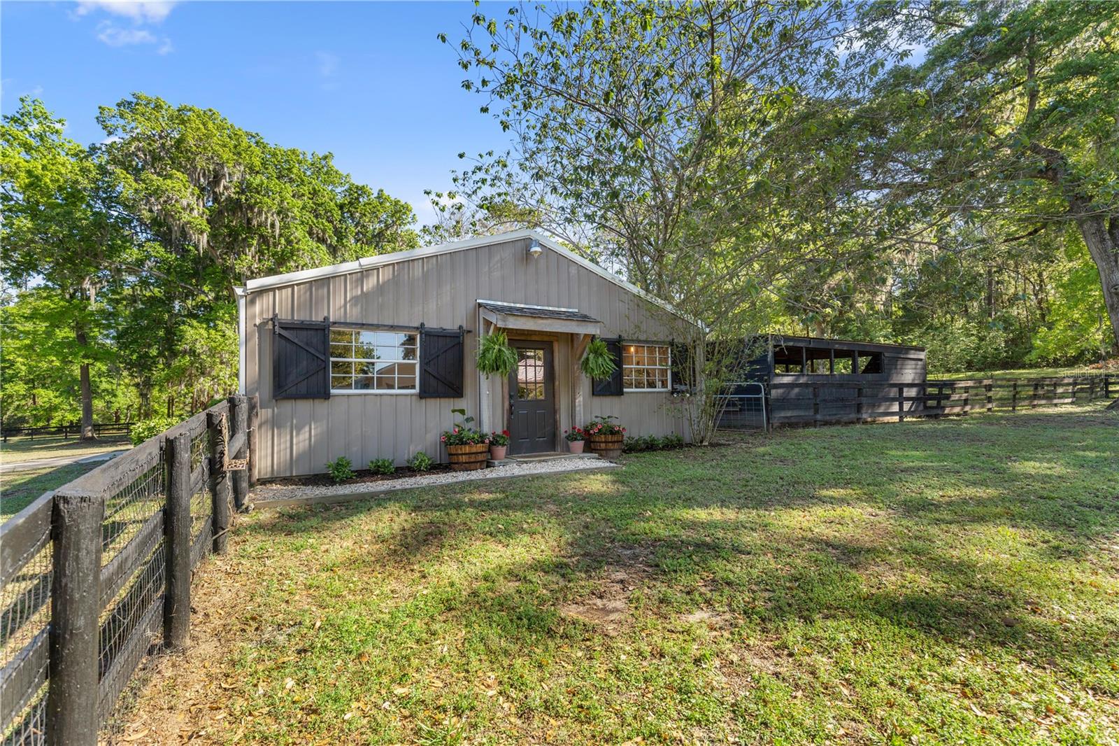 Uma bela mistura de pastagens e copas de madeira, como Live Oaks, White Oaks e Hickory em dois acres, é o lugar perfeito para construir a casa dos seus sonhos e morar no apartamento de um quarto e um banheiro enquanto ela está sendo construída! A área útil tem quase 650 pés quadrados e está equipada com novos armários de cozinha, piso de terracota, closet e persianas deslizantes de madeira personalizadas. O celeiro tem 5 baias e uma garagem espaçosa e ampla. A casa está localizada em um dos corredores mais cobiçados do condado de Marion e perto de quase tudo. Absolutamente perfeito para o equestre que procura uma pequena quinta localizada perto de todos os locais equestres e a poucos minutos do Florida Horse Park e do World Equestrian Center. Esta tem sido uma propriedade de grande geração de renda e tem um histórico de aluguel consistente, gerando receitas sólidas.