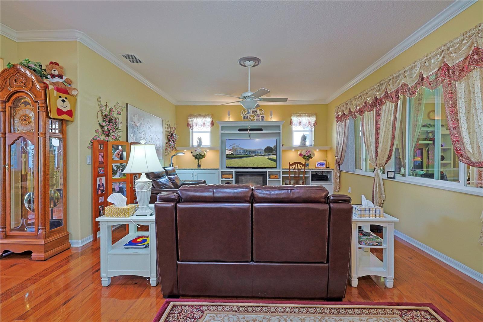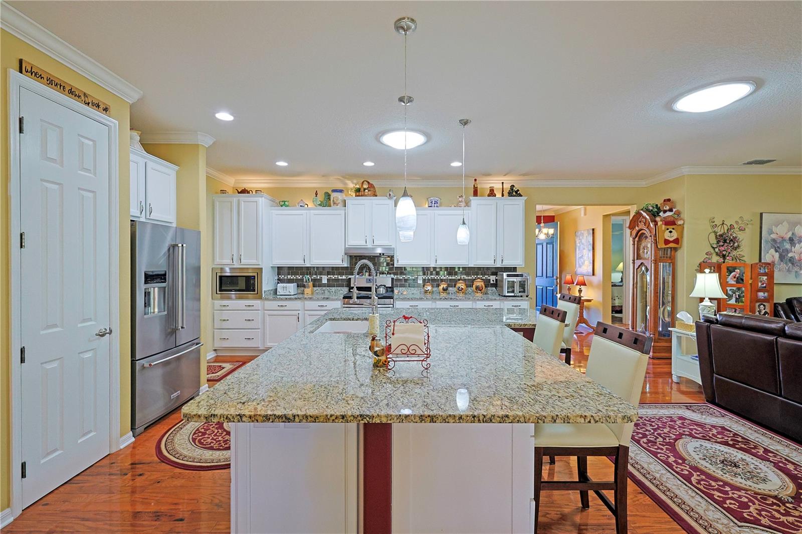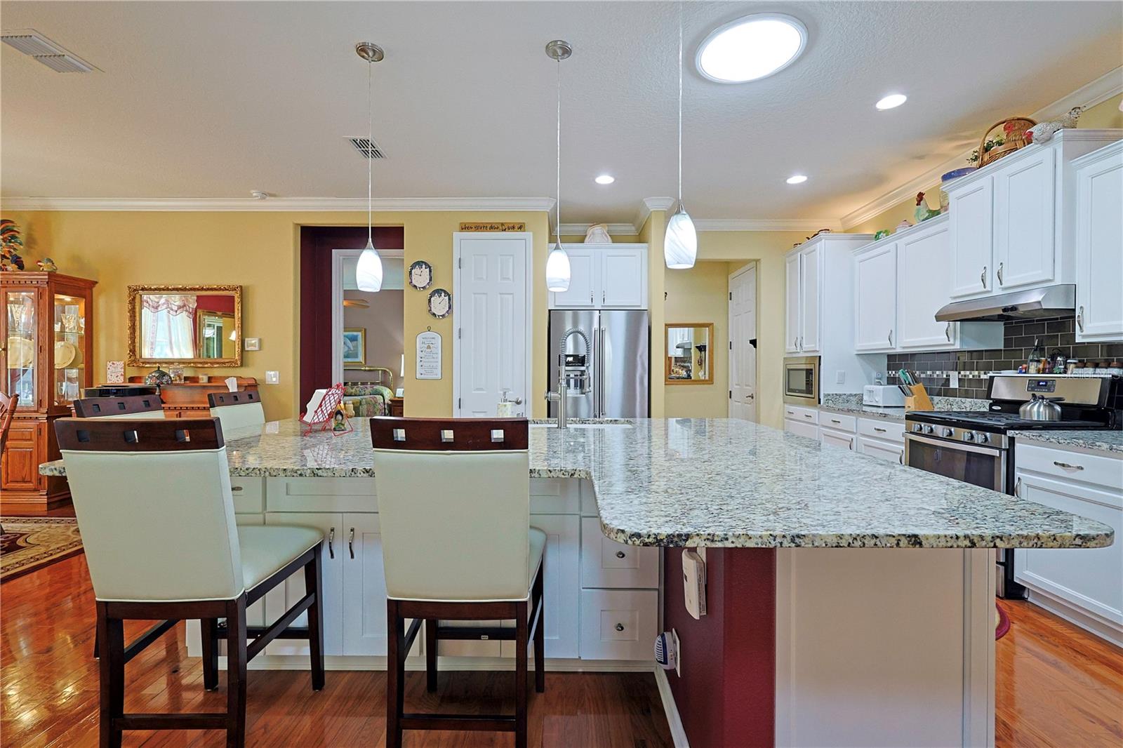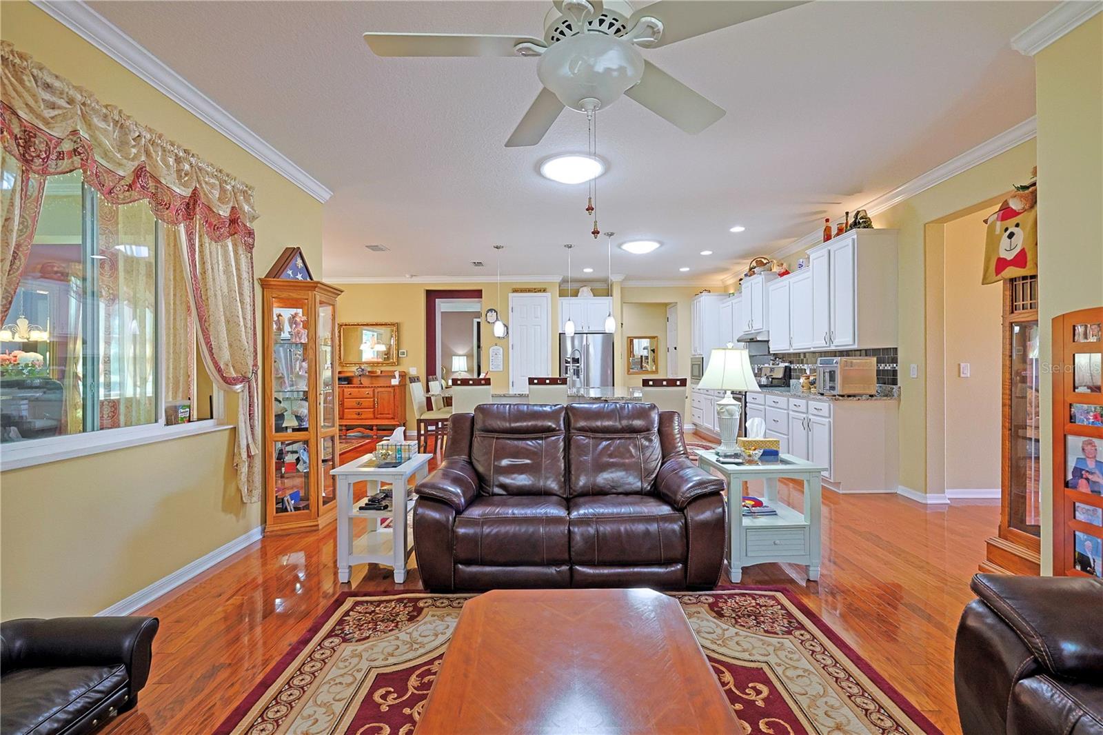 Apenas REDUZIDO e com preço para vender! Esta casa requintada possui uma infinidade de atualizações, superando as novas construções com seus recursos abrangentes. O cuidado dispensado a esta residência é evidente à primeira vista. Situado na área renascentista da comunidade adulta ativa On Top of the World, o modelo da Berkshire exala charme. Sua fachada apresenta uma entrada elegante, pedras empilhadas adornadas com casa, uma tela de garagem automatizada e paisagismo bem estabelecido. A varanda frontal de azulejos oferece um local tranquilo para receber amigos. No interior, os impressionantes pisos de madeira projetada abrangem os principais espaços de convivência. Uma sala versátil à direita serve idealmente como escritório, escritório ou lounge formal. A cozinha é um paraíso para os entusiastas da culinária, com sua ampla ilha de granito, armários amplos e atraentes e bancadas, complementadas por eletrodomésticos de aço inoxidável de alta qualidade, incluindo fogão a gás e micro-ondas de parede. Detalhes como luzes pendentes, backsplash de azulejos e uma pia composta aumentam o fascínio, junto com molduras de coroa de bom gosto. O arranjo em plano aberto se estende até a área de estar, com armários personalizados, balcões de granito e um recanto aconchegante com vista para o quintal. Os quartos e espaços adicionais possuem piso de cerâmica com aparência de madeira, evitando totalmente o carpete. O quarto principal, espaçoso o suficiente para uma cama king-size, inclui um impressionante closet com tubo solar, pia dupla em granito, box amplo, vaso sanitário de altura confortável e bidê. Uma sala fechada na Flórida oferece um espaço versátil para trabalho ou lazer, enquanto a sala com tela, completa com pavimentação e instalação elétrica para banheira de hidromassagem, convida ao relaxamento. O quintal cercado recebe animais de estimação e oferece um local amigável para cumprimentar os vizinhos que passam. A casa inclui uma lavanderia interna com armários e balcões de granito, um quarto de hóspedes de tamanho confortável e um banheiro de hóspedes com combinação de banheira e chuveiro. A garagem dispõe de piso acabado, ampla arrumação e espaço adicional para carrinho de golfe. Destacam-se o gerador para toda a casa e o amaciador de água. Uma lista detalhada de upgrades está disponível na seção de fotos, com preços fornecidos mediante solicitação.
