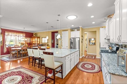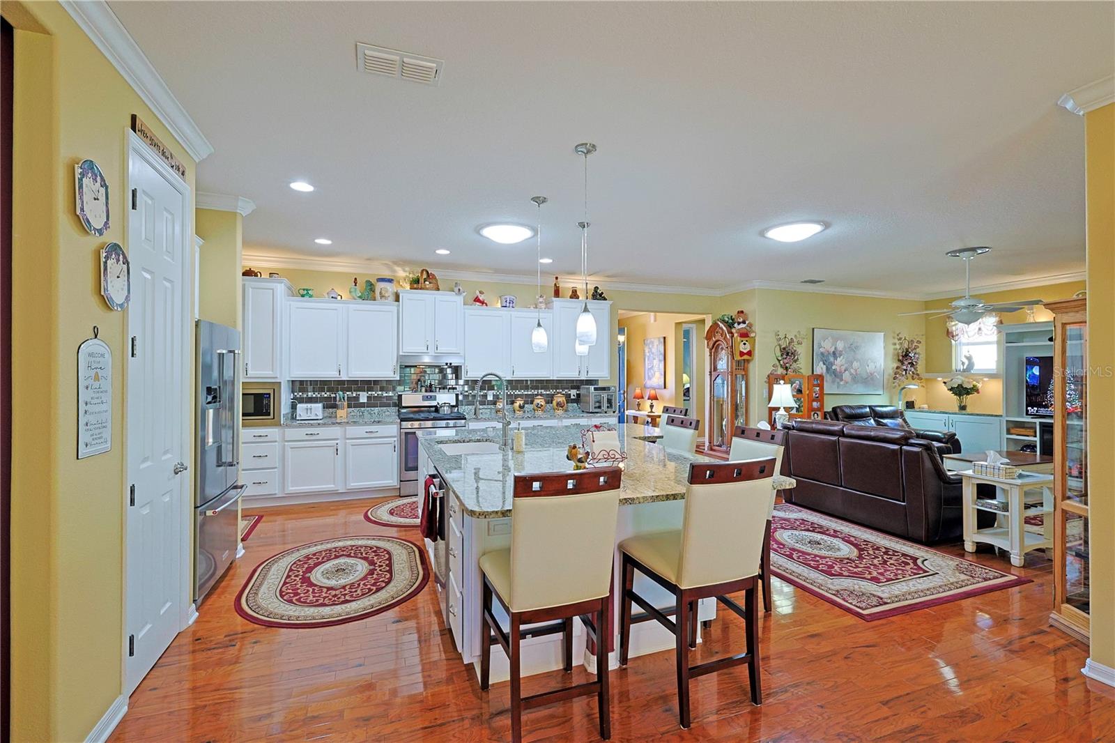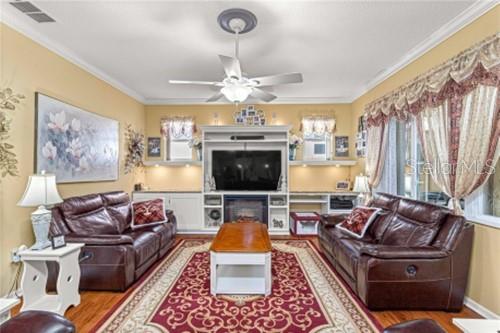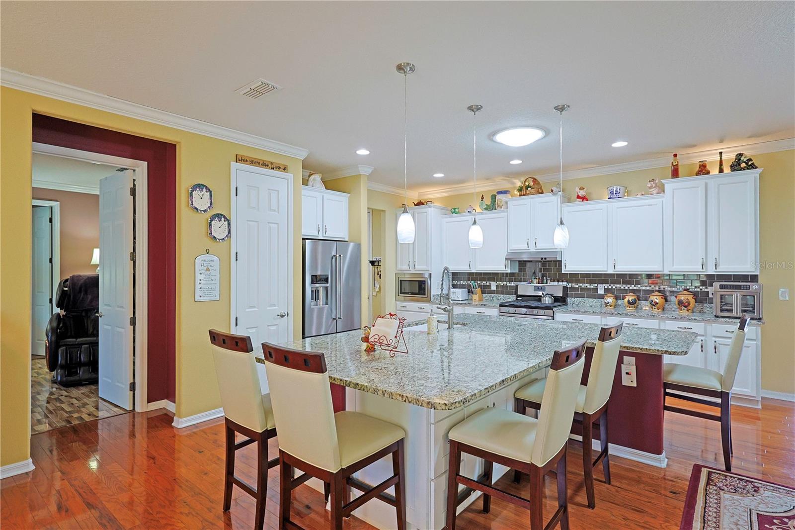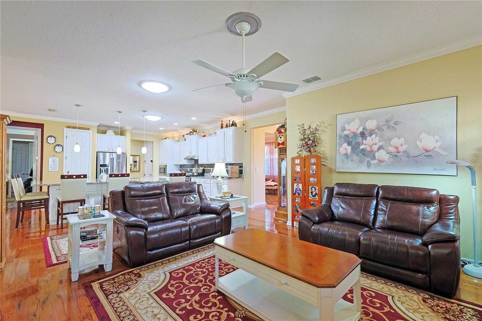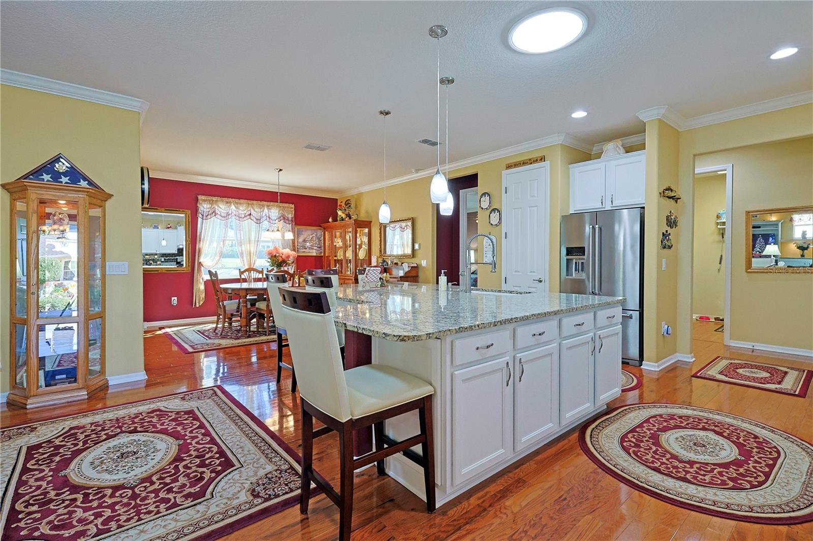 Apenas REDUZIDO e com preço para vender! Esta casa requintada possui uma infinidade de atualizações, superando as novas construções com seus recursos abrangentes. O cuidado dispensado a esta residência é evidente à primeira vista. Situado na área renascentista da comunidade adulta ativa On Top of the World, o modelo da Berkshire exala charme. Sua fachada apresenta uma entrada elegante, pedras empilhadas adornadas com casa, uma tela de garagem automatizada e paisagismo bem estabelecido. A varanda frontal de azulejos oferece um local tranquilo para receber amigos. No interior, os impressionantes pisos de madeira projetada abrangem os principais espaços de convivência. Uma sala versátil à direita serve idealmente como escritório, escritório ou lounge formal. A cozinha é um paraíso para os entusiastas da culinária, com sua ampla ilha de granito, armários amplos e atraentes e bancadas, complementadas por eletrodomésticos de aço inoxidável de alta qualidade, incluindo fogão a gás e micro-ondas de parede. Detalhes como luzes pendentes, backsplash de azulejos e uma pia composta aumentam o fascínio, junto com molduras de coroa de bom gosto. O arranjo em plano aberto se estende até a área de estar, com armários personalizados, balcões de granito e um recanto aconchegante com vista para o quintal. Os quartos e espaços adicionais possuem piso de cerâmica com aparência de madeira, evitando totalmente o carpete. O quarto principal, espaçoso o suficiente para uma cama king-size, inclui um impressionante closet com tubo solar, pia dupla em granito, box amplo, vaso sanitário de altura confortável e bidê. Uma sala fechada na Flórida oferece um espaço versátil para trabalho ou lazer, enquanto a sala com tela, completa com pavimentação e instalação elétrica para banheira de hidromassagem, convida ao relaxamento. O quintal cercado recebe animais de estimação e oferece um local amigável para cumprimentar os vizinhos que passam. A casa inclui uma lavanderia interna com armários e balcões de granito, um quarto de hóspedes de tamanho confortável e um banheiro de hóspedes com combinação de banheira e chuveiro. A garagem dispõe de piso acabado, ampla arrumação e espaço adicional para carrinho de golfe. Destacam-se o gerador para toda a casa e o amaciador de água. Uma lista detalhada de upgrades está disponível na seção de fotos, com preços fornecidos mediante solicitação.