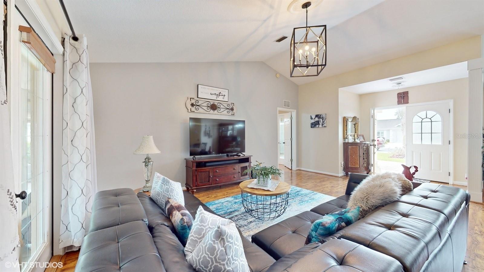 Agende sua exibição para esta linda casa de 3 quartos e 2 banheiros com mais de 1.750 pés quadrados em Ocala Palms! O condomínio oferece club house, campo de golfe de 18 buracos, academia de ginástica de última geração, espaçosa piscina externa com jacuzzi, piscina interna aquecida, quadra de tênis/pickle-ball, quadra de vôlei e muitas quadras de shuffleboard. Esta propriedade passou por inúmeras reformas feitas nos últimos anos, começando com uma passarela recém-pavimentada que leva à entrada da casa com sistema de sprinklers 2022 funcionando em toda a propriedade. A propriedade vem com uma máquina de lavar e secar roupa na sua própria lavandaria, bem como um lavatório que dá acesso à garagem que tem abertura de garagem e uma porta lateral recentemente instalada que dá acesso ao exterior da propriedade. O interior tem piso laminado em toda a casa, sendo o azulejo na cozinha a única exceção. A cozinha vem com todos os eletrodomésticos necessários para 2021, bancadas de granito, backsplash de azulejos e claraboia logo acima do centro. O banheiro de hóspedes é facilmente acessível e vem com novo exaustor. Lustres localizados na área de estar transmitem a propriedade. A varanda coberta de vidro da varanda dos fundos tem novo piso LVP com unidade de janela instalada para um bom condicionamento, bem como ventiladores de teto instalados. A Lanai também vem com geladeira, fogão e exaustor que pode ser usado como segunda cozinha da casa. O quarto principal tem portas francesas que podem ser acessadas pela Lanai, closets, pias duplas, banheira e box amplo.