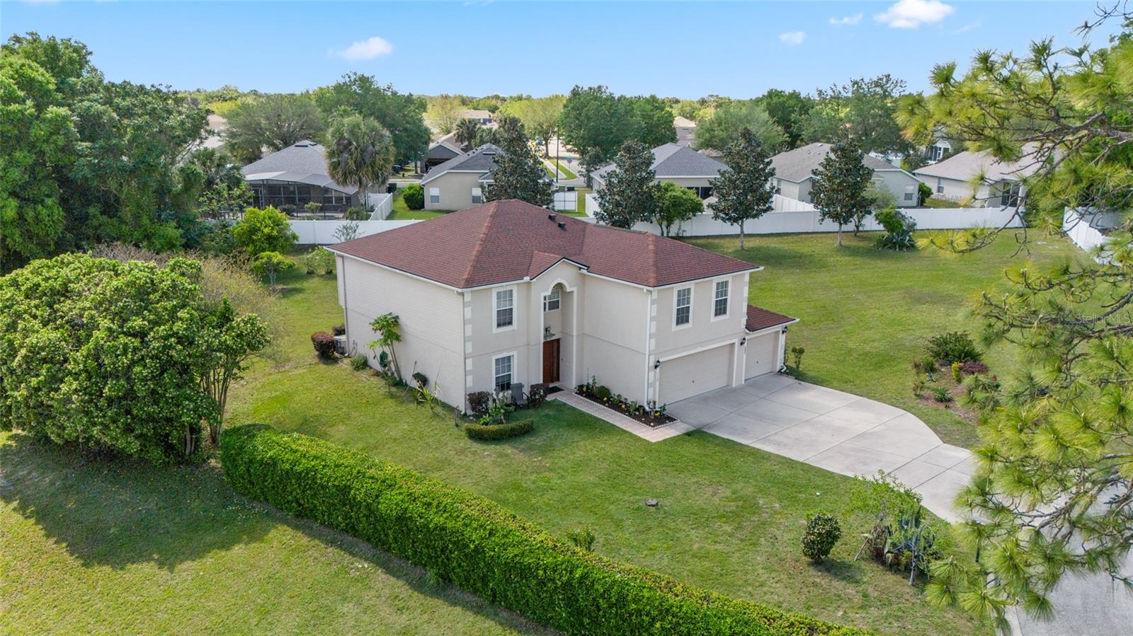 BEM-VINDO A CASA a este 4 quartos, 2 banheiros completos, 2 (meios) banheiros com garagem para 2 carros e garagem para carrinhos de golfe em quase 1/2 acre em uma rua sem saída. Ao entrar na casa, você é recebido por uma sala de jantar à esquerda e uma segunda sala familiar à direita. Continuando no piso principal entra-se na Cozinha com bancada em granito, 2 pias, 2 armários de despensa e armários em tons claros. Cozinha abre para comer no recanto e sala com piso em madeira mogno. A sala tem acesso a uma grande varanda com vista para o quintal. No térreo você também tem a lavanderia e um lavabo. No piso superior tem um sótão que poderá ser utilizado como escritório e fica ao lado do Quarto Principal. O quarto principal é espaçoso e se abre para o banheiro principal com banheira e chuveiro. Do outro lado do andar estão os quartos 1 e 2 com banheiro entre eles. O quarto 3 tem um lavabo anexo de 1/2. A casa possui sistema de aspiração central para facilitar a limpeza. O quintal é tranquilo e privado. A casa está convenientemente localizada no corredor Hwy 200 para compras, instalações médicas e entretenimento.