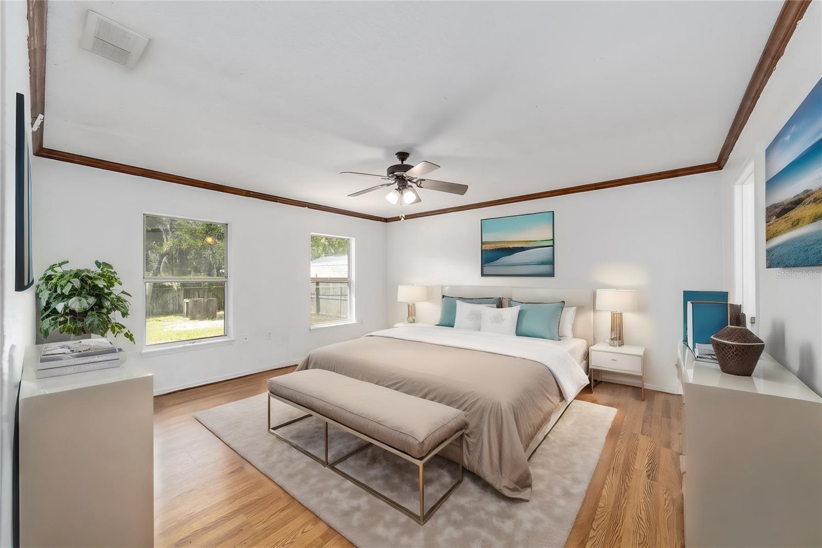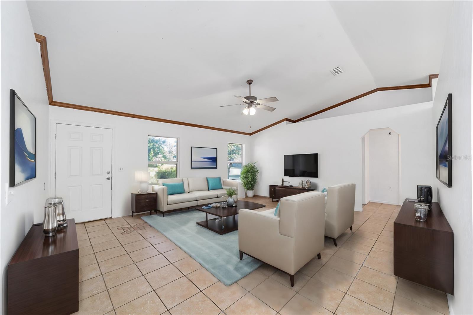 Uma ou mais fotos foram virtualmente encenadas. Planta dividida de três quartos, dois banheiros, com piso de cerâmica e laminado, além de sancas por toda parte. Esta casa oferece um quarto principal de bom tamanho com closet e banheiro privativo. A lavanderia interna leva à garagem que foi fechada para uma metragem quadrada extra e pode ser usada como sala de jogos ou caverna! Você vai adorar a metragem quadrada adicional ou pode transformá-la novamente em uma garagem. Quintal cercado em terreno de esquina. Telhado substituído em 2021.