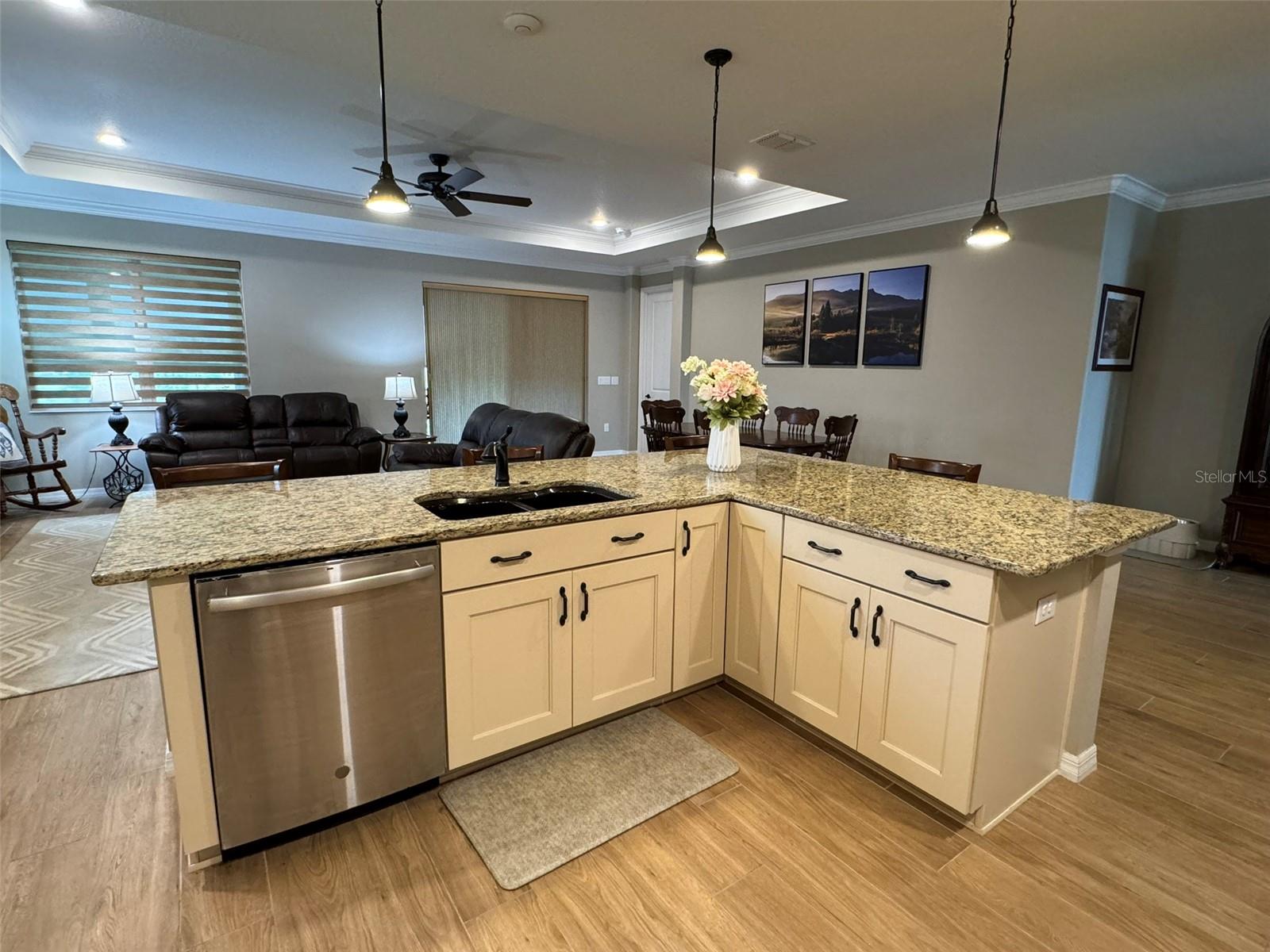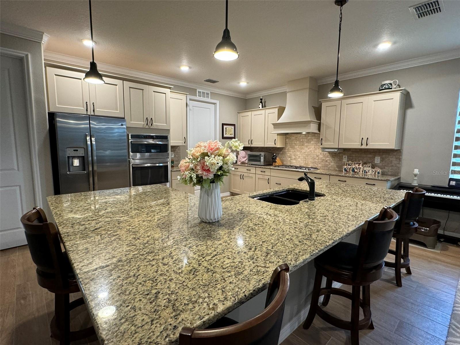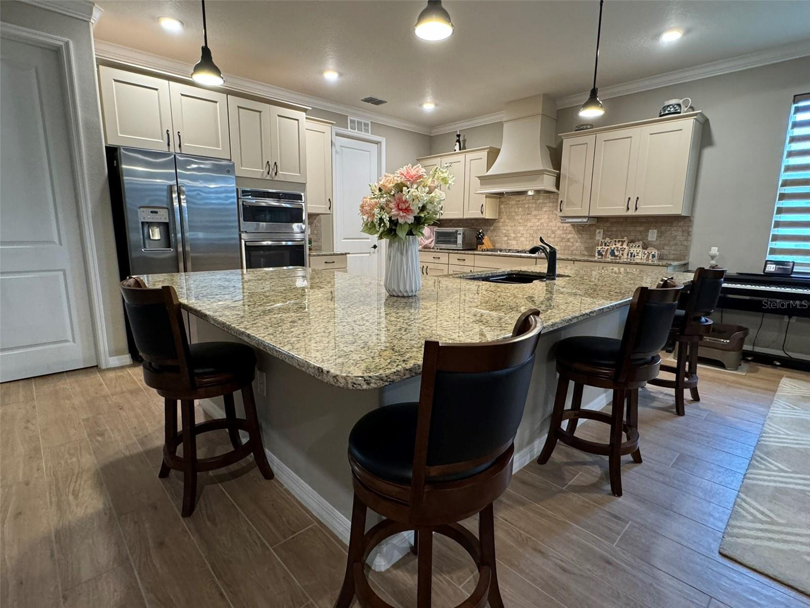 Casa deslumbrante dentro de Avalon OTOW! Na chegada, você será recebido por um paisagismo lindamente pensado e uma calçada bem conservada que se estende até a varanda coberta da frente. Esta casa possui 3 quartos, 2 banheiros, garagem para 2 carros, uma planta aberta convidativa e um amplo terreno. A cozinha é uma delícia para o chef, apresentando uma grande ilha em forma de L com espaço para bancos de bar, bancadas de granito, eletrodomésticos de aço inox, forno embutido e fogão a gás com um lindo exaustor para combinar com os armários. A sala de estar aberta possui sancas, tetos em forma de bandeja e entrada para a varanda fechada. Na parte traseira da casa encontra-se uma espaçosa suíte master com dois closets, uma suíte com chuveiro de azulejos de entrada zero com divisória de vidro, pia dupla e armário de linho para amplo armazenamento. 2 quartos de hóspedes grandes e um banheiro de hóspedes com uma penteadeira grande. A lavanderia é equipada com estantes, armários e lavatório. Os recursos de casa inteligente agregam conveniência e modernidade ao seu estilo de vida.