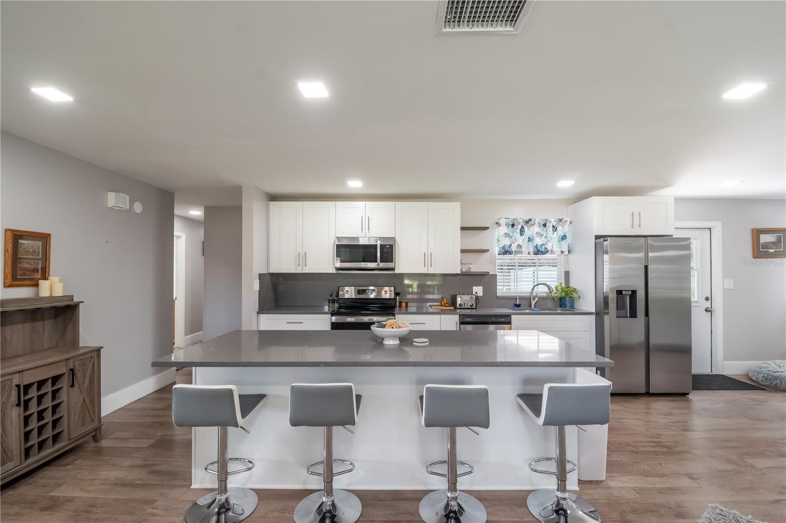 Bem-vindo ao lar! Este oásis tropical possui uma sala de estar, jantar, cozinha, sala de bônus, 2 banheiros e 4 quartos de grandes dimensões, ao mesmo tempo que oferece uma localização central no centro de Ocala. O bairro tem um lindo lago/parque com tartarugas e patos nadando para sua diversão e sem HOA. Após sua caminhada no parque, refresque-se em sua piscina enorme. Lindamente remodelado com piso LVP por toda parte, lindas bancadas de quartzo, novos eletrodomésticos fabulosos, telhado 2022, HVAC de 5 toneladas 2022, aquecedor de água sem tanque 2022, esta propriedade está pronta para você torná-la sua. Da decoração imaculada ao fantástico recapeamento do deck da piscina, você deve conhecer esta casa. Ótimas opções escolares. Não espere, as ofertas certamente aparecerão.