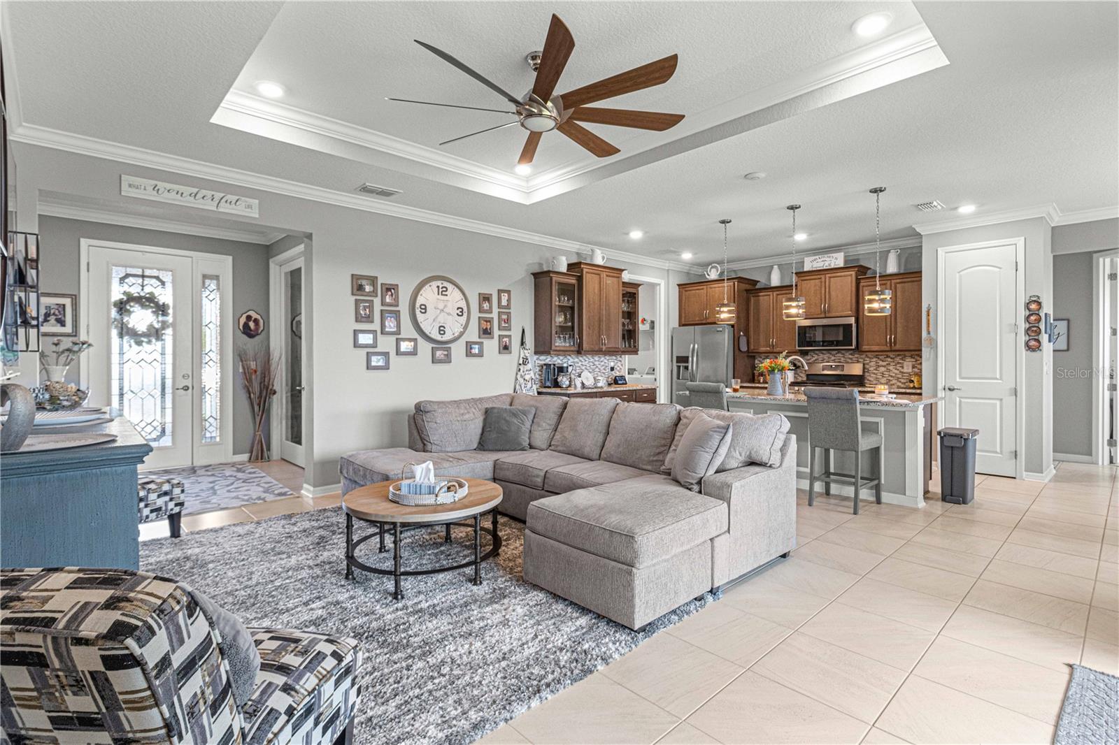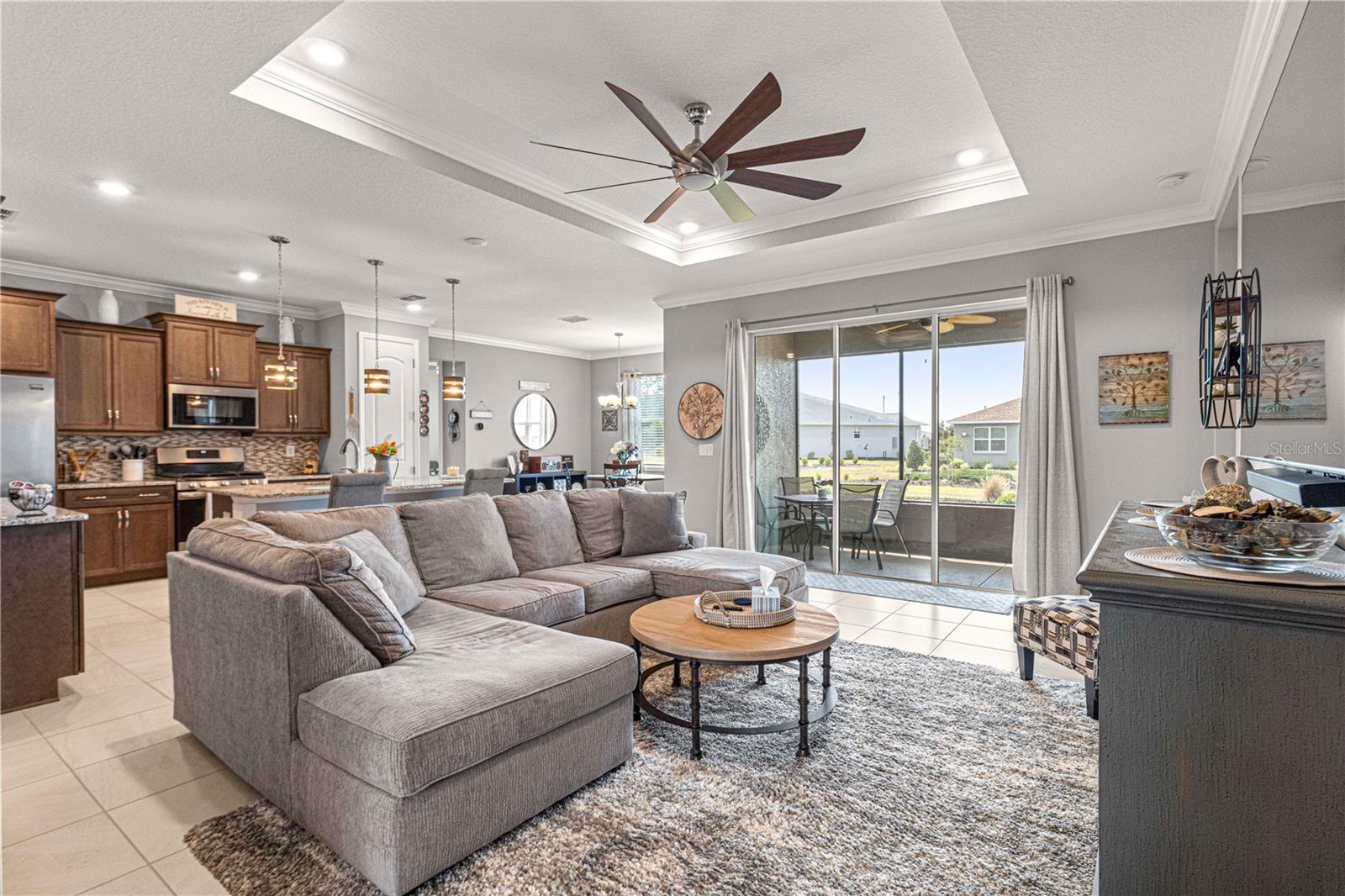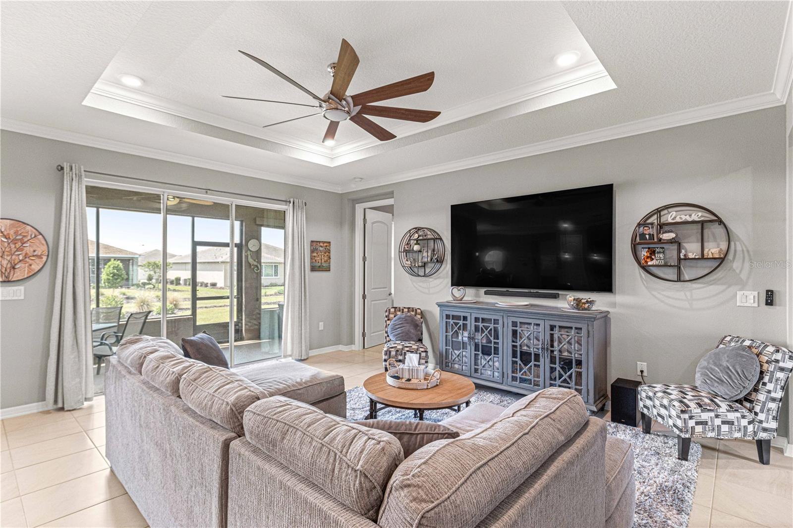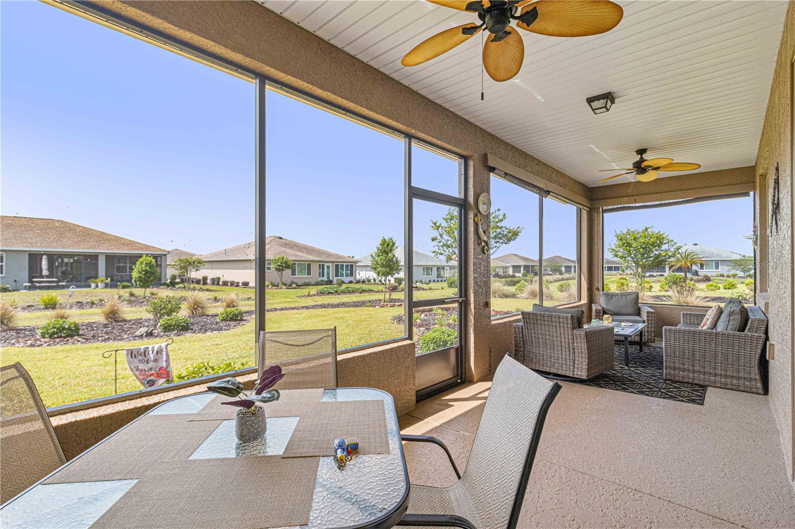 Ótima casa modelo Livingston de 2 quartos e 2 banheiros com mais de 75 mil em atualizações em Avalon 7 no topo do mundo. Esta casa tem a planta de quarto dividido com um quarto flexível adicional com portas francesas. Belos tetos altos com teto em caixotões e lindo ventilador de teto grande na sala de estar. Pisos de cerâmica em toda parte, exceto os quartos têm carpete. Bela sala de estar aberta com excelentes vistas para o quintal. Cozinha luminosa com bancadas em granito e eletrodomésticos em aço inoxidável e despensa. Área de jantar fora da cozinha. Grande quarto principal com parede de designer personalizado e grande closet. Master Bath é o melhor com pias duplas com bancada de granito, azulejo e chuveiro enorme com barras de apoio e armário de linho. Quarto de hóspedes agradável e com excelente vista para o quintal. Banheiro de hóspedes também tem bancada de azulejo e pia de granito. Lavanderia tem gás ou eletricidade para secadora com banheira. A Lanai tem quase 27 pés de comprimento na parte de trás da casa, sob um telhado regular, com telas para sentar e apreciar o lindo quintal. Esta casa tem uma garagem grande com espaço para 2 carros, carrinho de golfe e muito mais com piso com acabamento em epóxi. Ventiladores de teto em todos os quartos, além de um amaciante de água. Casa inteligente. Esta casa está como nova e imperdível. As mensalidades incluem vigilância 24 horas por dia, 7 dias por semana em todos os 3 portões, manutenção externa do pátio, lixo, Internet básica, além de acesso às 3 piscinas (uma interna aquecida), 2 academias de ginástica, tênis, pickle ball, restaurante, softball, tiro com arco, bilhar, Bocha, Golfe, Parque dos Veteranos, Parque para Cachorros, RC Fly Field com Drone Field e RC Car Track. Esta é uma comunidade de carrinhos de golfe com acesso também a centros comerciais. Muito mais, muito para listar, ótimo lugar para morar e aproveitar a vida na Flórida.