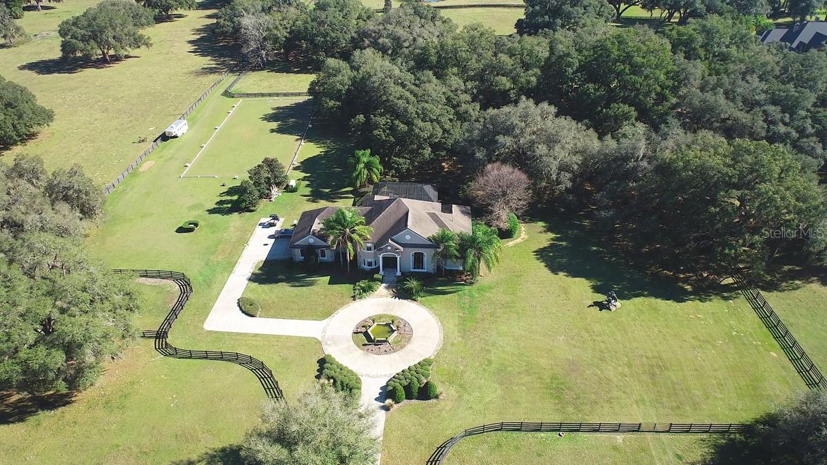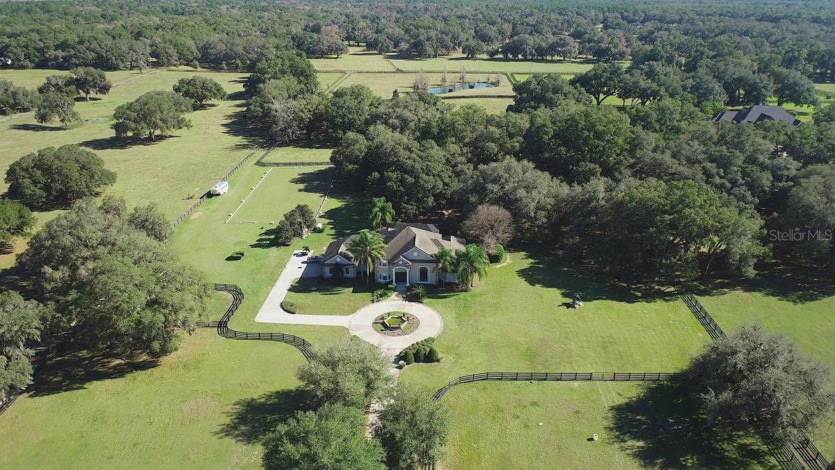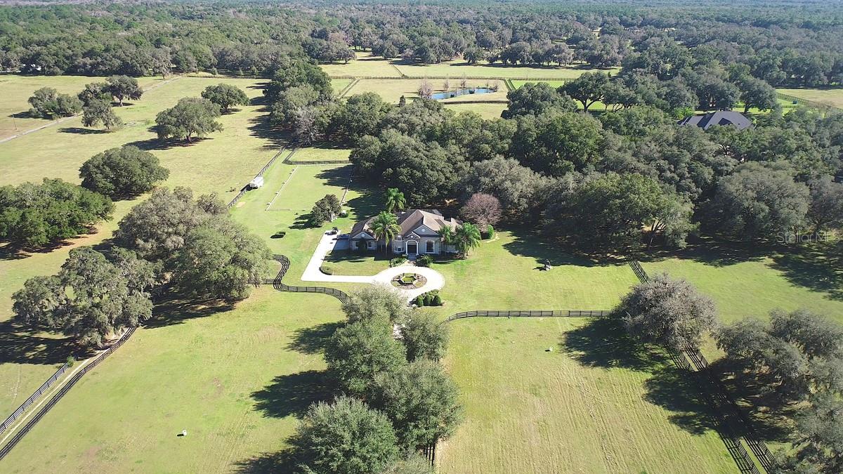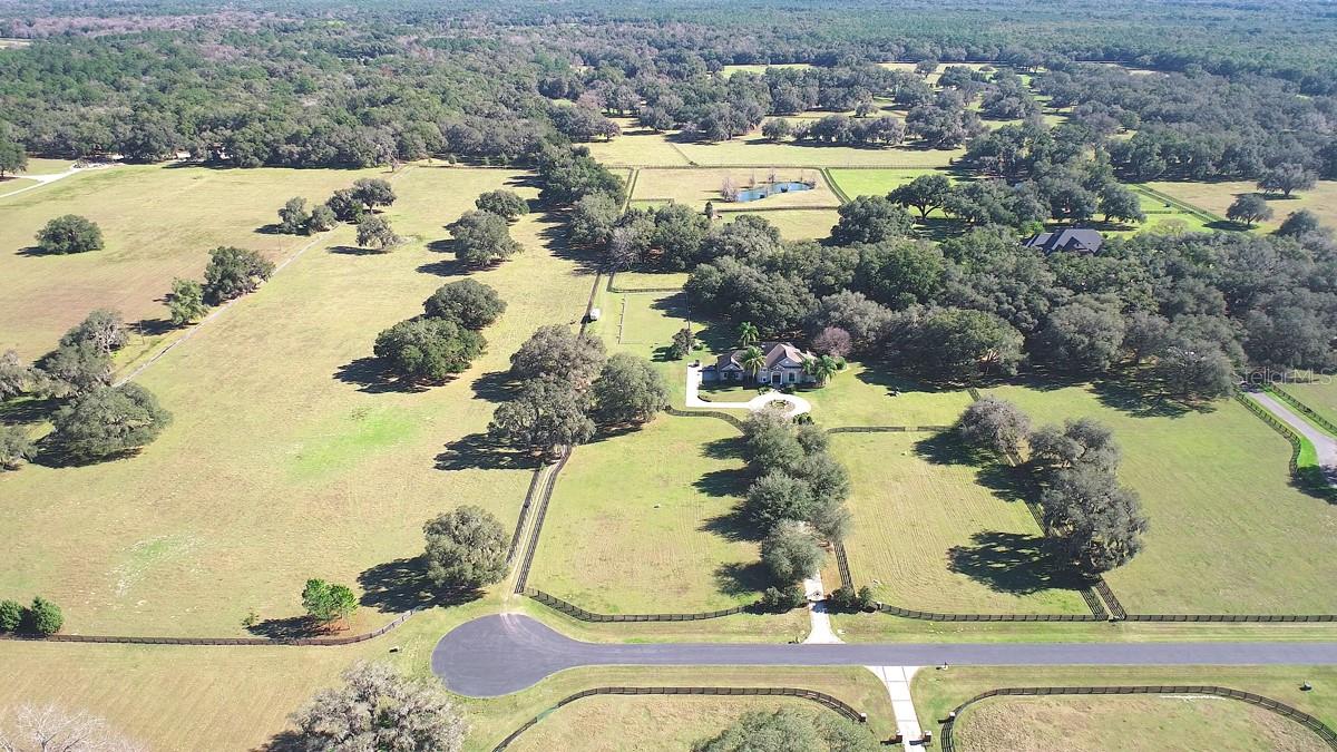Desfrute de uma vida privada no campo, mas confortavelmente localizada perto de tudo! Situado em 32 +/- acres com os majestosos Granddaddy Oaks, que oferecem vistas deslumbrantes desta fazenda, localizada no condomínio fechado de Equine Estates. O hall de entrada recebe belos pisos de cerâmica, uma elegante escadaria que leva ao segundo andar, uma sala de jantar e uma linda biblioteca com teto alto de dois andares. A cozinha do chef possui bancada de granito, ilha central, despensa, eletrodomésticos de aço inoxidável e armários personalizados. É aberto para uma ampla sala familiar com lareira, tetos altos, armários embutidos, bar molhado e portas de correr de vidro que dão acesso à área da piscina. A copa tem vista para a piscina e para a quinta. A suíte master no primeiro andar possui lareira, área de estar espaçosa, dois closets, banheiro com pias separadas e um grande chuveiro duplo e banheira de hidromassagem. O segundo cômodo pode ser um quarto extra, escritório ou sala de ginástica. O segundo andar inclui três quartos e dois banheiros. Todos os quartos são espaçosos, com amplo espaço no armário. A casa inclui uma grande piscina cercada por tela, uma varanda coberta e uma cozinha de verão. O cavaleiro vai adorar o celeiro do corredor central de 4 baias com sala de arreios, lavatório, lavabo, armazenamento superior ou sala de bônus. Além disso, há uma arena e um ringue de adestramento. A saliência em ambos os lados permite amplo espaço para estacionar o equipamento. lagoa abastecida e acesso direto a quilômetros de passeios a cavalo, caminhadas e trilhas de bicicleta na Florida Greenway and Trails. Ele está localizado muito perto do Florida Horse Park. As melhorias estão localizadas em um terreno de 14 +/- acres. Os 17,96 +/- acres adicionais são cercados por perímetro. Consulte MLS OM679003 para a casa e 14,13 +/- acres por $ 2.800.000.
