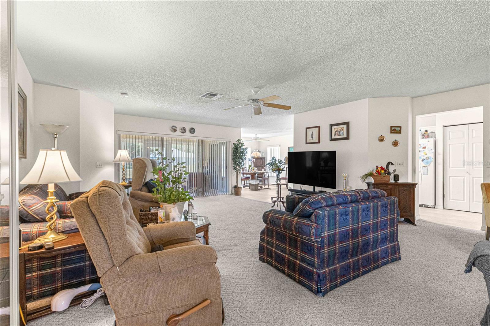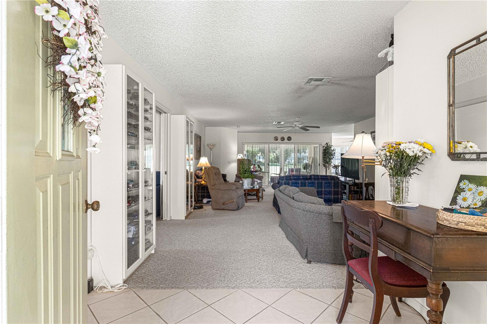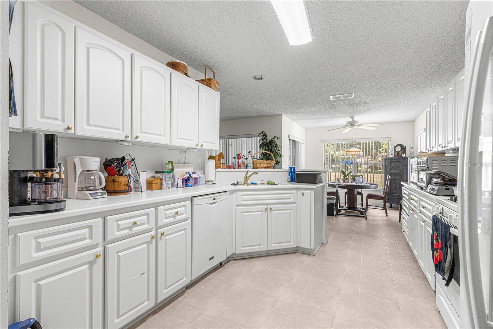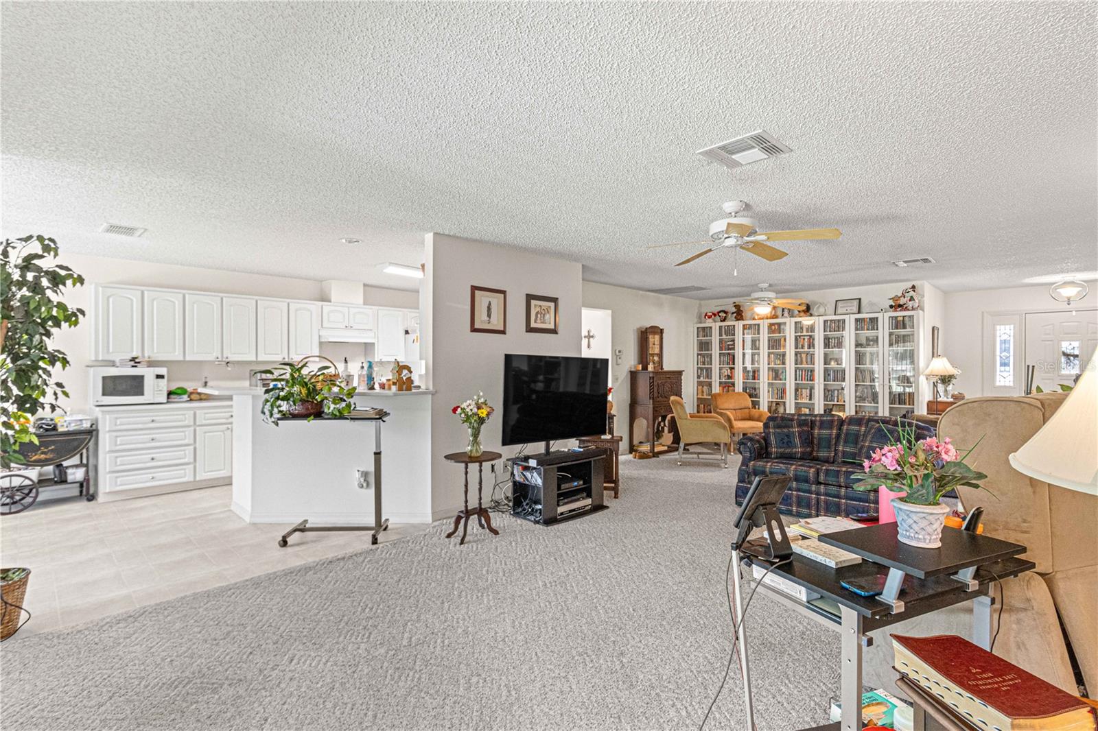 MELHORIA DE PREÇO! A casa modelo de Hanover, situada na comunidade de mais de 55 pessoas do On Top of the World, fica em um terreno grande e isolado, cercado por um paisagismo maduro e amplos espaços verdes. Ao entrar, você é recebido por um hall de entrada de azulejos e carpete berbere na sala principal. A sala de estar possui um controle deslizante triplo que se abre para uma varanda fechada, levando a um espaçoso bloco de concreto, ideal para grelhados e reuniões sociais. À esquerda fica o quarto de hóspedes e um banheiro equipado com combinação banheira/chuveiro. Adjacente está o espaço den/flex, cercado por portas francesas. A generosa sala de estar flui para a área de jantar formal, atualmente utilizada como biblioteca. A cozinha possui armários brancos, bancadas elegantes em corian e amplo espaço de armazenamento. Um recanto pitoresco oferece vista para o quintal tranquilo. O quarto principal king-size se conecta a closets duplos e banheiro privativo com pia dupla e box amplo com banco. A lavanderia abriga uma lavadora, uma secadora a gás, armários adicionais e um freezer vertical. A garagem para dois carros inclui uma extensão extra de 60 centímetros e uma frente blindada. Com a substituição do telhado em 2023 e um sistema HVAC de 2012, esta casa está pronta para ser vista – agende sua consulta hoje mesmo! Todas as ofertas razoáveis serão consideradas.