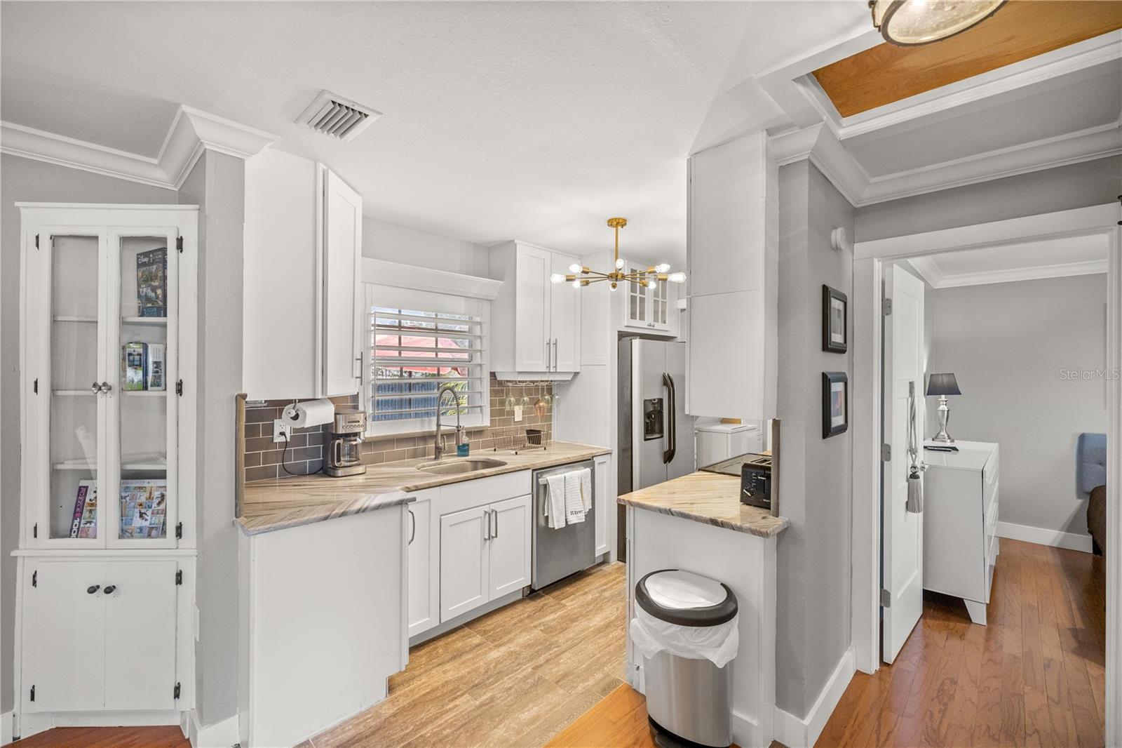 BEM-VINDO A CASA! Esta residência lindamente atualizada de 3 quartos e 2 banheiros possui 1.200 pés quadrados de espaço elegante, projetado para conforto e conveniência. Apresentando um novo telhado de metal e todos os novos intradorsos de vinil para proteção de longo prazo e excelente apelo ao meio-fio, a casa inclui uma cozinha gourmet adornada com armários shaker brancos e impressionantes bancadas de granito, perfeitas para entusiastas da culinária. Ambos os banheiros possuem bancadas de granito e piso de porcelanato de bom gosto. Pisos de madeira projetada adicionam calor e sofisticação às áreas de estar, complementados por acessórios modernos. A sanca proporciona um toque de elegância e requinte em todos os ambientes. Entre para descobrir um layout claro e arejado, ideal tanto para entretenimento quanto para a vida cotidiana. A cozinha flui perfeitamente para as áreas de estar e de jantar, criando um cenário perfeito para reuniões de família e amigos. O quarto principal tem dimensões generosas e os dois quartos adicionais oferecem versatilidade, quer você precise de acomodações para hóspedes, um escritório em casa ou um escritório aconchegante. Localizada em um bairro desejável, esta casa combina comodidades modernas com charme atemporal. Não perca a oportunidade de possuir esta joia meticulosamente renovada. Agende uma exibição hoje mesmo e experimente a combinação perfeita de conforto e estilo!