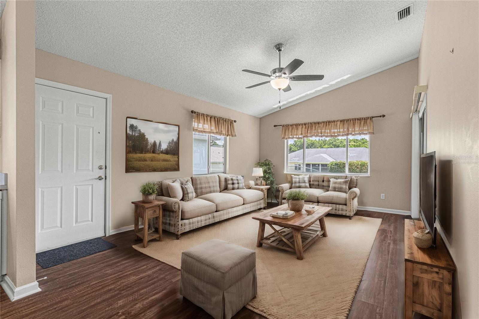 Uma ou mais fotos foram virtualmente encenadas. Bem-vindo a esta vila perfeita de 2 quartos/2 banheiros em Ocala Palms. Esta casa está pronta para ser habitada. Tinta fresca, piso de pranchas de vinil de luxo mais recente, telhado foi substituído em 2017, e aquecedor de água quente e A/C foram substituídos em 2021. A planta aberta tem uma cozinha completa com uma geladeira nova, fogão/forno transparente, lava-louças embutida e micro-ondas de bancada. O segundo banheiro foi recentemente remodelado. A combinação de sala de estar e sala de jantar tem vista para o quintal cercado e se abre para a varanda com tela. O quarto principal também tem controles deslizantes para a varanda para aproveitar as tardes sombreadas. No exterior encontrará calha de chuva, paisagismo e rebordo em pedra, quintal vedado e sistema de rega. Perfeito para desfrutar da vida na Flórida ou para aquela segunda casa longe dos invernos frios. Esta é uma comunidade com mais de 55 anos completa com campo de golfe de 18 buracos, piscina olímpica externa, academia, banheira de hidromassagem, piscina interna aquecida, sala de jogos, salão de festas, bilhar, bocha, quadras de tênis/pickleball e muito mais. Perto de lojas, mercearia, WEC, restaurantes e centro da cidade.