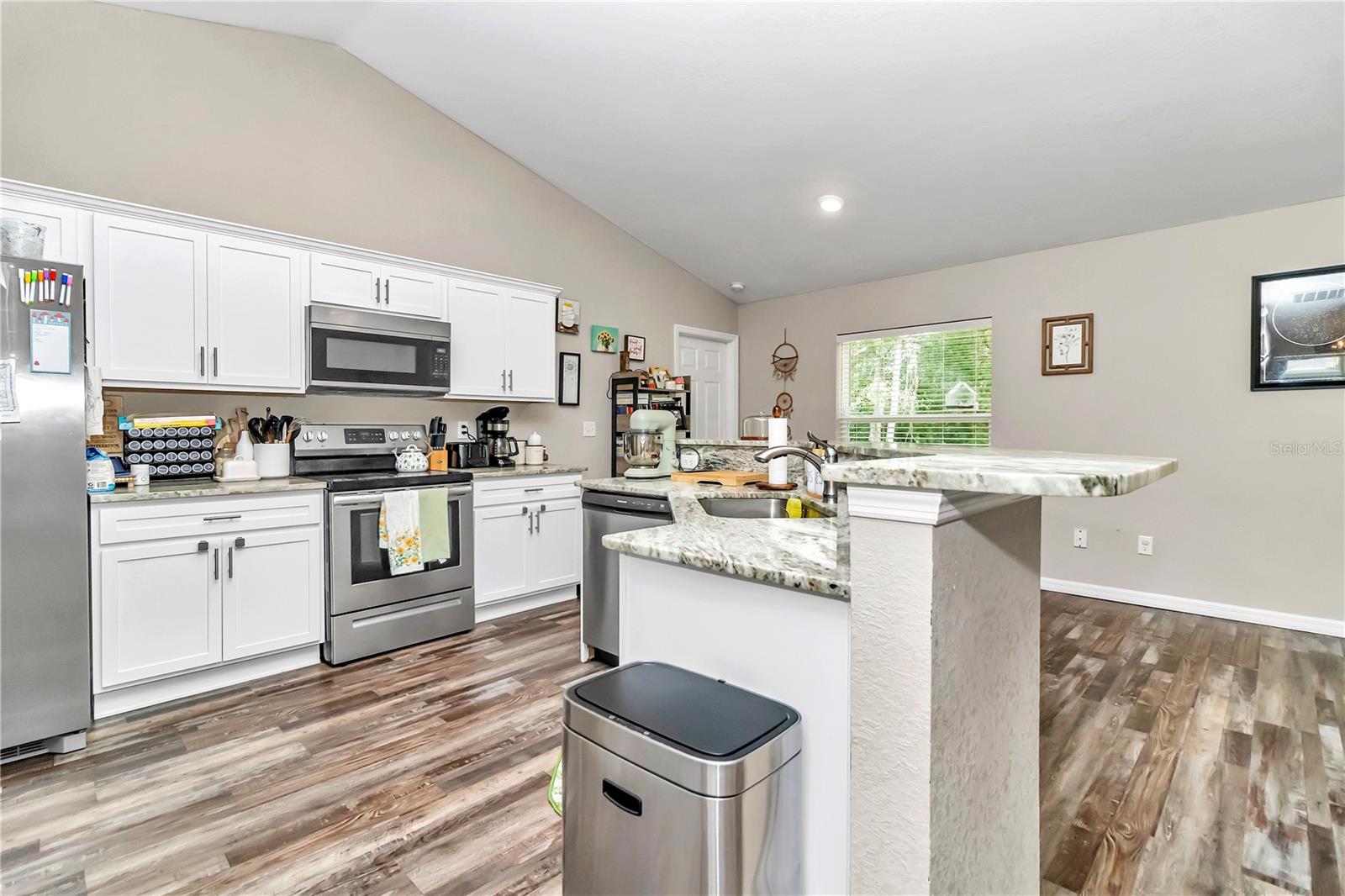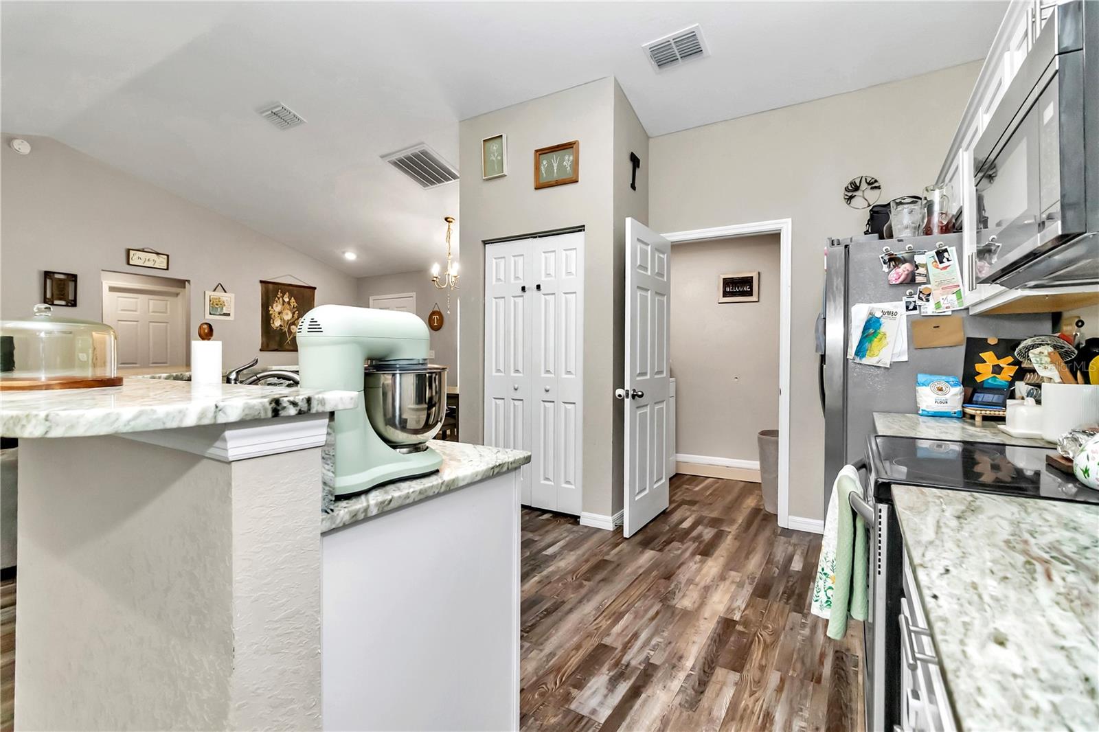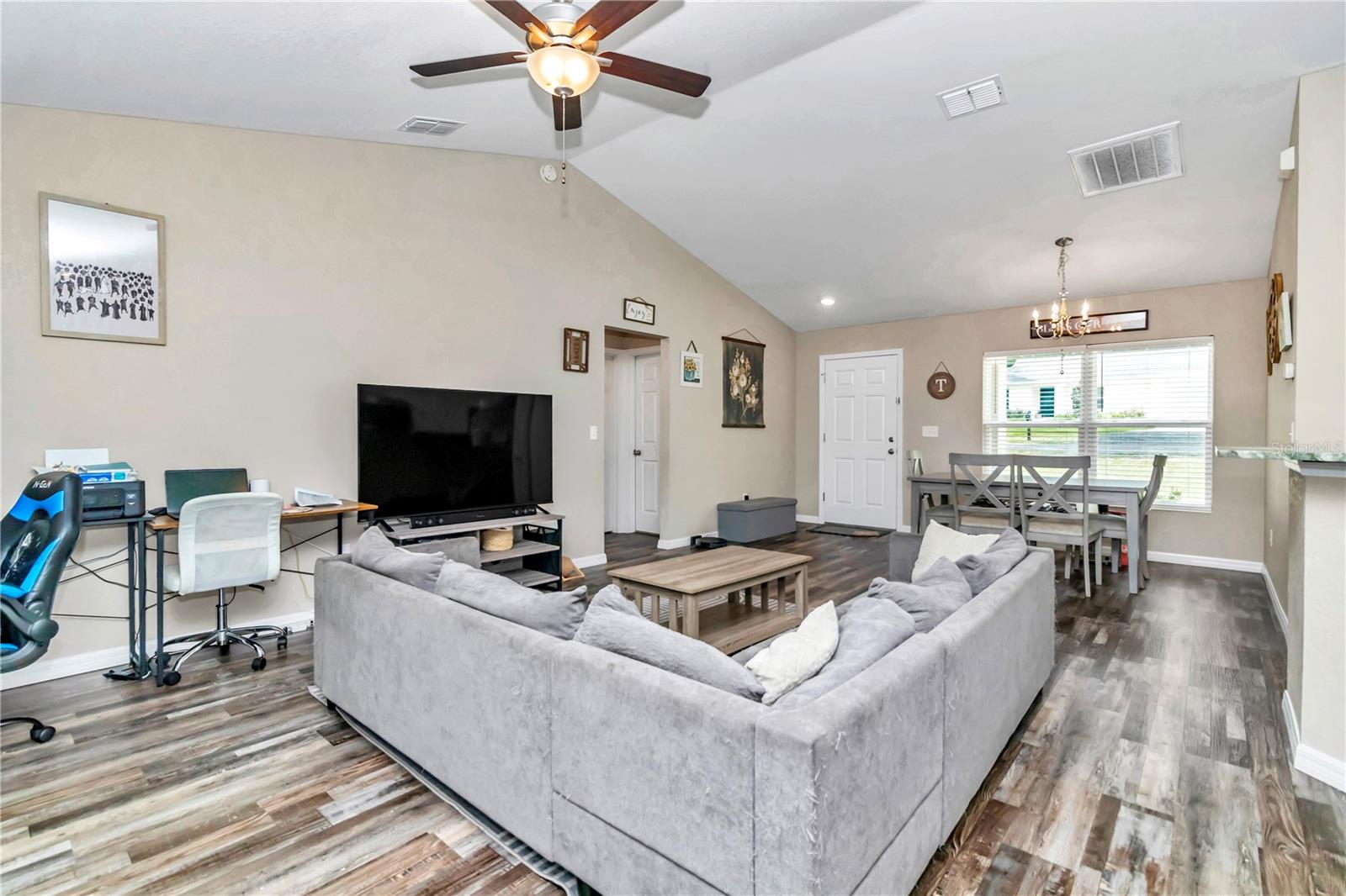 Bem-vindo a esta linda casa de 3 quartos, 2 banheiros e garagem para 2 carros, com elegante piso de LVT nas principais áreas de estar. Entre para descobrir uma planta baixa espaçosa e cuidadosamente projetada, destacada por tetos abobadados elevados, iluminação LED com eficiência energética e janelas coloridas E-Glass equipadas com pull-downs fáceis de limpar. A casa inclui uma sala de jantar formal e uma prática lavanderia interna. A cozinha é uma delícia culinária com uma ilha de balcão perfeita para assentos de bar, atraentes armários de madeira e uma ampla despensa. Os eletrodomésticos incluem lava-louças, fogão e micro-ondas, garantindo funcionalidade e charme. Retire-se para a generosa suíte master com closet e um lindo chuveiro de azulejos no banheiro master. O banheiro de hóspedes oferece um armário de roupa de cama e uma combinação de banheira/chuveiro. Cada quarto de hóspedes possui amplo espaço no armário para armazenamento. Em toda a casa, ventiladores de teto proporcionam conforto e ambos os banheiros possuem chuveiros de azulejos para maior elegância. Convenientemente situada perto de centros comerciais, instalações de saúde e do movimentado Paddock Mall, esta casa oferece uma mistura de conforto e conveniência em uma localização desejável.