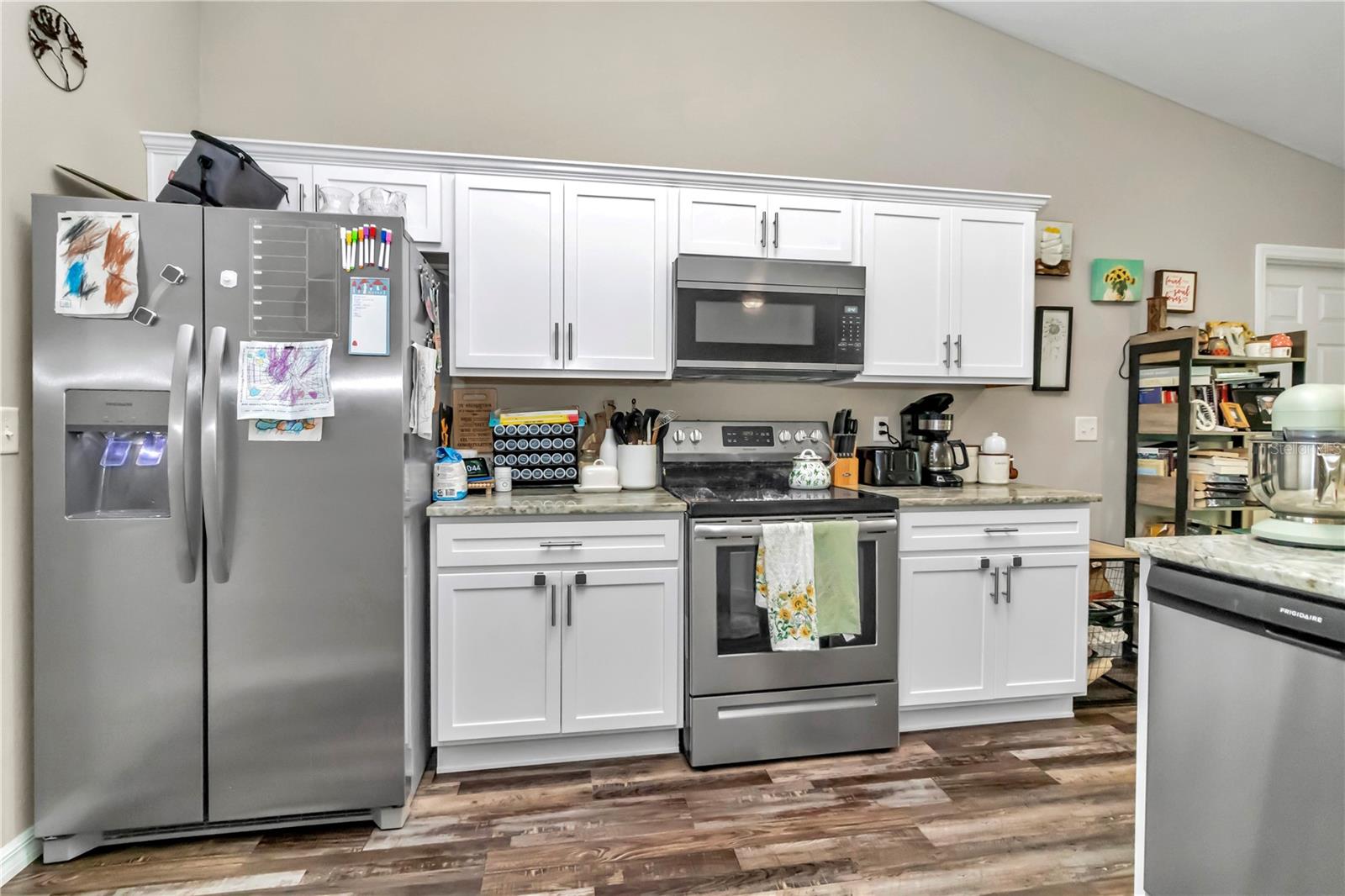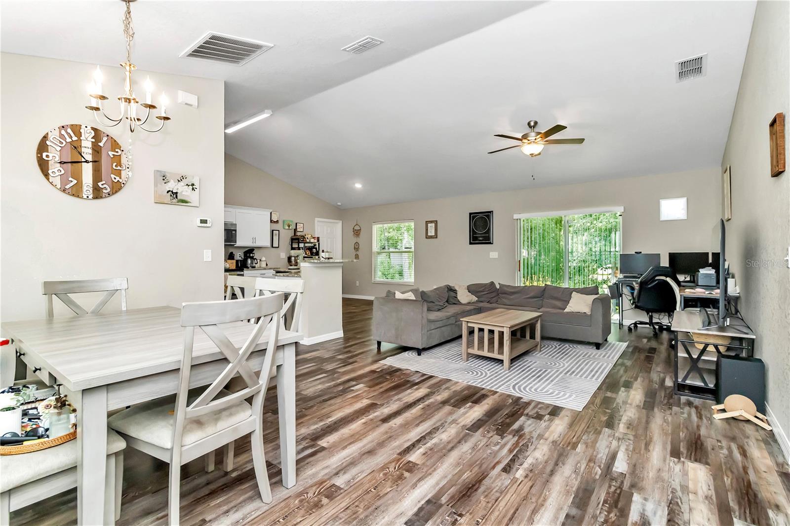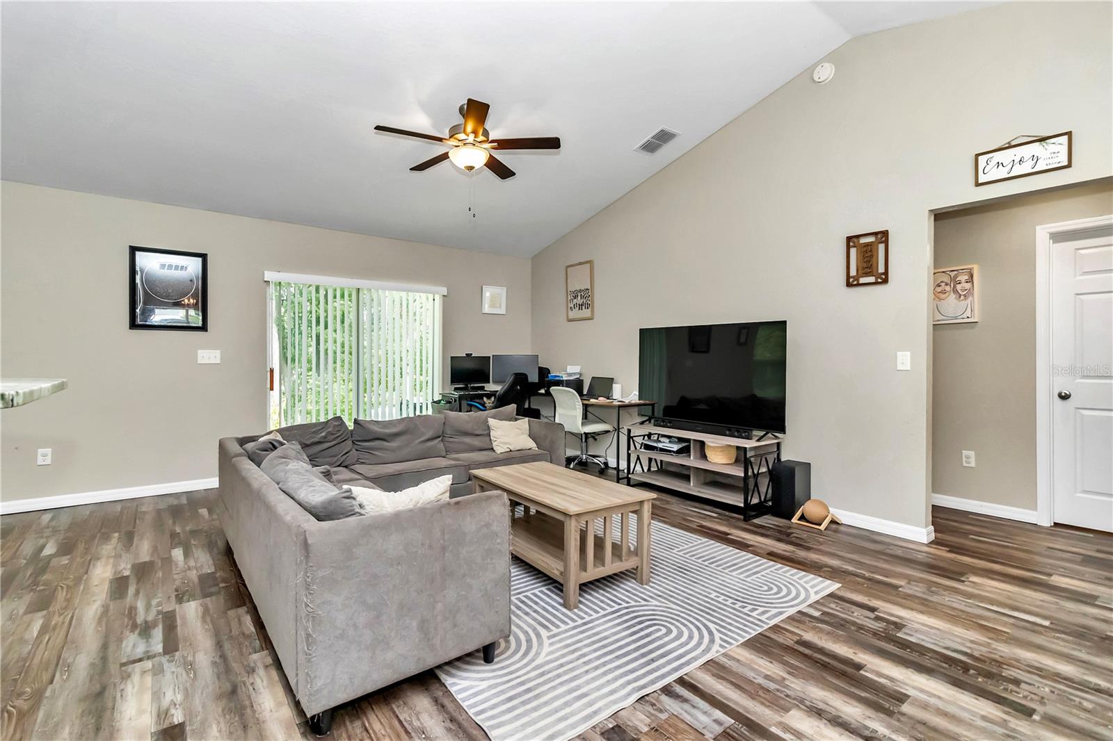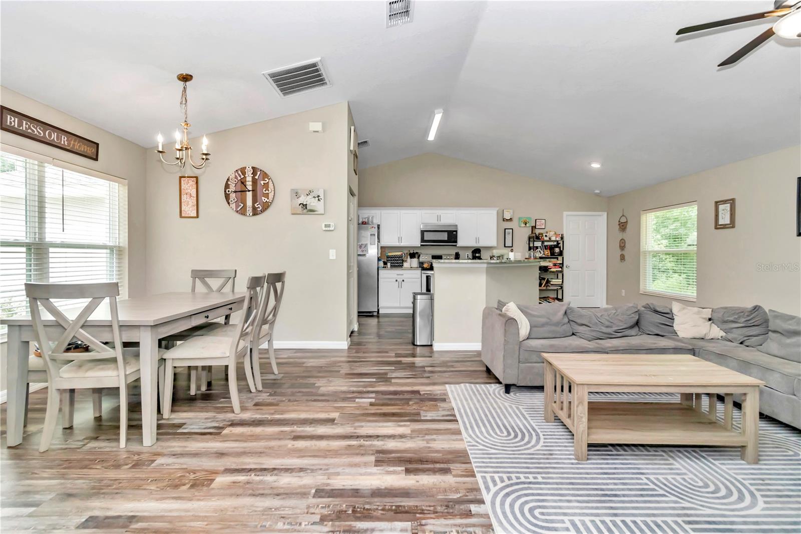 Bem-vindo a esta linda casa de 3 quartos, 2 banheiros e garagem para 2 carros, com elegante piso de LVT nas principais áreas de estar. Entre para descobrir uma planta baixa espaçosa e cuidadosamente projetada, destacada por tetos abobadados elevados, iluminação LED com eficiência energética e janelas coloridas E-Glass equipadas com pull-downs fáceis de limpar. A casa inclui uma sala de jantar formal e uma prática lavanderia interna. A cozinha é uma delícia culinária com uma ilha de balcão perfeita para assentos de bar, atraentes armários de madeira e uma ampla despensa. Os eletrodomésticos incluem lava-louças, fogão e micro-ondas, garantindo funcionalidade e charme. Retire-se para a generosa suíte master com closet e um lindo chuveiro de azulejos no banheiro master. O banheiro de hóspedes oferece um armário de roupa de cama e uma combinação de banheira/chuveiro. Cada quarto de hóspedes possui amplo espaço no armário para armazenamento. Em toda a casa, ventiladores de teto proporcionam conforto e ambos os banheiros possuem chuveiros de azulejos para maior elegância. Convenientemente situada perto de centros comerciais, instalações de saúde e do movimentado Paddock Mall, esta casa oferece uma mistura de conforto e conveniência em uma localização desejável.