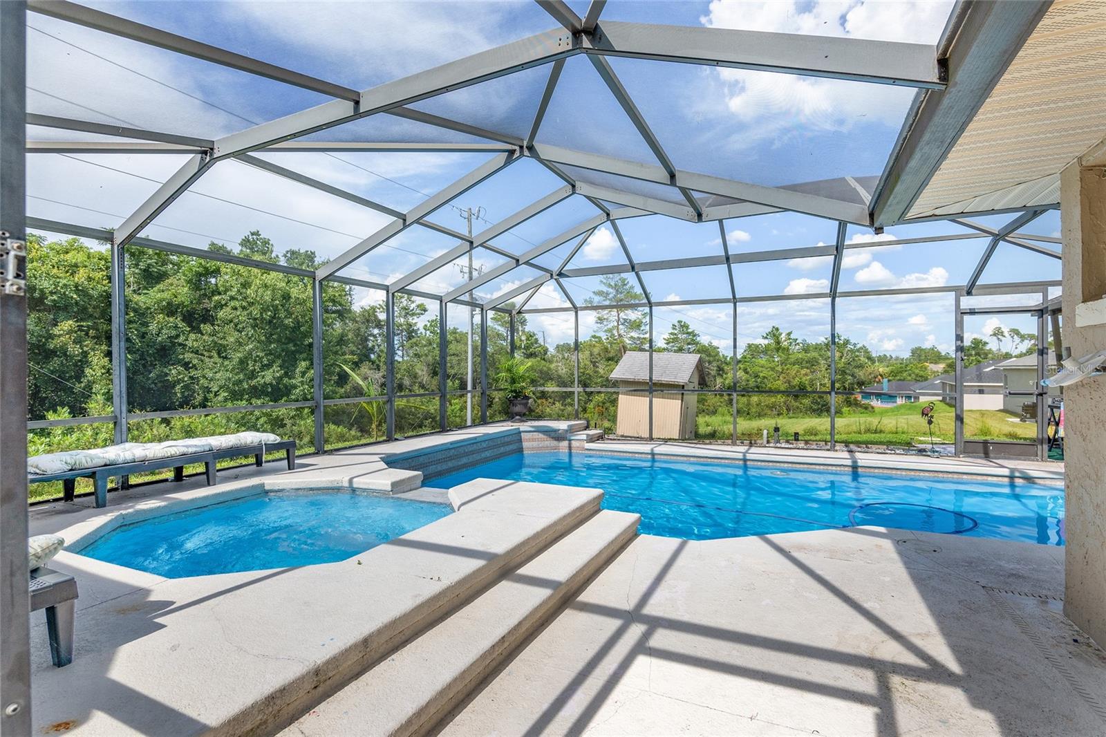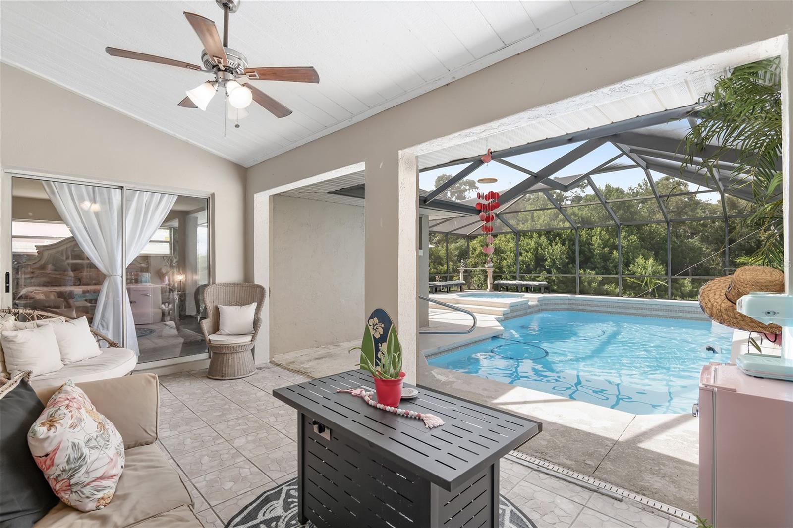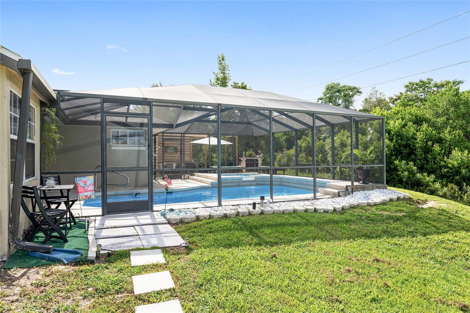 Bem-vindo a esta convidativa casa com piscina com 3 quartos e 2 banheiros, adornada com uma bela paleta neutra que complementa todos os estilos de decoração. A casa possui piso de cerâmica e laminado, melhorando a estética e a facilidade de manutenção. Aproveite o espaço criado pelos tetos da catedral e a planta aberta da sala de estar à sala de jantar, perfeita para receber convidados ou simplesmente relaxar. A grande cozinha ganha destaque com armários brancos, eletrodomésticos e despensa em inox, aliando estilo e funcionalidade na perfeição. Uma sala de jogos adicional com entrada independente oferece versatilidade e amplo espaço para diversas atividades, garantindo sempre espaço para recreação e lazer. A conveniência é fundamental com uma grande despensa que inclui opções de armazenamento generosas. Saia para o seu oásis privado - um grande quintal ao redor de uma piscina cercada por tela, proporcionando o cenário ideal para reuniões ao ar livre, relaxamento ao sol e criação de memórias duradouras. Termine o seu verão em sua própria casa com piscina privada. TELHADO 2022 e HVAC 2017