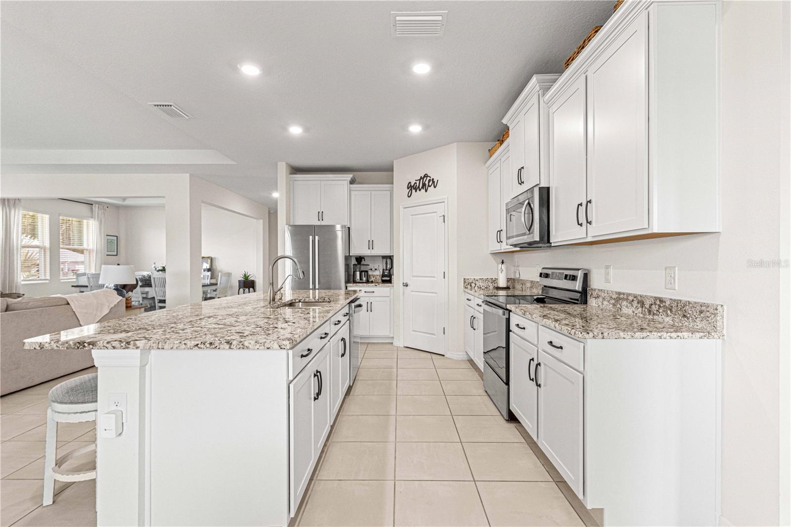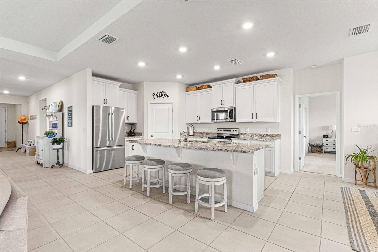 Mime-se com este presente incrível, uma linda casa pronta para morar e, melhor ainda, os vendedores pagam uma concessão de $ 6.000 para fechar. Você se sentirá em casa ao entrar nesta bela casa térrea na altamente desejada comunidade SE de Deer Path Estates, que tem um HOA baixo de US$ 22/mês. A casa de 2.827 pés quadrados com dois anos de idade fica em um terreno de 0,5 acres em uma rua sem saída, onde você encontrará um bairro tranquilo e tranquilo. Você vai adorar a grande entrada, a grande sala/sala de jantar formal de conceito aberto e os tetos em forma de bandeja em toda a casa. As paredes neutras, os azulejos de cerâmica, os quartos alcatifados, os armários claros da cozinha e dos banheiros deixam esta casa pronta para mudar! A casa tem 4 quartos e 3,5 banheiros e um quarto extra incrível e espaçoso. Este cômodo pode ser usado como home office, sala de TV, sala de jogos ou uma potencial suíte para sogra, pois fica ao lado do amplo quarto de hóspedes com banheiro completo e amplo closet. A bela sala grande é o lugar perfeito para receber familiares e amigos. Este quarto está virado a nascente, o que permite a entrada de muita luz solar natural, além de poder desfrutar do belo nascer do sol. A sala de jantar formal separada é perfeita para reuniões maiores. A bela cozinha é o centro da casa com uma ilha ampla com bancadas de granito, armários espaçosos de 42", uma despensa e eletrodomésticos de aço inoxidável. Para assentos adicionais, há uma área de refeições pitoresca fora da cozinha com vista para o quintal paisagístico. A área de estar inclui uma porta de vidro deslizante totalmente aberta que leva à varanda coberta e com tela e à área de estar e entretenimento ao ar livre aberta. Este quintal relaxante e tranquilo tem uma cerca viva de viburnum, palmeiras, árvores frutíferas e lindos canteiros de flores com excelente apelo ao meio-fio A planta perfeitamente projetada possui 2 quartos na frente da casa que compartilham um banheiro completo desejado. O lindo quarto principal com banheiro privativo, banheira de imersão, chuveiro grande e closet está localizado na parte de trás da casa para privacidade e vistas deslumbrantes do quintal. linda casa tem muitas atualizações que lhe conferem uma aparência semi-personalizada O layout é projetado para funcionalidade e conforto com zonas separadas para privacidade e vida familiar propícia para reuniões e atividades diárias. É realmente um oásis que tem tudo que você precisa para chamá-lo de casa! atividades; o Baseline Trailhead Park, onde você pode caminhar, fazer um piquenique em família e muito mais. O famoso World Equestrian Center, o maior complexo equestre dos Estados Unidos, oferece a melhor experiência em shows de cavalos. Os incríveis parques temáticos de Orlando ficam a apenas 90 milhas de distância.