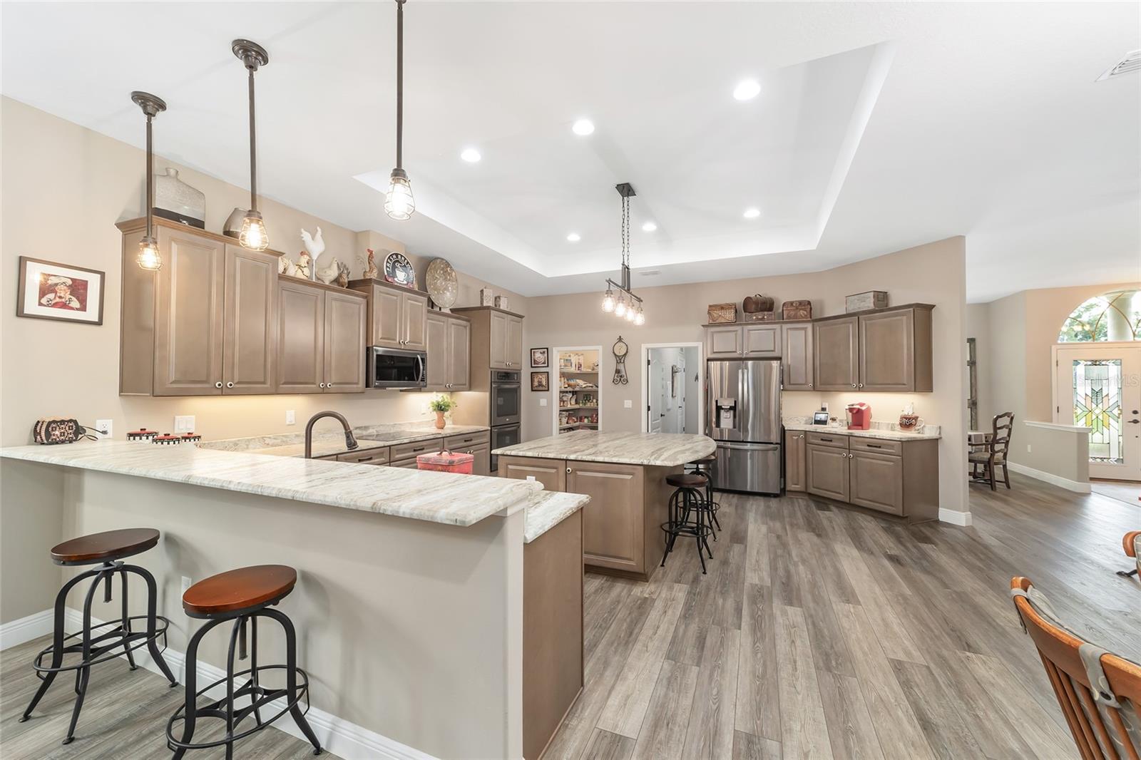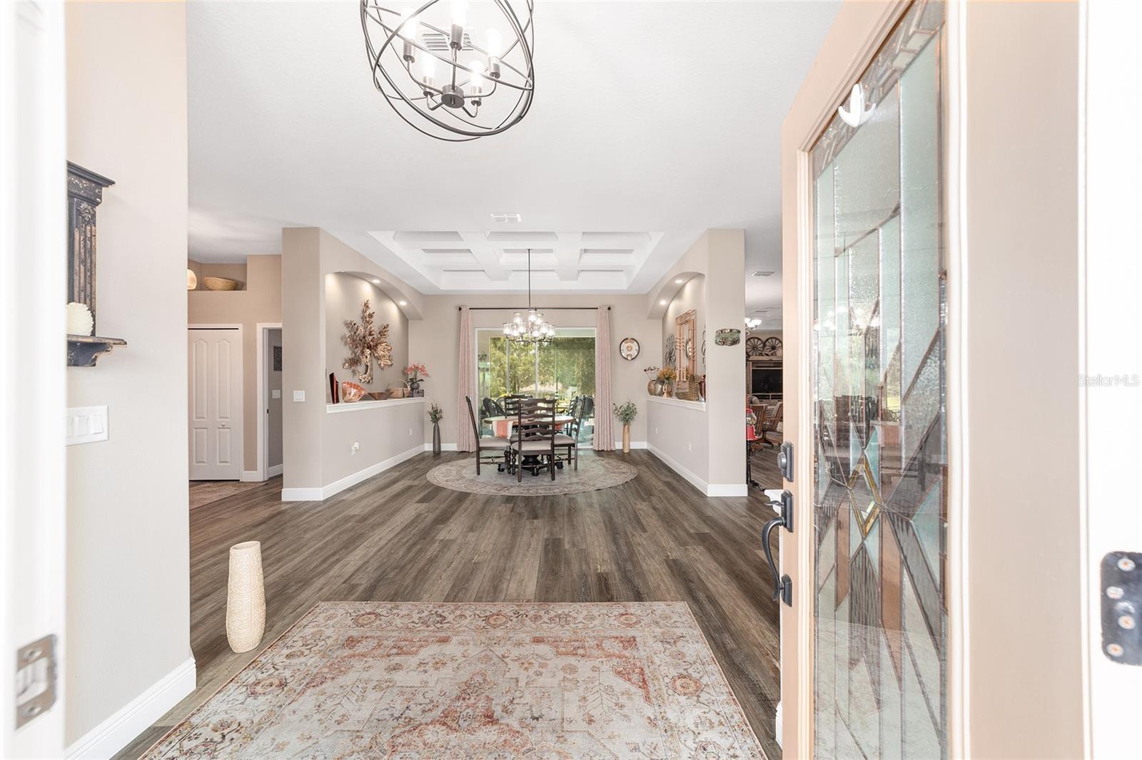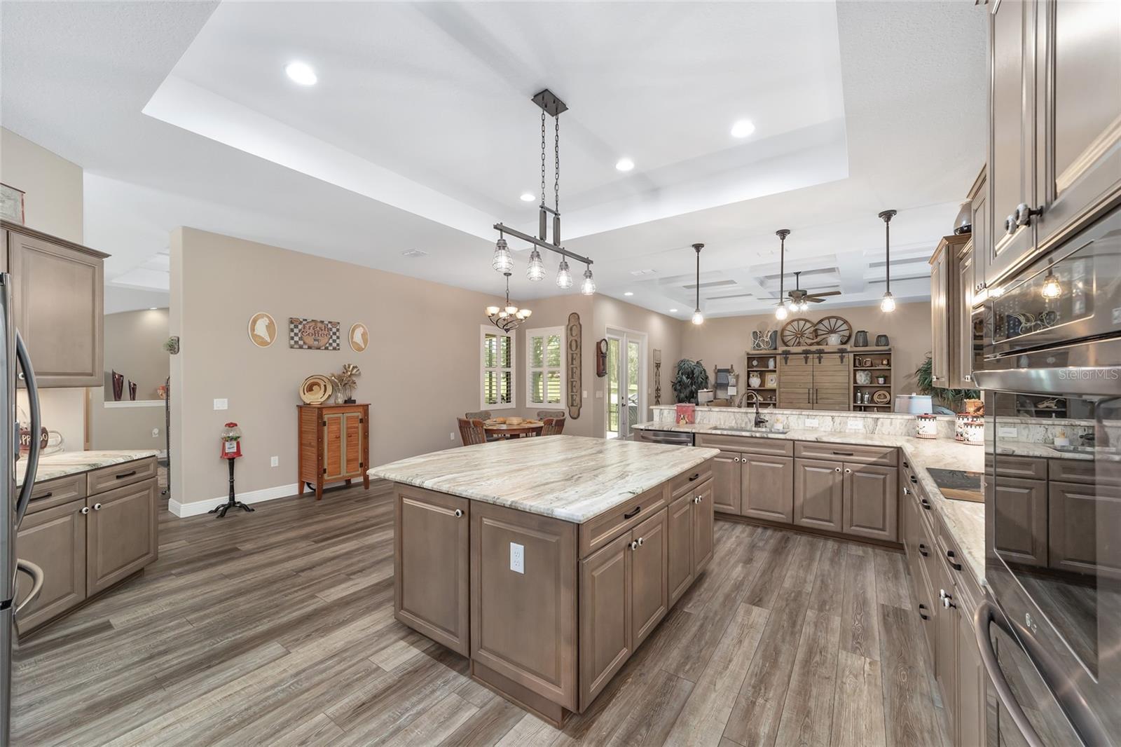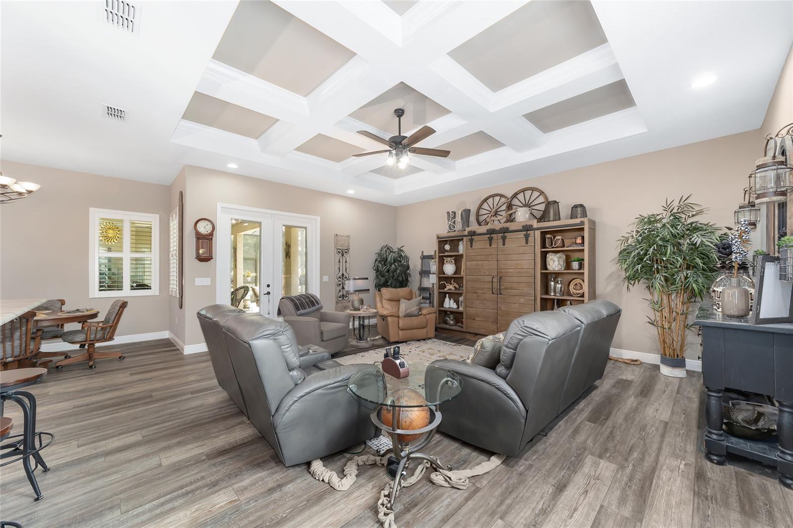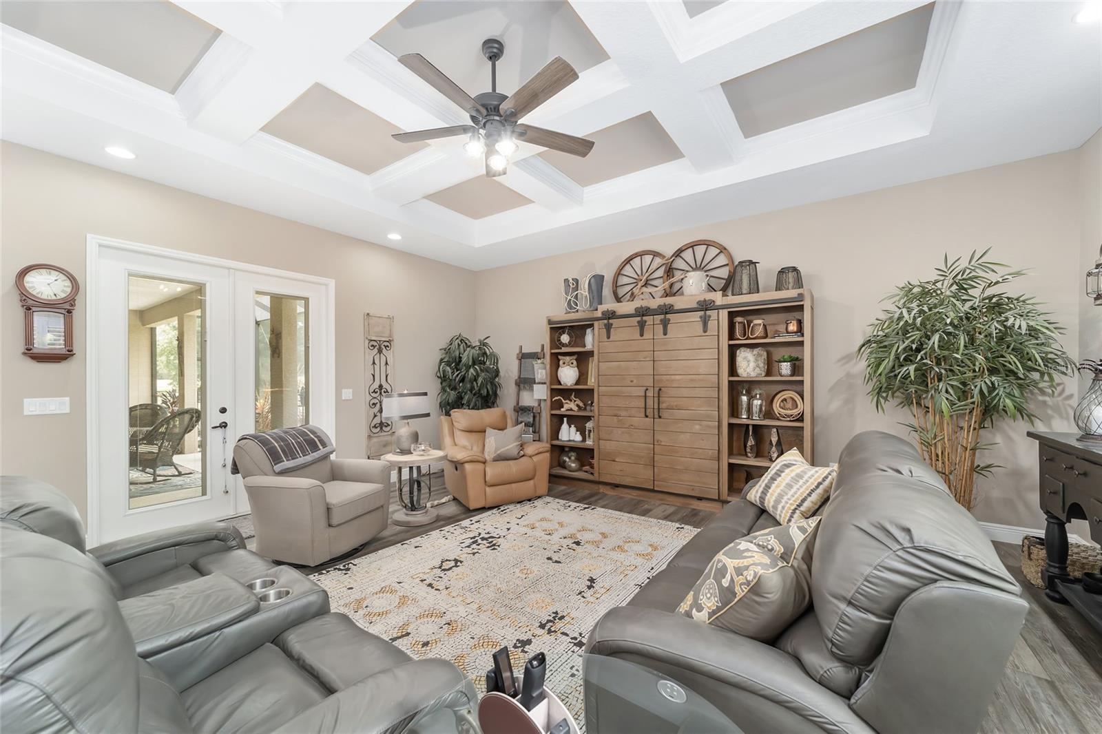 Esta deslumbrante casa em Golden Hills tem vista para o buraco 10 do campo de golfe e dispõe de 3 quartos, um escritório e 3 casas de banho, complementadas por uma espaçosa garagem para 3 carros. Entre pelas elegantes portas francesas de vidro em uma acolhedora sala de estar e área de jantar formal, onde um teto em caixotões e portas de vidro deslizantes levam à varanda. O escritório, completo com portas francesas e venezianas, oferece um espaço de trabalho luminoso e funcional. A planta dividida aumenta a privacidade, com uma porta de correr separando a suíte master das principais áreas de estar. O amplo quarto principal inclui uma área de estar aconchegante, tetos planos e acesso direto à varanda. O luxuoso banheiro principal possui uma penteadeira grande, um box amplo com chuveiros duplos e um banco generoso, além de um closet espaçoso equipado com prateleiras e uma ilha central. A cozinha apresenta lindos balcões de granito revestidos de couro, armários escalonados e fornos duplos embutidos, com uma enorme ilha e despensa para maior comodidade. Uma convidativa área de cozinha completa este paraíso culinário. Os quartos 2 e 3 oferecem amplo armazenamento, com o terceiro banheiro com banheira/chuveiro de azulejos e pia individual. A sala, situada ao lado da cozinha, possui teto em caixotões, portas de correr de vidro para a varanda e venezianas, realçando a elegância da casa. A grande varanda com tela é perfeita para entreter e aproveitar o sol da Flórida, com belas vistas do campo de golfe. As características adicionais incluem quintal cercado, calhas, sistema de filtragem de água e lavanderia equipada com armários e pia. Com uma garagem com impressionantes 25 pés de profundidade, esta casa oferece amplo espaço de armazenamento. Não perca a oportunidade de personalizar esta bela residência em Golden Hills!