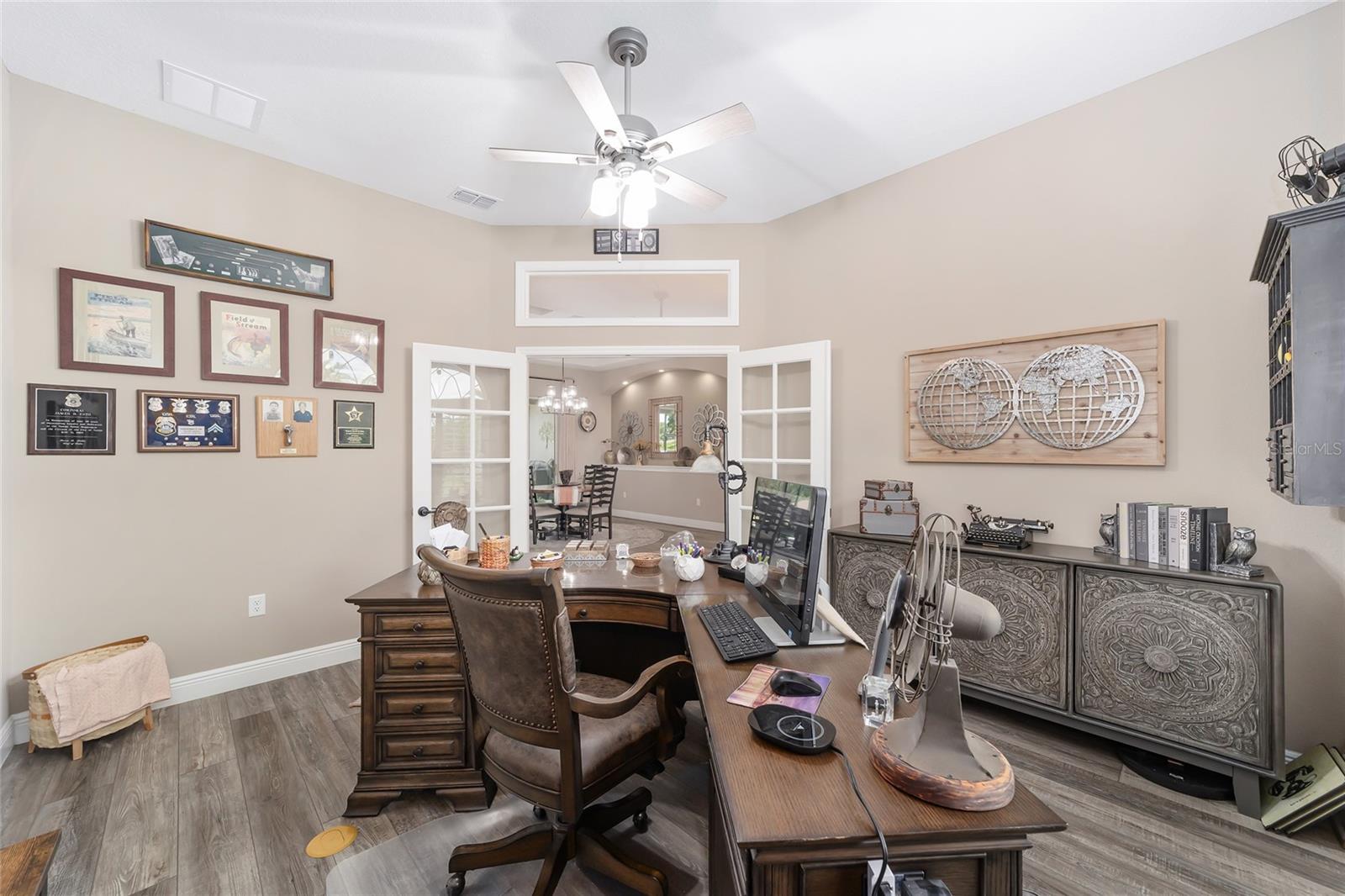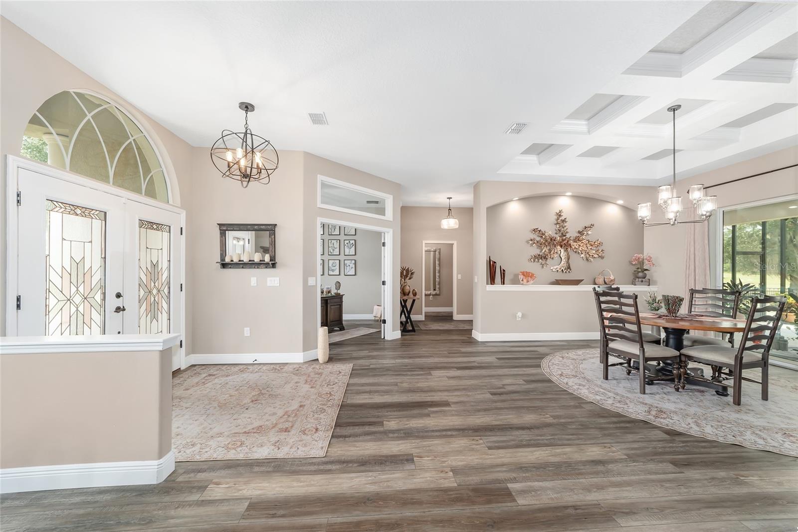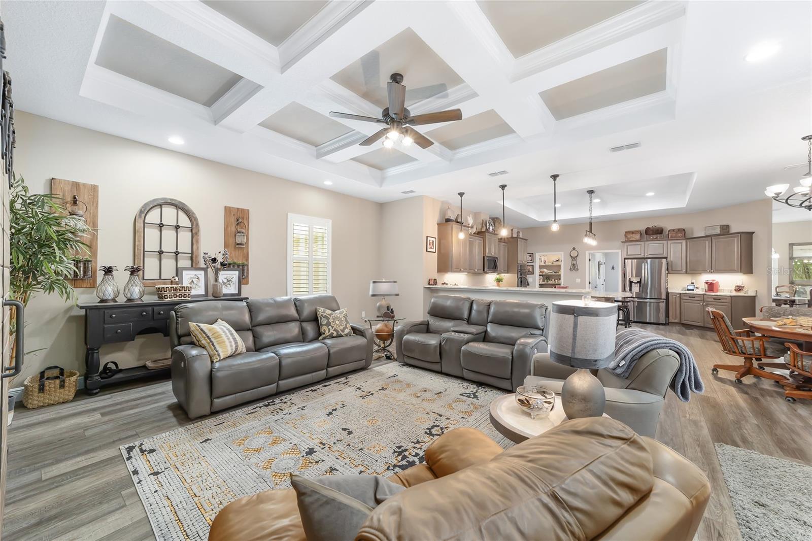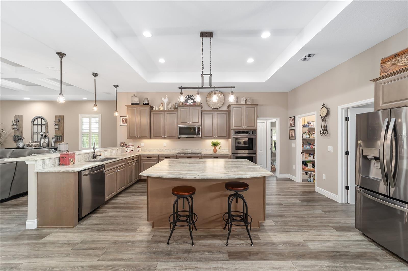 Esta deslumbrante casa em Golden Hills tem vista para o buraco 10 do campo de golfe e dispõe de 3 quartos, um escritório e 3 casas de banho, complementadas por uma espaçosa garagem para 3 carros. Entre pelas elegantes portas francesas de vidro em uma acolhedora sala de estar e área de jantar formal, onde um teto em caixotões e portas de vidro deslizantes levam à varanda. O escritório, completo com portas francesas e venezianas, oferece um espaço de trabalho luminoso e funcional. A planta dividida aumenta a privacidade, com uma porta de correr separando a suíte master das principais áreas de estar. O amplo quarto principal inclui uma área de estar aconchegante, tetos planos e acesso direto à varanda. O luxuoso banheiro principal possui uma penteadeira grande, um box amplo com chuveiros duplos e um banco generoso, além de um closet espaçoso equipado com prateleiras e uma ilha central. A cozinha apresenta lindos balcões de granito revestidos de couro, armários escalonados e fornos duplos embutidos, com uma enorme ilha e despensa para maior comodidade. Uma convidativa área de cozinha completa este paraíso culinário. Os quartos 2 e 3 oferecem amplo armazenamento, com o terceiro banheiro com banheira/chuveiro de azulejos e pia individual. A sala, situada ao lado da cozinha, possui teto em caixotões, portas de correr de vidro para a varanda e venezianas, realçando a elegância da casa. A grande varanda com tela é perfeita para entreter e aproveitar o sol da Flórida, com belas vistas do campo de golfe. As características adicionais incluem quintal cercado, calhas, sistema de filtragem de água e lavanderia equipada com armários e pia. Com uma garagem com impressionantes 25 pés de profundidade, esta casa oferece amplo espaço de armazenamento. Não perca a oportunidade de personalizar esta bela residência em Golden Hills!