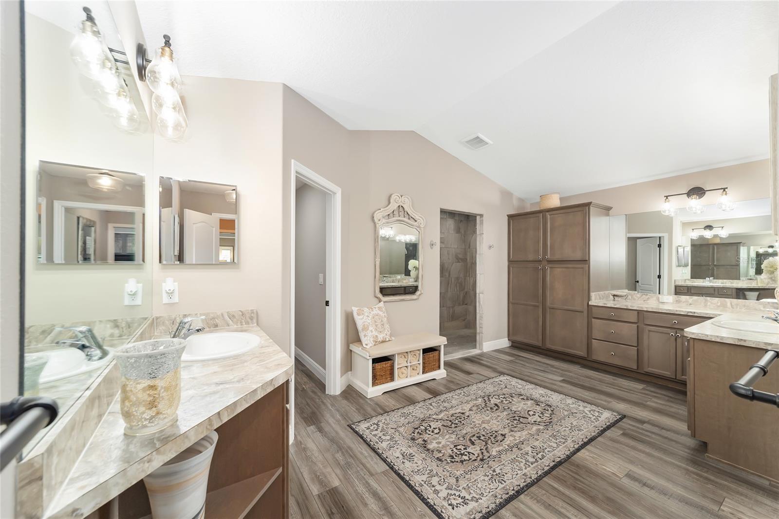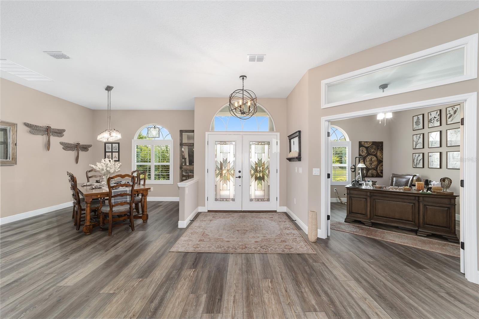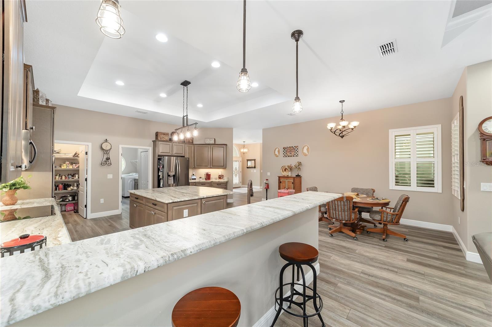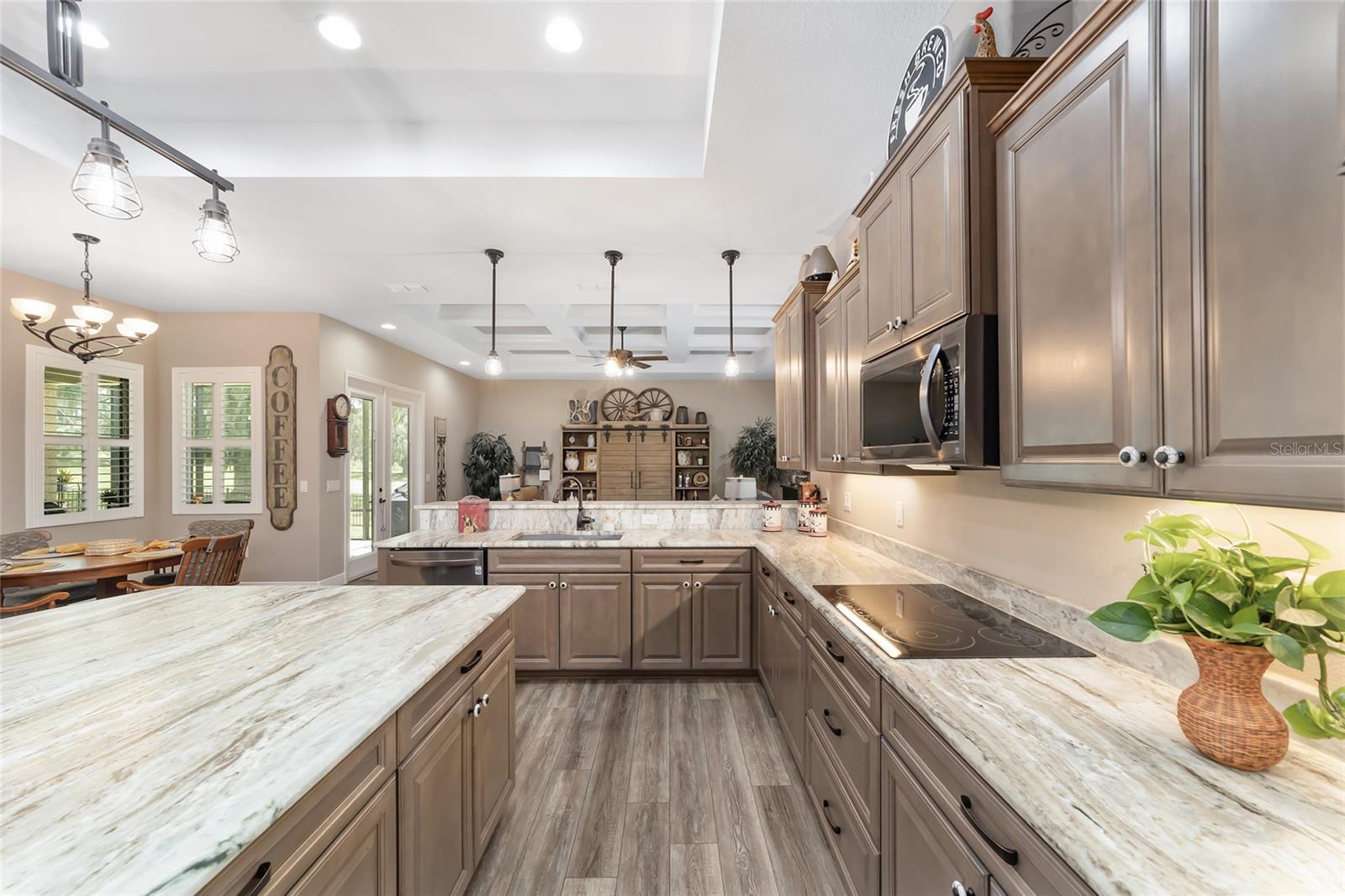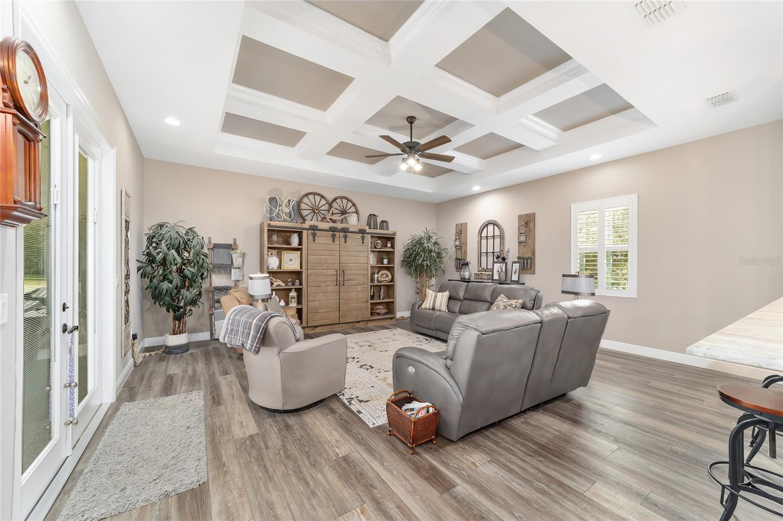 Esta deslumbrante casa em Golden Hills tem vista para o buraco 10 do campo de golfe e dispõe de 3 quartos, um escritório e 3 casas de banho, complementadas por uma espaçosa garagem para 3 carros. Entre pelas elegantes portas francesas de vidro em uma acolhedora sala de estar e área de jantar formal, onde um teto em caixotões e portas de vidro deslizantes levam à varanda. O escritório, completo com portas francesas e venezianas, oferece um espaço de trabalho luminoso e funcional. A planta dividida aumenta a privacidade, com uma porta de correr separando a suíte master das principais áreas de estar. O amplo quarto principal inclui uma área de estar aconchegante, tetos planos e acesso direto à varanda. O luxuoso banheiro principal possui uma penteadeira grande, um box amplo com chuveiros duplos e um banco generoso, além de um closet espaçoso equipado com prateleiras e uma ilha central. A cozinha apresenta lindos balcões de granito revestidos de couro, armários escalonados e fornos duplos embutidos, com uma enorme ilha e despensa para maior comodidade. Uma convidativa área de cozinha completa este paraíso culinário. Os quartos 2 e 3 oferecem amplo armazenamento, com o terceiro banheiro com banheira/chuveiro de azulejos e pia individual. A sala, situada ao lado da cozinha, possui teto em caixotões, portas de correr de vidro para a varanda e venezianas, realçando a elegância da casa. A grande varanda com tela é perfeita para entreter e aproveitar o sol da Flórida, com belas vistas do campo de golfe. As características adicionais incluem quintal cercado, calhas, sistema de filtragem de água e lavanderia equipada com armários e pia. Com uma garagem com impressionantes 25 pés de profundidade, esta casa oferece amplo espaço de armazenamento. Não perca a oportunidade de personalizar esta bela residência em Golden Hills!