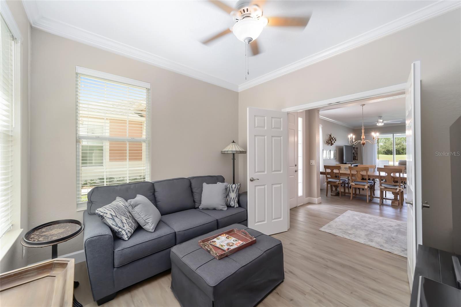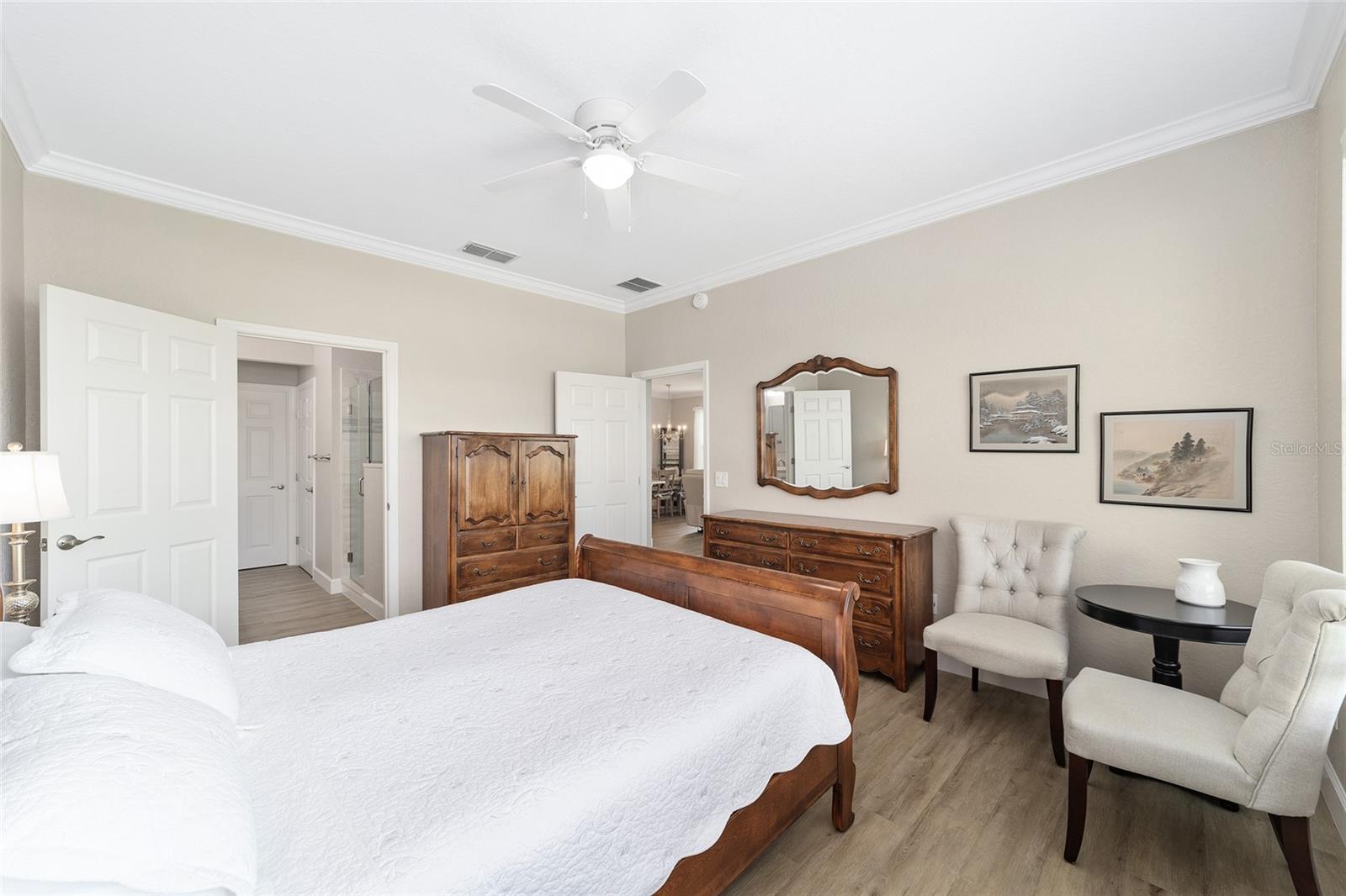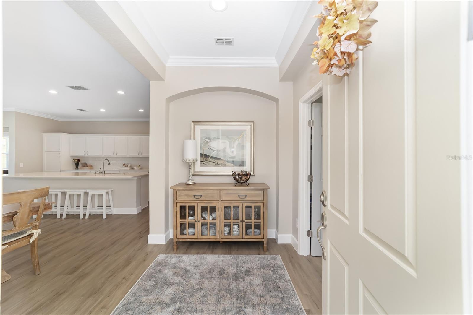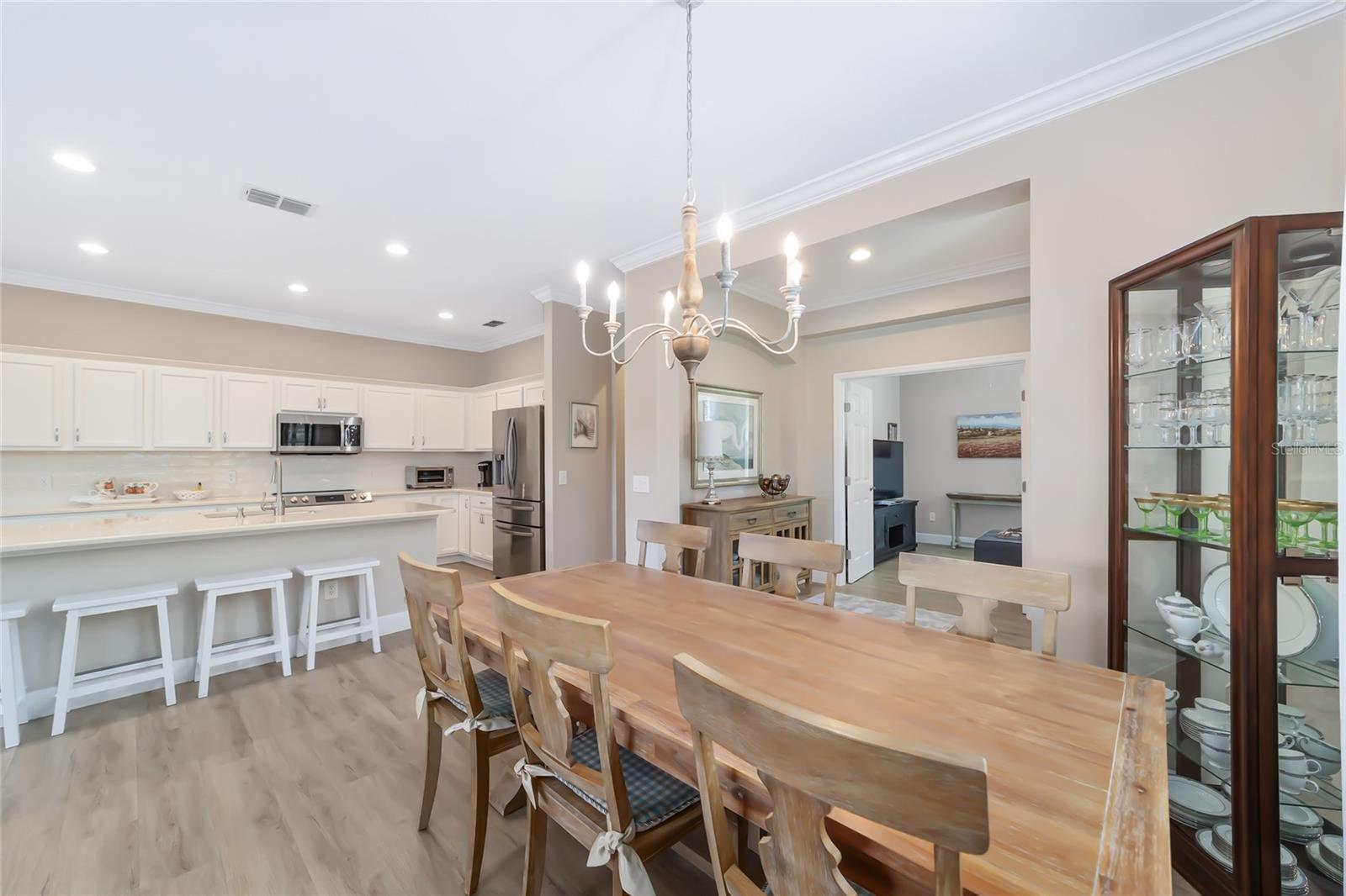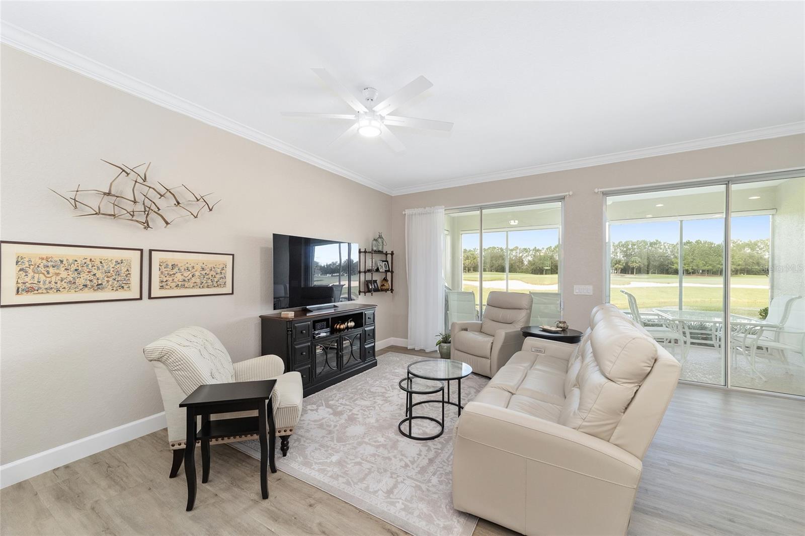 Villa LINDA sem manutenção, completamente reformada, 2bd/2ba, quarto flexível e garagem para 2 carros localizada em Stone Creek por Del Webb. Esta casa possui piso de vinil luxuoso, sancas, placas de base mais altas e persianas por toda parte. A cozinha tem uma grande ilha, armários recém-pintados, eletrodomésticos de aço inoxidável atualizados, bancadas de quartzo, backsplash e iluminação embutida. Área de jantar de tamanho perfeito. A sala possui ventilador de teto e linda vista para o campo de golfe e lago. O quarto principal possui ventilador de teto e closet. O banheiro principal possui chuveiro personalizado com porta e bancada de vidro sem moldura, bancadas de quartzo, espelhos e iluminação atualizados. Quarto de hóspedes espaçoso com ventilador de teto. O banheiro de hóspedes possui chuveiro personalizado com porta de vidro sem moldura e bancadas de quartzo. A lavanderia possui armários superiores e inferiores e pia embutida. Vistas deslumbrantes da varanda com vista para o campo de golfe e o lago. Aquecedor elétrico de água sem tanque. Novo A/C em 2022, Novo Telhado em 2024. Não há absolutamente nada para fazer nesta linda casa a não ser mudar-se!