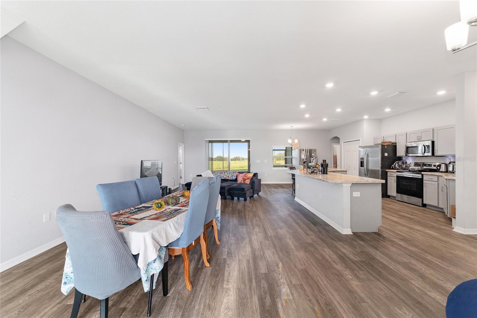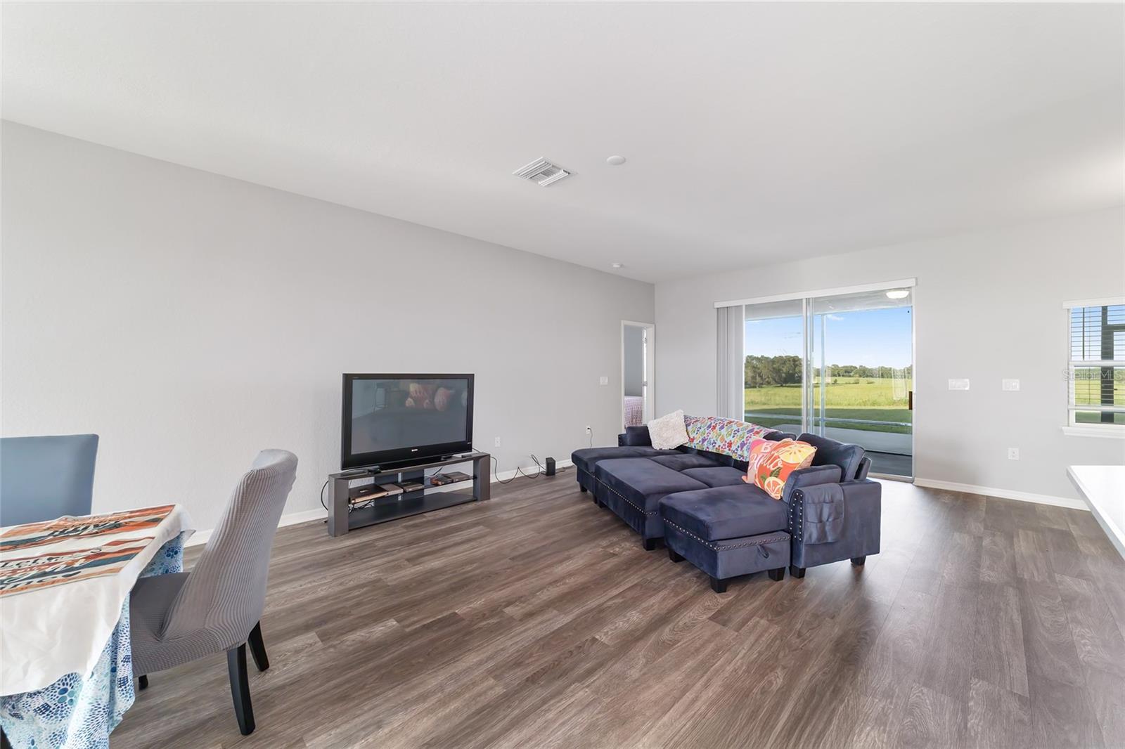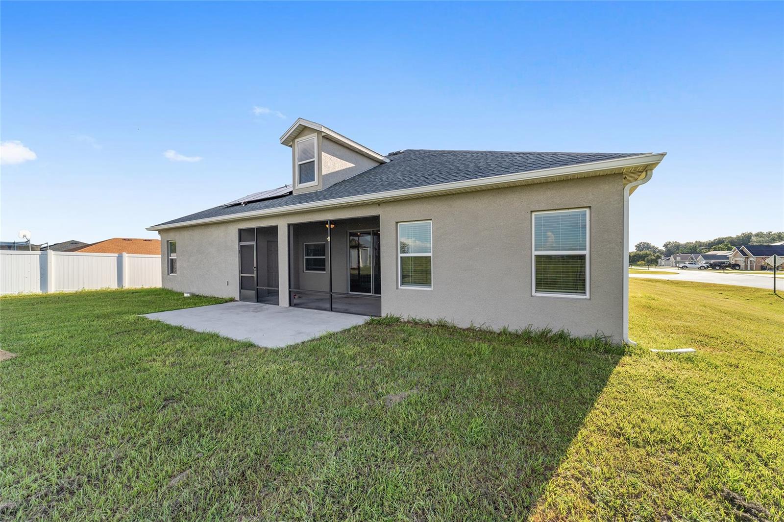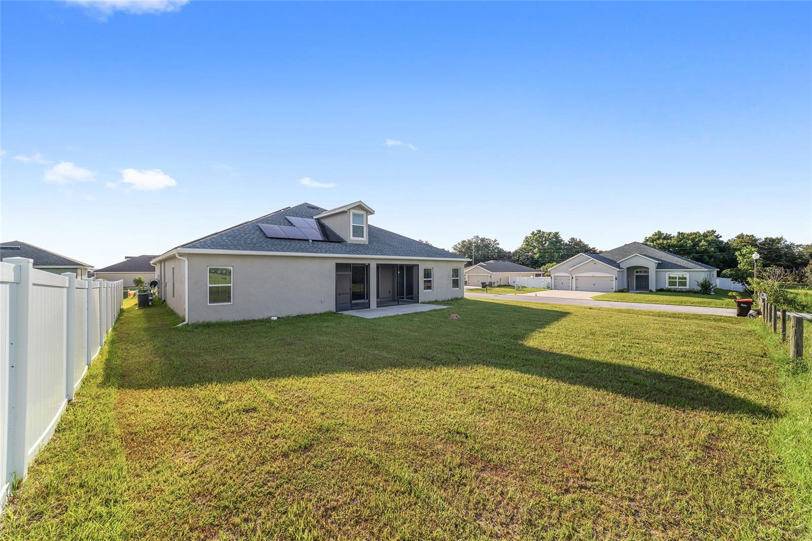 Localizada em um lote de esquina Premium com vista para terras agrícolas, sem vizinhos de um lado e atrás desta casa tripla dividida com 5 quartos/3,5 banheiros, oferece todo o espaço extra que você está procurando. Esta casa quase nova de dois andares apresenta uma entrada com detalhes em pedra e uma porta frontal embutida em vidro que se abre para uma paleta de cores neutras claras e brilhantes, com tetos altos e uma planta aberta perfeita para entretenimento. O nível principal desta casa oferece uma grande cozinha com iluminação embutida, muitos armários e balcão, uma despensa para necessidades extras de armazenamento e assentos na altura do bar para refeições casuais. A cozinha tem vista para a espaçosa sala de reuniões, oferecendo controles deslizantes convenientemente posicionados e abertos para uma sala com tela na Flórida, perfeita para entretenimento ao ar livre ou relaxamento enquanto desfruta de vistas tranquilas do pasto. A suíte do proprietário no 1º andar oferece mais vistas excelentes e acesso direto ao exterior, um grande closet e um banheiro privativo com pia dupla e box amplo com azulejos de vidro e janela de popa para excelente iluminação natural. A vida no primeiro andar também oferece três quartos de hóspedes, mais dois banheiros completos e um espaço flexível que pode ser usado como área de estar casual ou escritório doméstico. No andar de cima, você encontrará uma área de estar bônus no loft com um lavabo conveniente, permitindo um espaço extra fantástico para uma sala de jogos, escritório ou sala de mídia. Como benefício adicional, você pode desfrutar de um sistema solar para toda a casa que aproveita a energia do sol para que você possa reduzir seu consumo de energia e desfrutar de economias significativas em suas contas de energia. A comunidade também oferece uma excelente localização com acesso conveniente a lojas, restaurantes, parques públicos, instalações médicas e a uma curta distância de carro de The Villages. Os entusiastas do ar livre também poderão desfrutar de uma variedade de comodidades e atrações de fácil acesso, como Santos Trails, um destino popular para caminhadas e ciclismo, e o Campo de Golfe Baseline, a pouco mais de 1,6 km de distância.