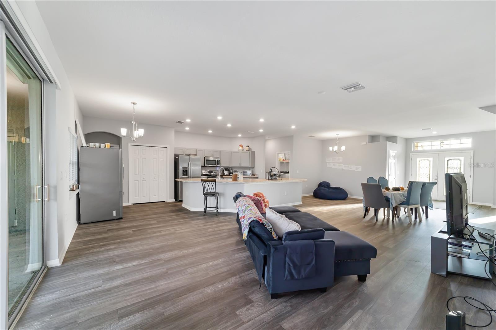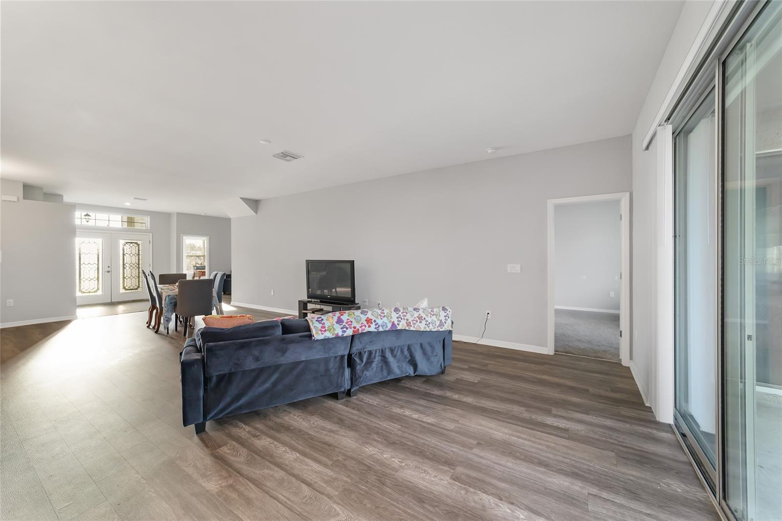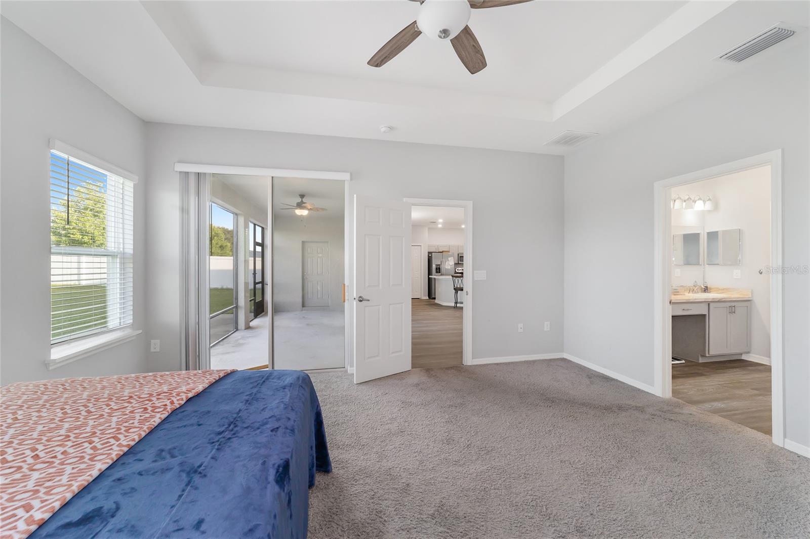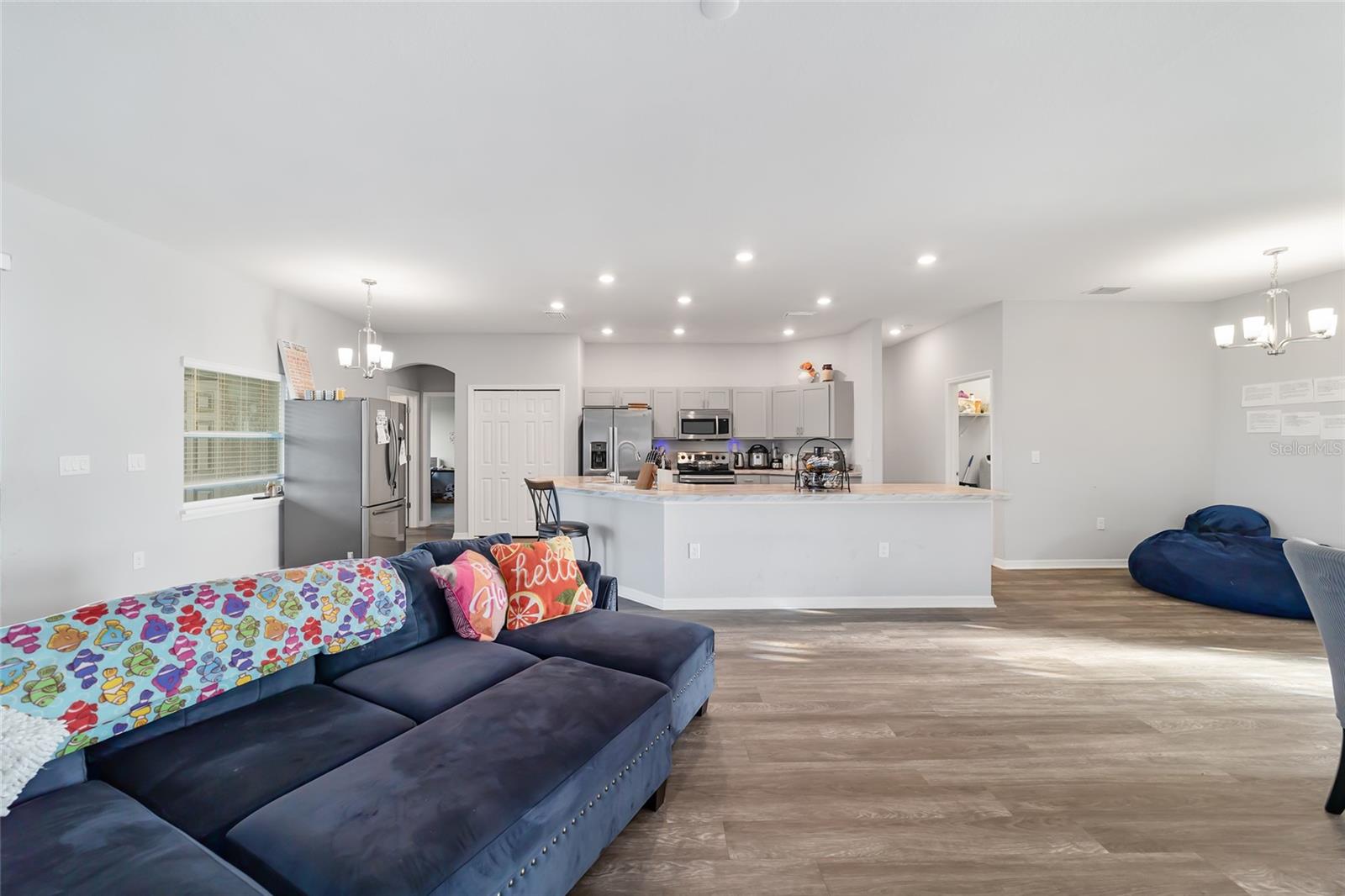 Localizada em um lote de esquina Premium com vista para terras agrícolas, sem vizinhos de um lado e atrás desta casa tripla dividida com 5 quartos/3,5 banheiros, oferece todo o espaço extra que você está procurando. Esta casa quase nova de dois andares apresenta uma entrada com detalhes em pedra e uma porta frontal embutida em vidro que se abre para uma paleta de cores neutras claras e brilhantes, com tetos altos e uma planta aberta perfeita para entretenimento. O nível principal desta casa oferece uma grande cozinha com iluminação embutida, muitos armários e balcão, uma despensa para necessidades extras de armazenamento e assentos na altura do bar para refeições casuais. A cozinha tem vista para a espaçosa sala de reuniões, oferecendo controles deslizantes convenientemente posicionados e abertos para uma sala com tela na Flórida, perfeita para entretenimento ao ar livre ou relaxamento enquanto desfruta de vistas tranquilas do pasto. A suíte do proprietário no 1º andar oferece mais vistas excelentes e acesso direto ao exterior, um grande closet e um banheiro privativo com pia dupla e box amplo com azulejos de vidro e janela de popa para excelente iluminação natural. A vida no primeiro andar também oferece três quartos de hóspedes, mais dois banheiros completos e um espaço flexível que pode ser usado como área de estar casual ou escritório doméstico. No andar de cima, você encontrará uma área de estar bônus no loft com um lavabo conveniente, permitindo um espaço extra fantástico para uma sala de jogos, escritório ou sala de mídia. Como benefício adicional, você pode desfrutar de um sistema solar para toda a casa que aproveita a energia do sol para que você possa reduzir seu consumo de energia e desfrutar de economias significativas em suas contas de energia. A comunidade também oferece uma excelente localização com acesso conveniente a lojas, restaurantes, parques públicos, instalações médicas e a uma curta distância de carro de The Villages. Os entusiastas do ar livre também poderão desfrutar de uma variedade de comodidades e atrações de fácil acesso, como Santos Trails, um destino popular para caminhadas e ciclismo, e o Campo de Golfe Baseline, a pouco mais de 1,6 km de distância.