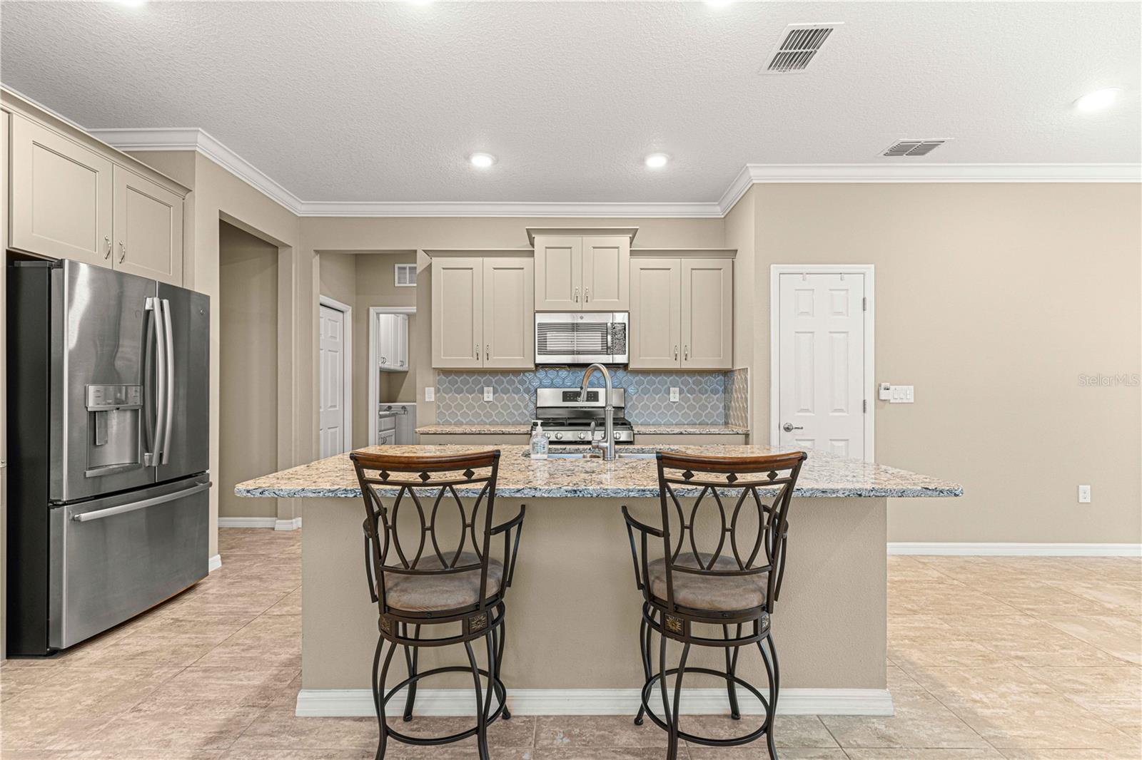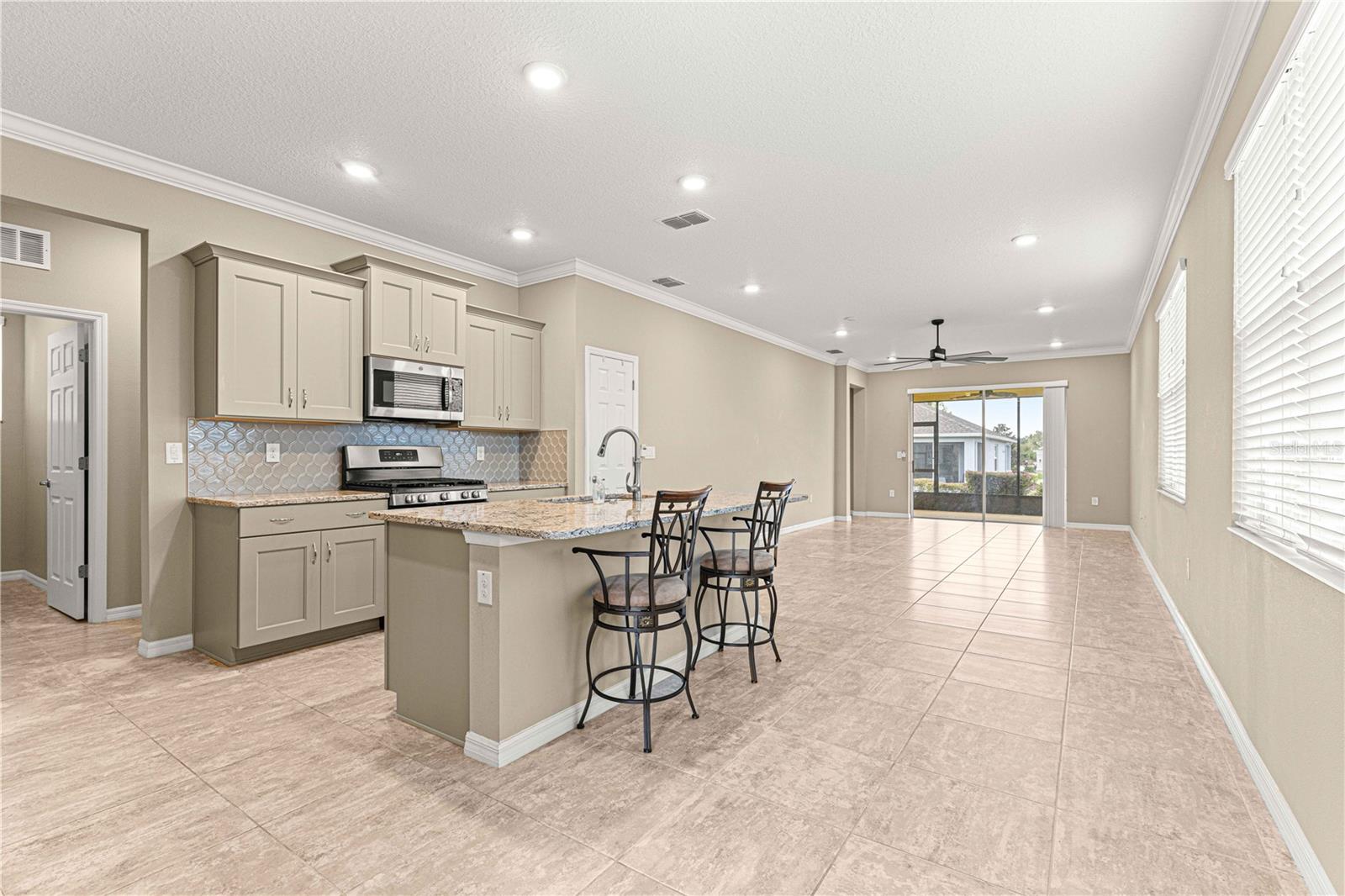 MOVIMENTO PRONTO E ATUALIZADO TOTALMENTE! Impressionante MOVE-IN READY 2019 Rimon Model Single Family SOLAR SMART Home localizada no bairro Crescent Ridge 3! Energia Consciente? Dê uma olhada nesta bela casa energeticamente eficiente com 13 painéis solares e gás natural = custos de serviços públicos mais baixos. Esta casa possui 2 quartos, 2 banheiros (planta de quartos divididos), garagem para 2 carros com planta de conceito aberto e um Flex/Arrumos no 2º andar através de degraus na garagem! Localizada em uma rua tranquila em um terreno de esquina premium, observe as melhorias ao entrar na casa pelo hall de entrada. Pisos de cerâmica de 18" atualizados. Cozinha gourmet ATUALIZADA com armários cinza premium, bancadas de quartzo, backsplash de vidro, fogão de convecção a gás e grande ilha com pia e assentos. O quarto de hóspedes, o banheiro de hóspedes/hall e a grande lavanderia interna ficam à esquerda. A lavanderia tem lavadora, secadora e pia atualizadas com penteadeira. O banheiro de hóspedes/hall tem uma banheira/chuveiro com azulejos personalizados. O grande quarto de hóspedes tem carpete. O Open Concept Great Room oferece mesa ampla e espaço de estar, com muita luz natural! O quarto principal fica na parte traseira esquerda da casa para privacidade, com DOIS closets e um grande banheiro privativo com chuveiro embutido com azulejos personalizados e armários atualizados. A varanda com tela tem vista para o grande terreno de canto, sem ninguém diretamente atrás da casa! casa pronta para morar! A taxa HOA mensal inclui Internet básica DCM, reparo de telhado, pintura externa a cada sete anos, manutenção externa e seguro, paisagismo, coleta de lixo e reciclagem na calçada, entrega de correspondência na calçada, portões monitorados 24 horas por dia, 7 dias por semana e todas as comodidades que OTOW tem a oferecer; tênis, shuffleboard, ferraduras, campo voador com controle remoto e carros de corrida, mais de 175 clubes, marcenaria (taxa extra), biblioteca e muito, muito mais!