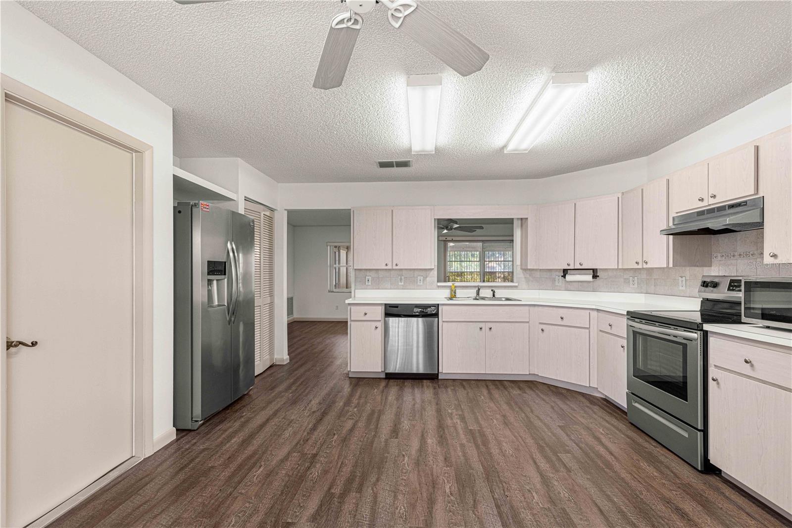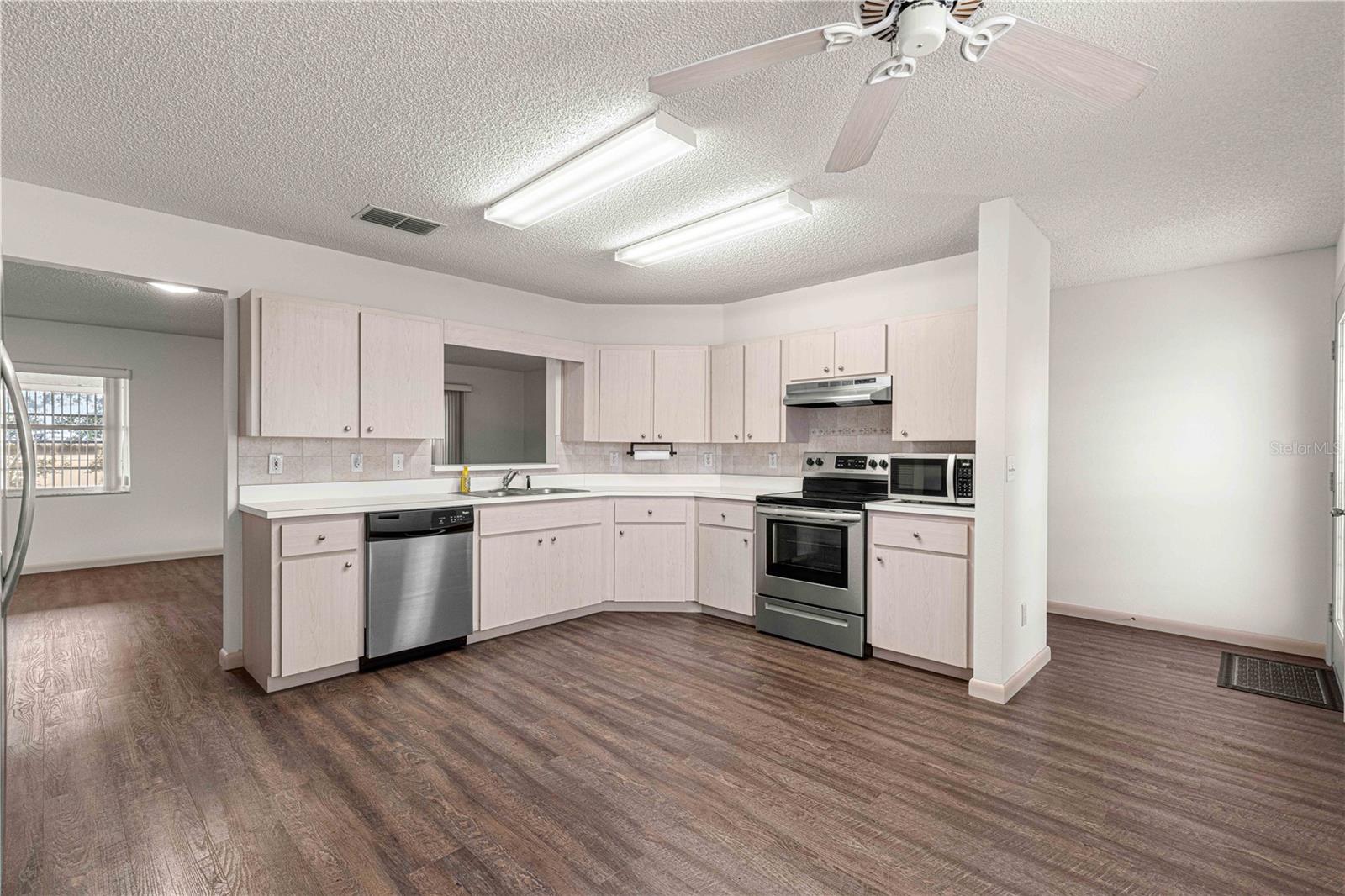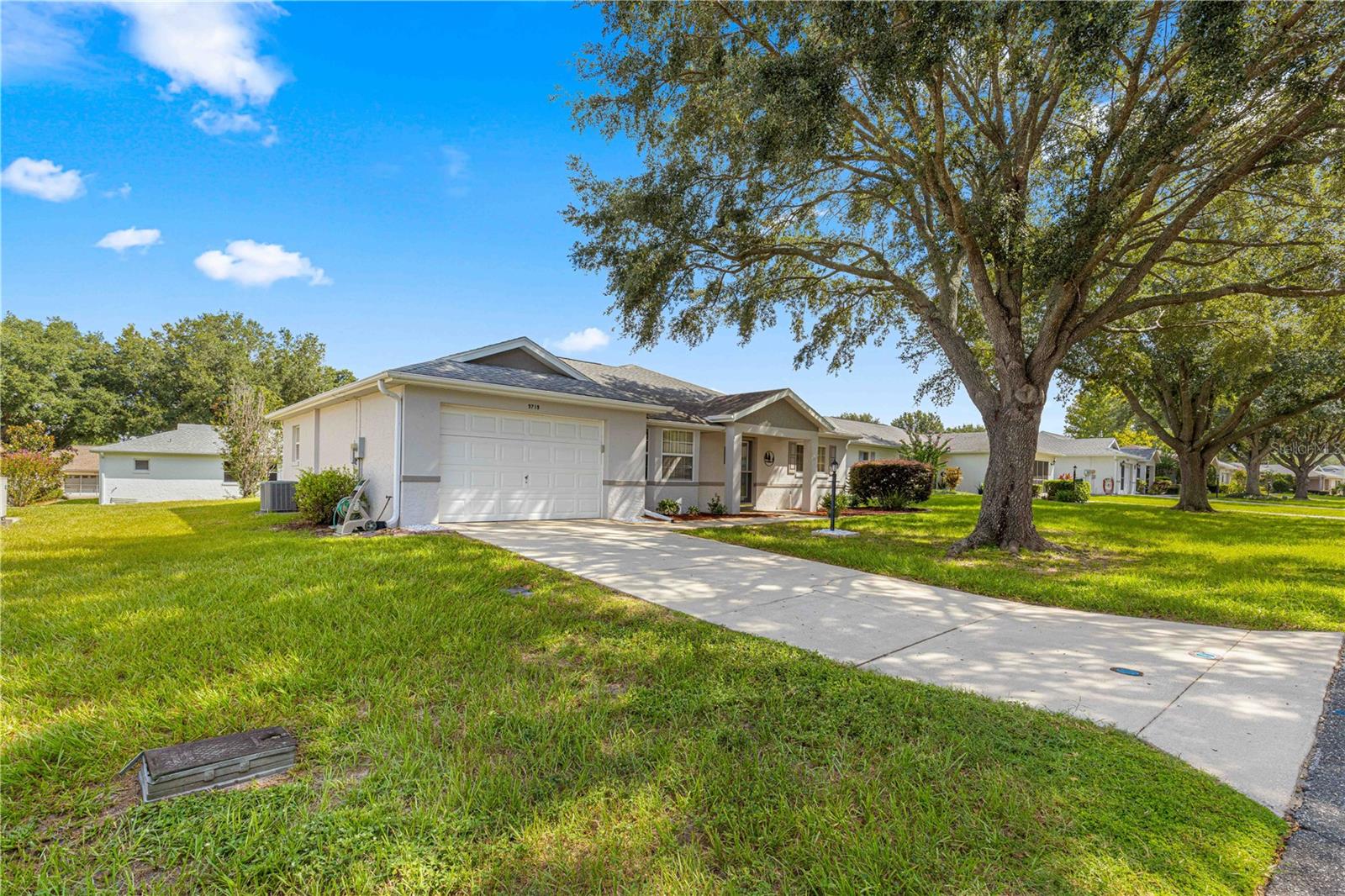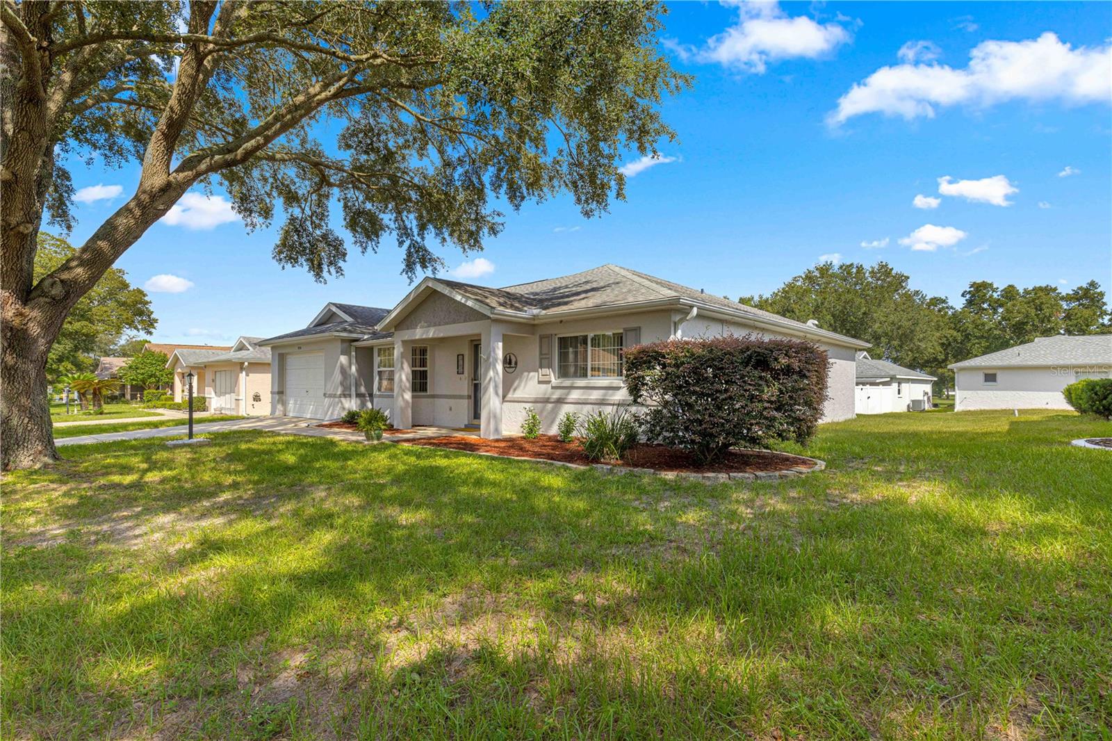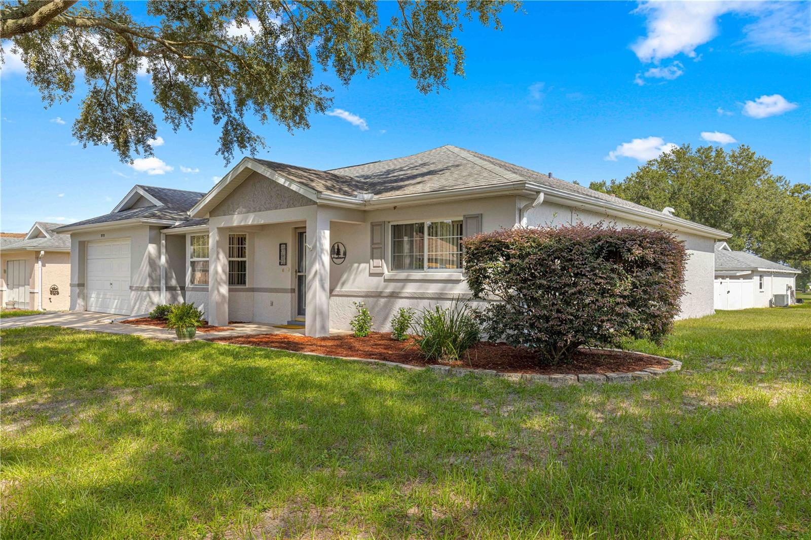 Espaçosa casa unifamiliar modelo Granada localizada no bairro Crescent Ridge de On Top of the World, uma comunidade de golfe fechada Premier 55+ em SW Ocala FL. Esta casa PRONTA PARA MOVER foi recentemente pintada e limpa profissionalmente! TELHADO 2017 e HVAC 2014 (mantido regularmente). Esta casa tem 2 quartos, 2 banheiros e garagem para 1,5 carros (31 pés de profundidade com espaço para carro e carrinho de golfe). Entre pela bela porta de entrada de vidro chanfrado. Observe o lindo e luxuoso piso de pranchas de vinil - SEM soleiras! A cozinha fica na frente desta casa com um bônus para um amplo espaço de mesa. Aparelhos e armários mais novos têm extensões! Ambos os quartos ficam do lado direito da casa e possuem carpete que foi limpo recentemente. O quarto de hóspedes é claro e claro, com um grande armário e ventilador de teto. O banheiro de hóspedes/hall divide os quartos. Este banheiro tem uma banheira com revestimento de azulejos e um vaso sanitário com altura confortável. O quarto principal fica na parte de trás para maior privacidade, com um grande closet e banheiro privativo com box amplo. Esta banheira tem uma penteadeira grande que comporta facilmente 2 pias. A Grande Sala oferece ótimo espaço de convivência, com controle deslizante para a varanda, levando ao pátio perfeito para grelhar ou morar ao ar livre! Esta casa a gás natural tem fogão elétrico (torneira de gás atrás se você quiser trocar) e secadora elétrica. A taxa HOA mensal inclui cabo Spectrum básico, reparo de telhado, pintura externa a cada sete anos, manutenção externa e seguro, paisagismo, lixo e reciclagem, portões vigiados 24 horas por dia, 7 dias por semana e todas as comodidades que OTOW tem a oferecer; três piscinas (2 externas e 1 interna e outra em construção), duas academias de ginástica de última geração, 23 quadras de pickleball, bilhar, campo de tiro com arco, buraco de milho, bocha, tênis, shuffleboard, ferraduras, campo de vôo com controle remoto e corrida carros, mais de 175 clubes, marcenaria (taxa extra), biblioteca e muito, muito mais! Uma comunidade de carrinhos de golfe com acesso a três shopping centers. *VISOR DO REFRIGERADOR NÃO GARANTIDO