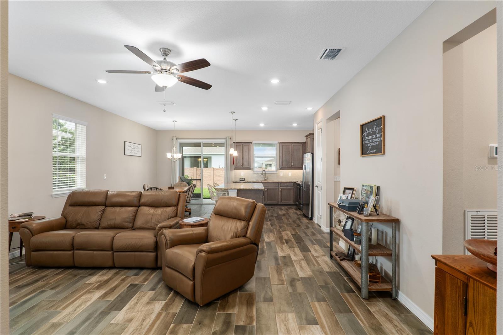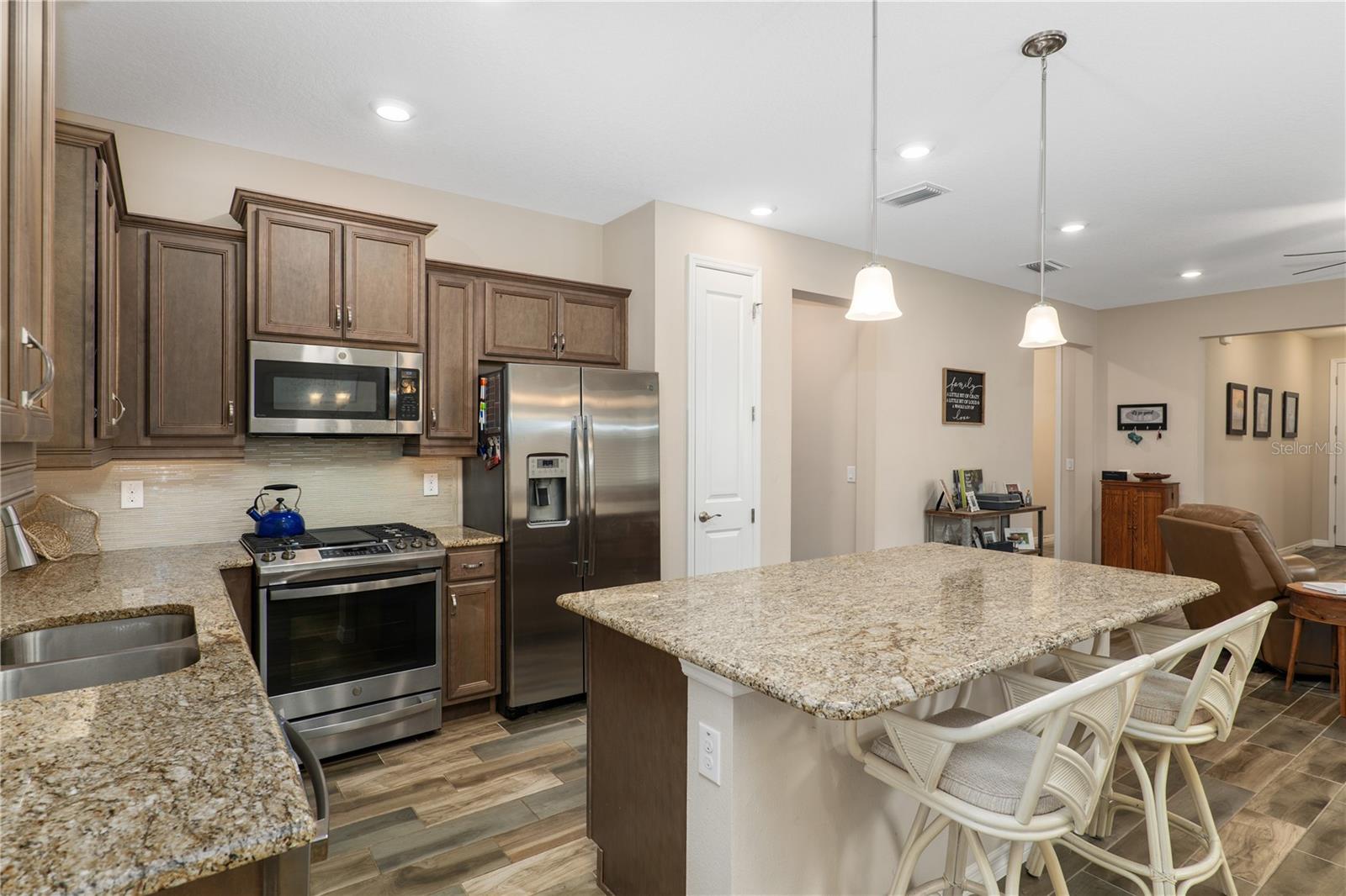Linda casa 2/2/2 PLUS FLEX ROOM no condomínio fechado de campos de golfe RESORT STYLE de Ocala Preserve! Construído pela Shea Homes em 2020 ~ modelo Roma. Frente de pedra empilhada e calçada/passarela de pavimentação. PLANTA ABERTA com pé-direito alto e placas cerâmicas nas áreas de convivência. A bonita cozinha tem ilha para café da manhã, armários atualizados, balcões de granito, eletrodomésticos SS e despensa. Quartos divididos. O quarto principal tem banheiro privativo com box amplo, armário de roupa de cama, closet e vaso sanitário. A sala Flex é um ótimo escritório ou escritório. A lavanderia interna possui armários extras e pia. Sistema de FILTRAGEM DE ÁGUA para toda a casa. PAINÉIS SOLARES mantêm as contas de luz baixas (totalmente pagas)! A varanda com tela percorre toda a extensão da casa. MANUTENÇÃO DE VIDA GRATUITA ~ HOA inclui todos os cuidados com o gramado/paisagem, irrigação, internet de alta velocidade (fibra óptica) e portão de entrada vigiado. As comodidades incríveis incluem quilômetros de trilhas para caminhada/ciclismo, piscinas estilo resort, spa, quadras de tênis, quadras de pickleball, parques para cães, restaurante Salted Brick, academia, clube, doca de pesca, caiaques, canoas, pedalinhos e campo de golfe! Localização conveniente para compras, restaurantes e minutos para WEC e I-75!
